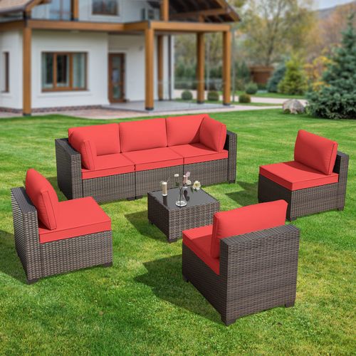 GOJOOASIS Wine Red 6PCS Set Wicker Outdoor Sectional Sofa