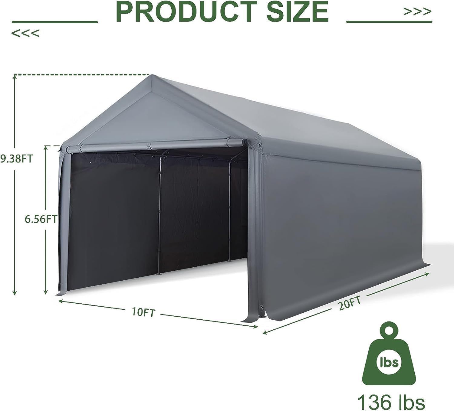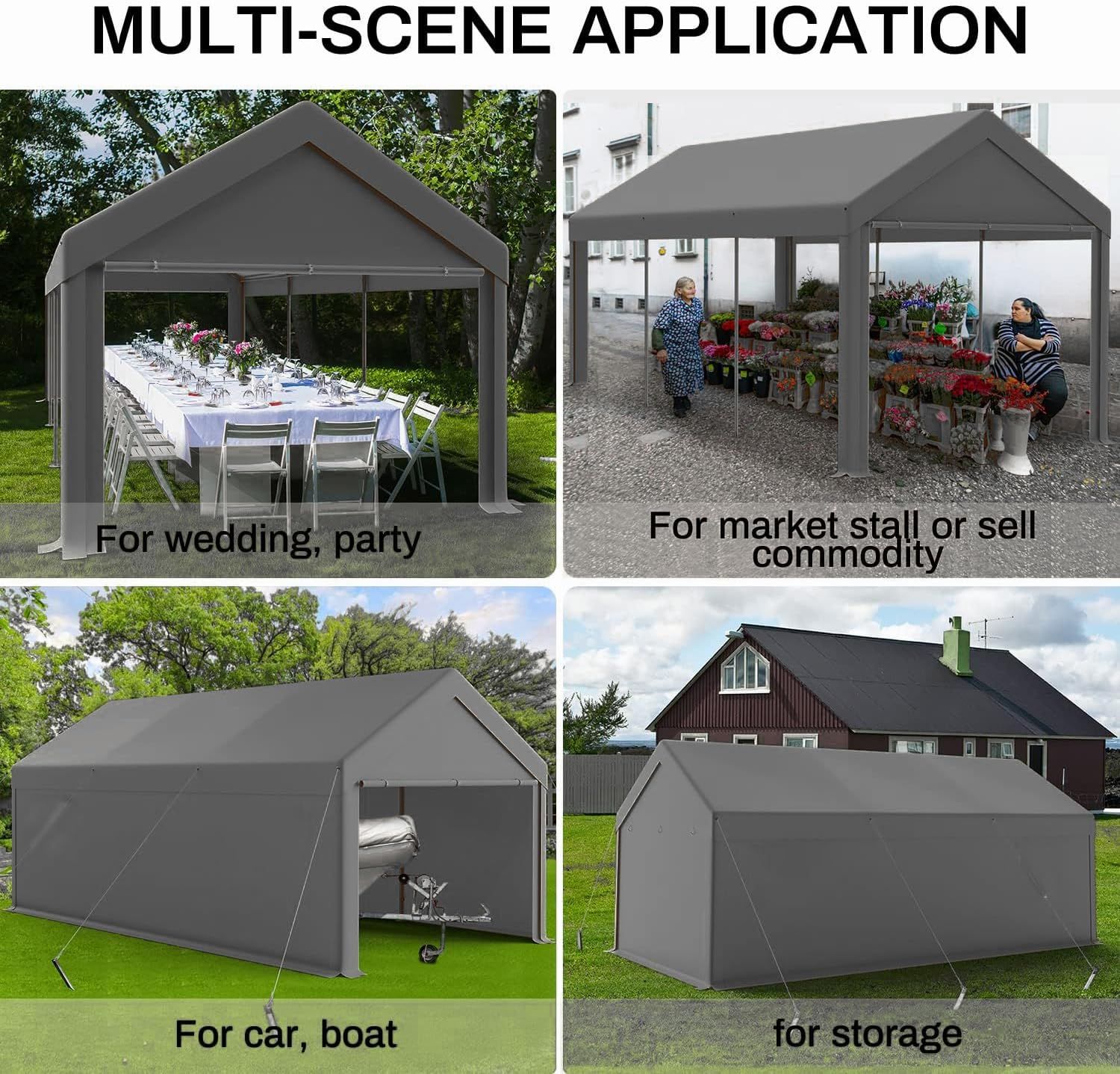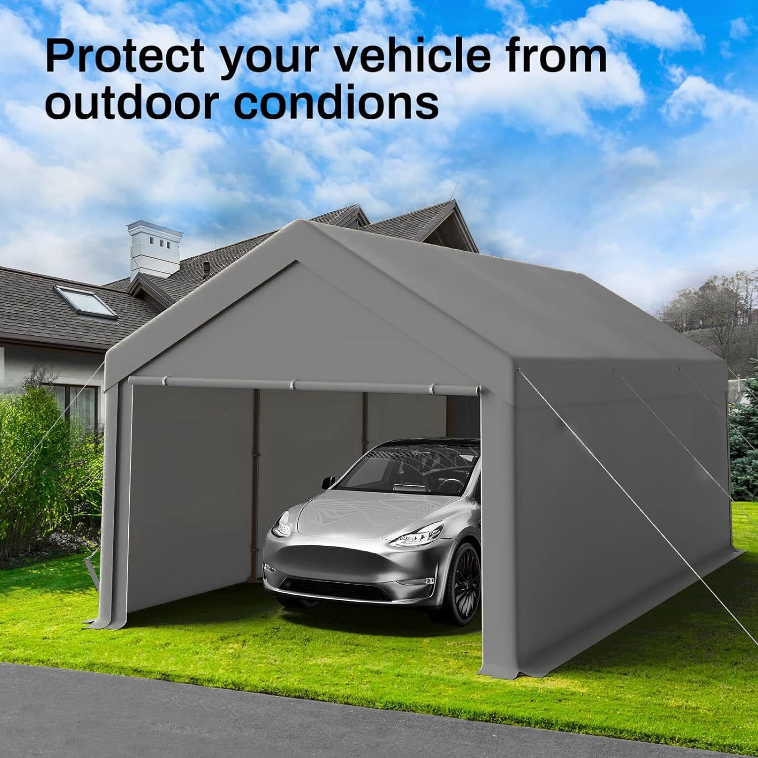 1020 Carports, Portable Garage Carport with Heavy Duty Frame Waterproof Carport Canopy with Removable Sidewalls for Outdoor, Boat, Truck, SUV (Grey)