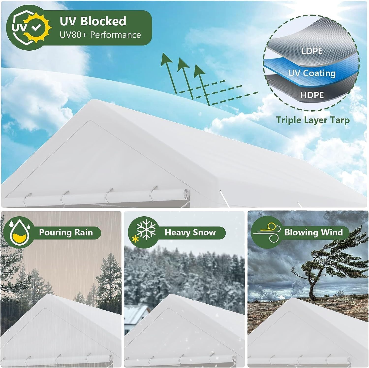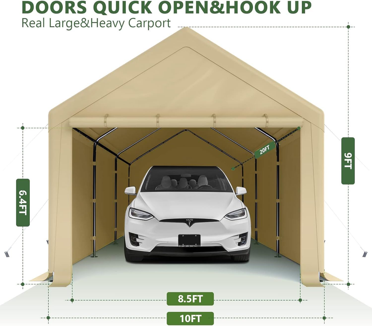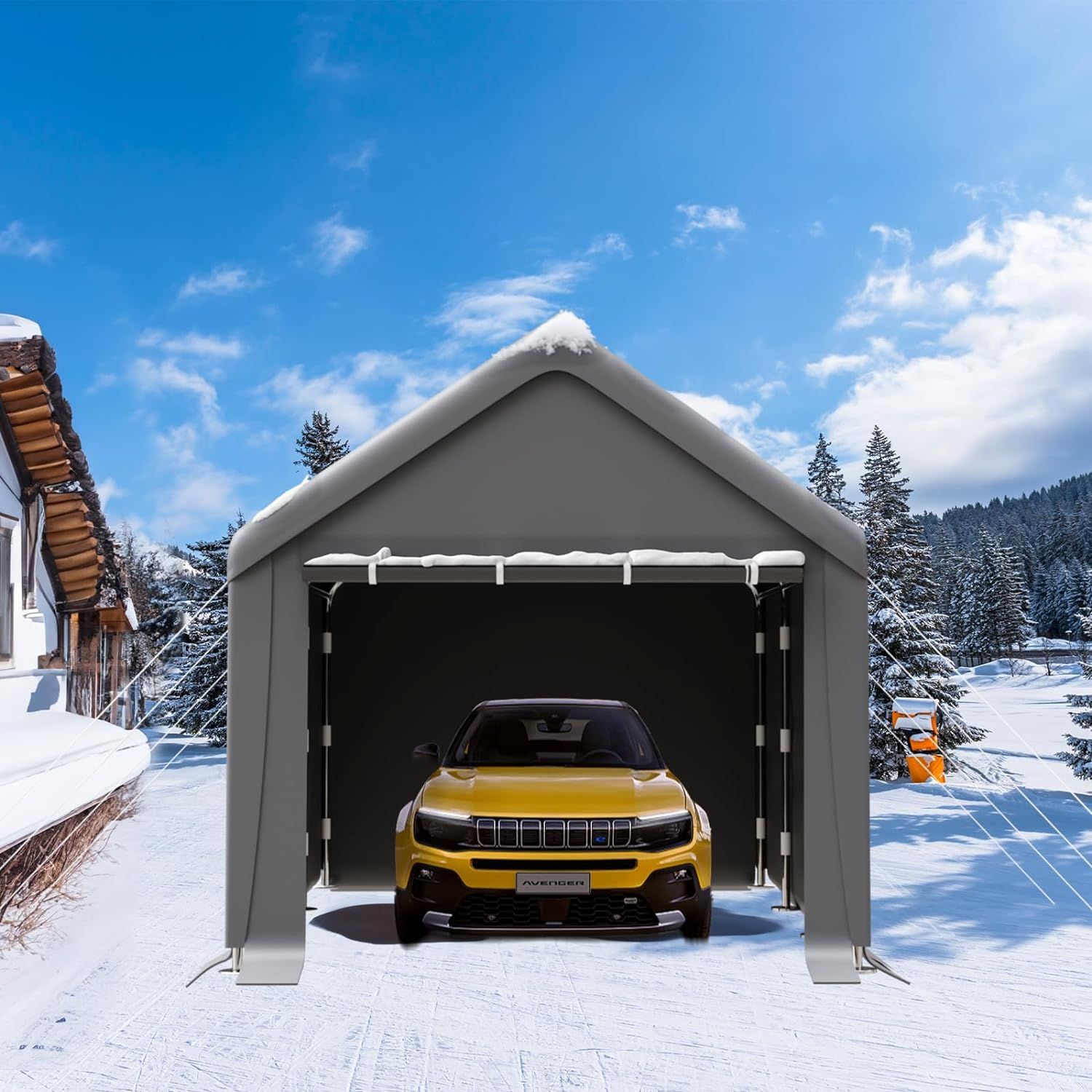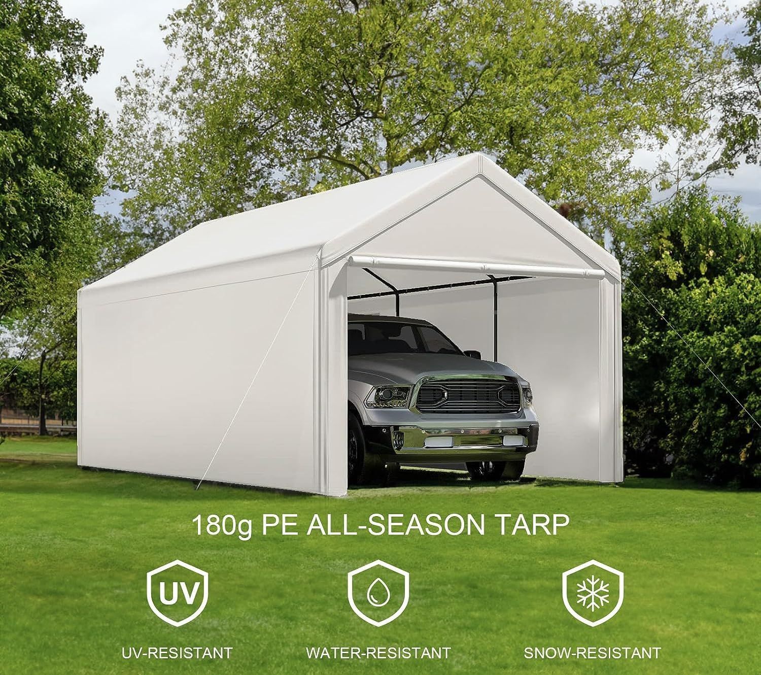 1020 Carports, Portable Garage Carport with Heavy Duty Frame Waterproof Carport Canopy with Removable Sidewalls for Outdoor, Boat, Truck, SUV (Grey)