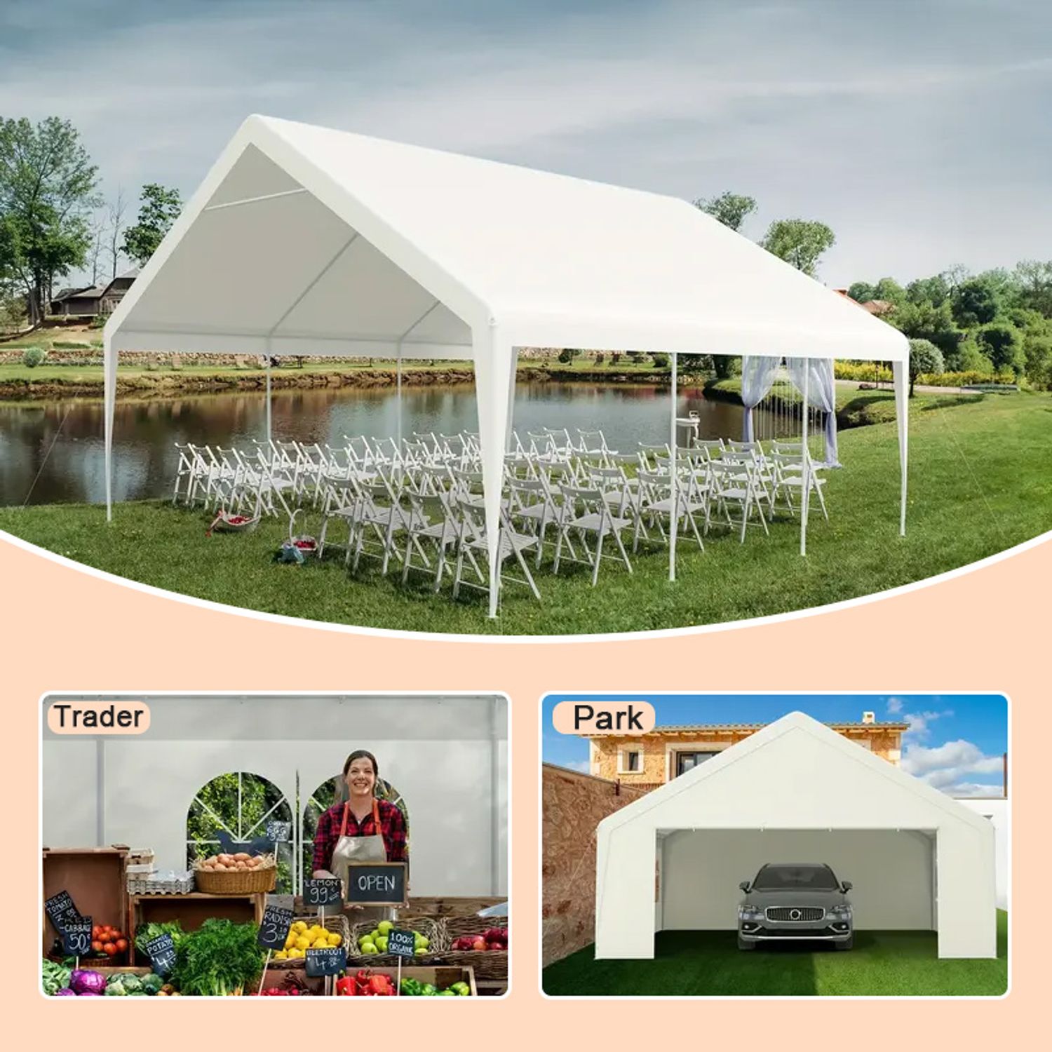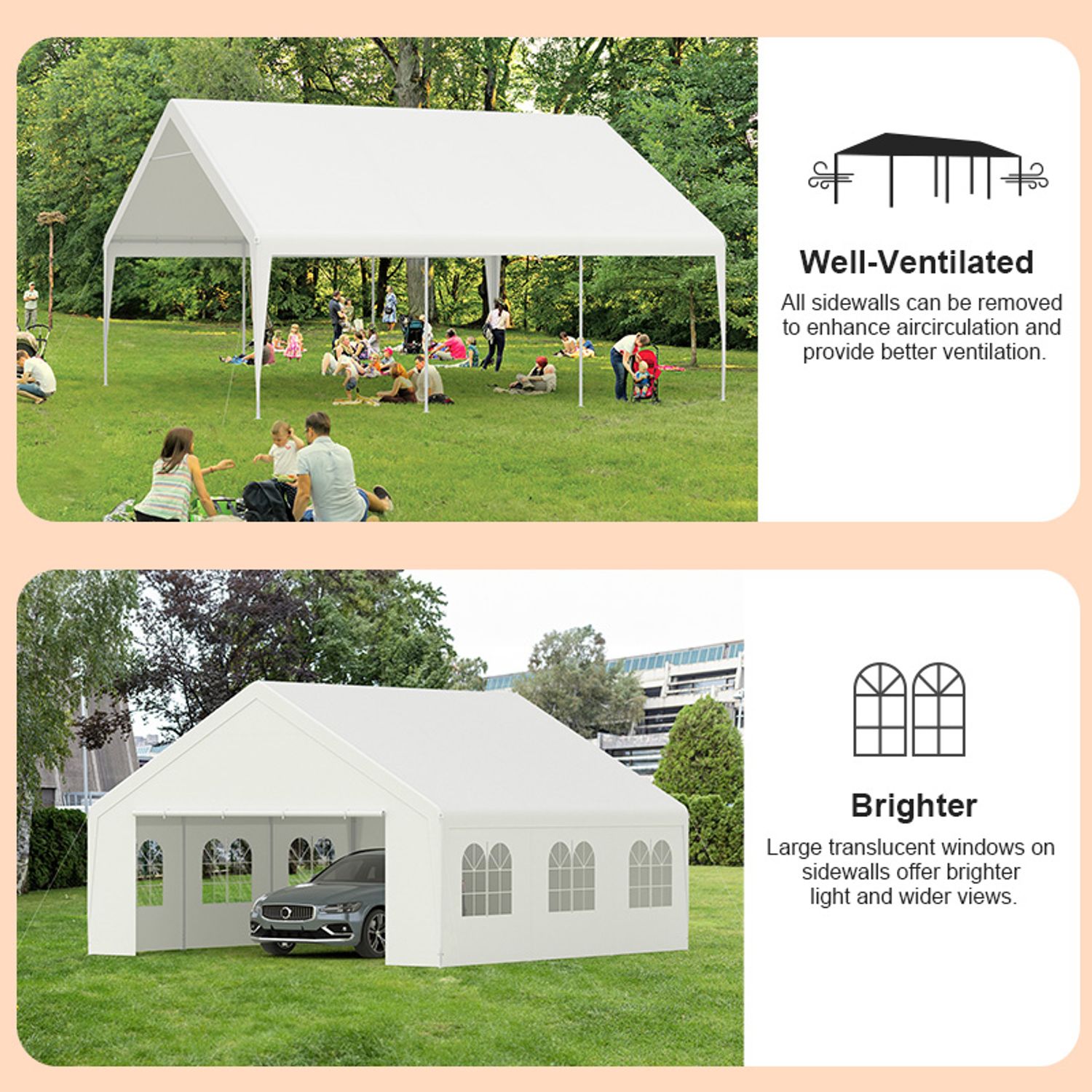 Gojooasis 20x20FT Outdoor Heavy Duty Wedding Party Event Canopy Tent with Removable Sidewalls,White