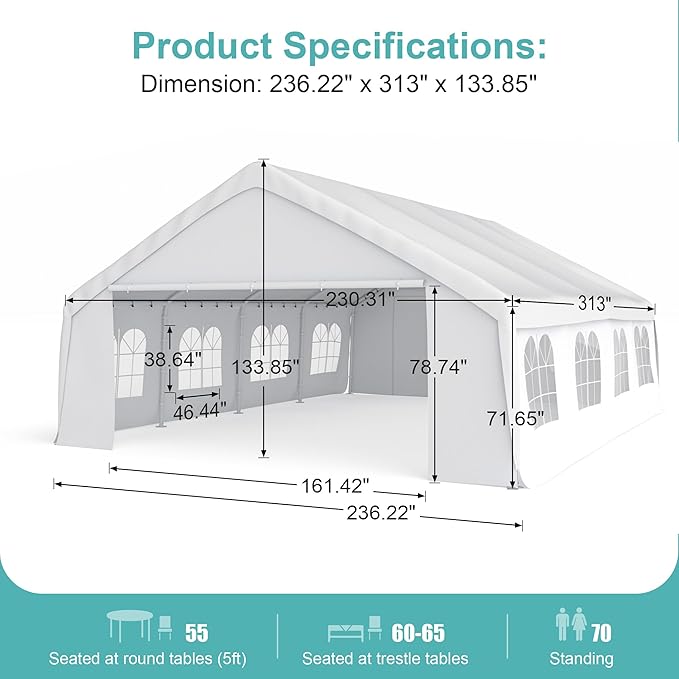 Gojooasis 20x26FT Outdoor Heavy Duty Wedding Party Event Canopy Tent with Removable Sidewalls,White