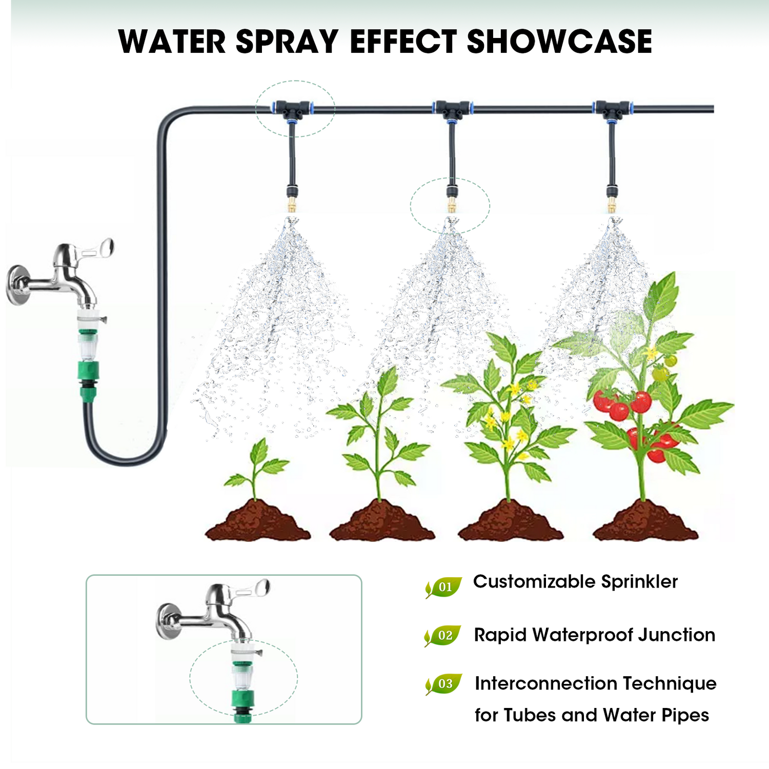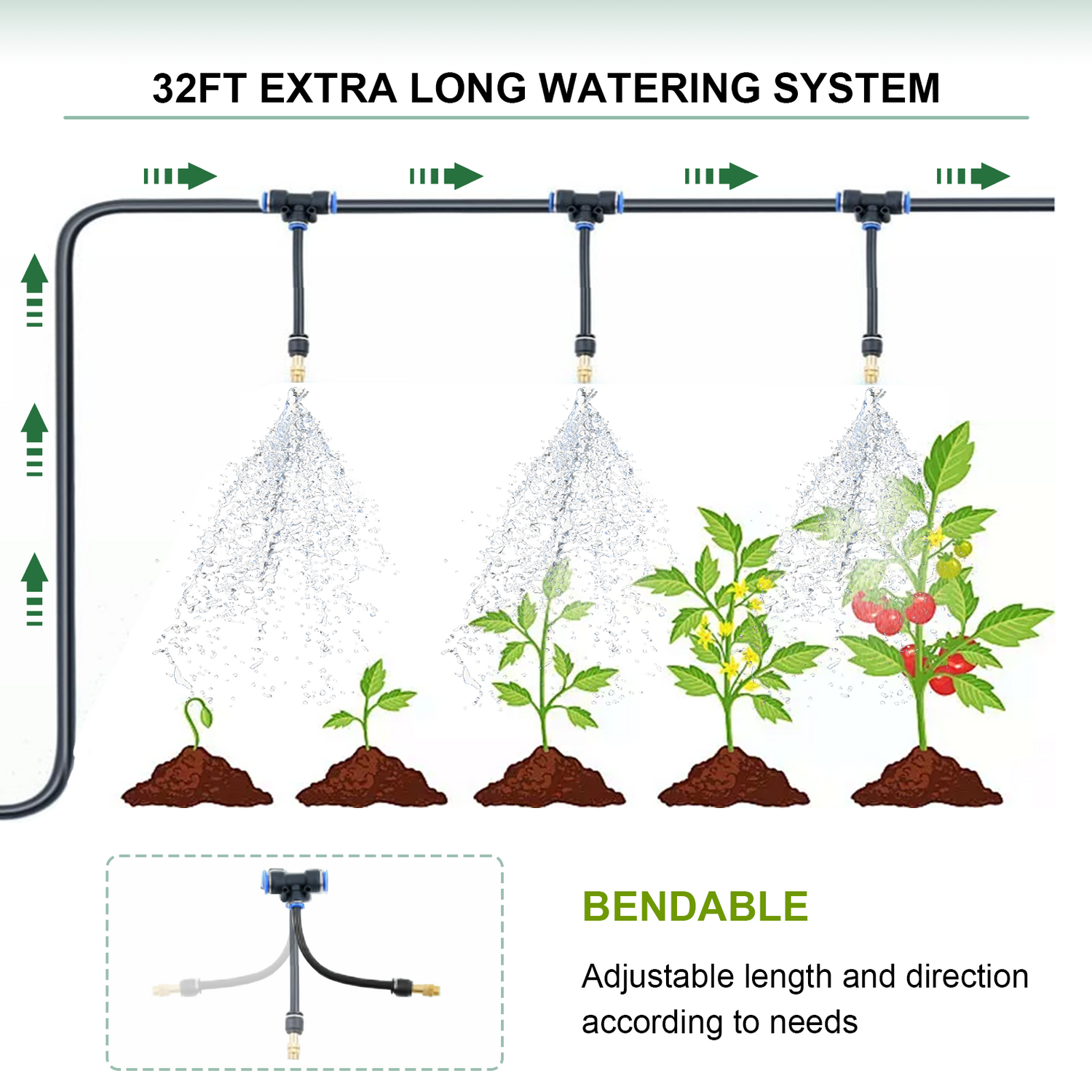 32FT Watering System for Greenhouse, Automatic Irrigation Kit Hose Adjustable and Bendable Nozzel for Outdoor Plants Flowers and Vegetables
