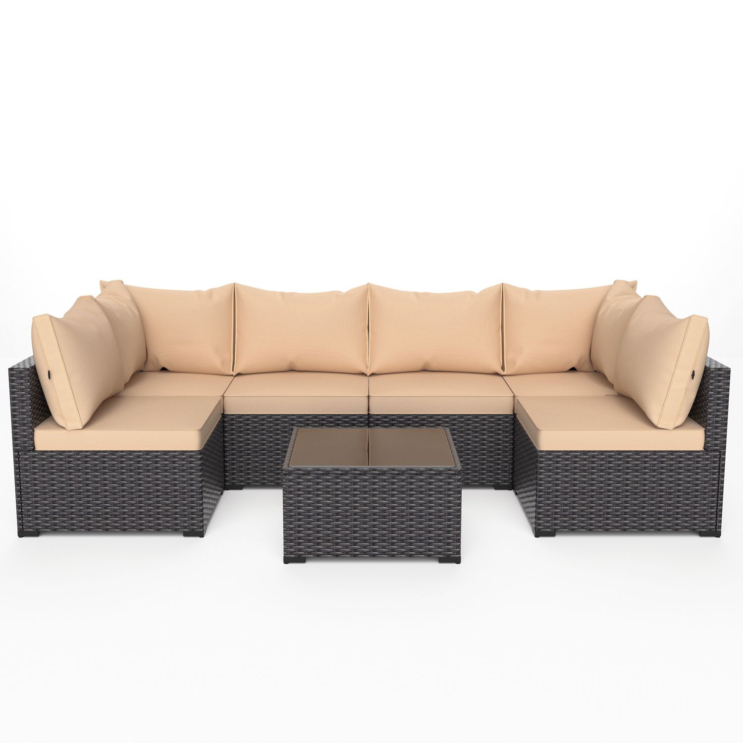 7 Piece Patio Furniture Sets All Weather PE Wicker Rattan Outdoor Sectional Sofa