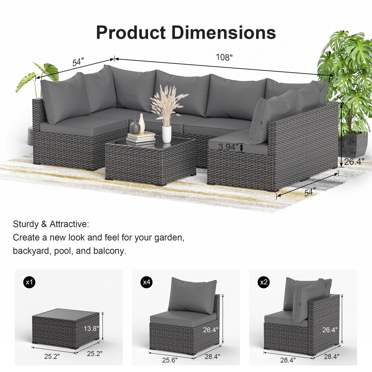 Gojooasis 7PCS Rattan Patio Furniture Set PE Wicker Sectional Sofa w/Cushion Outdoor Grey