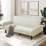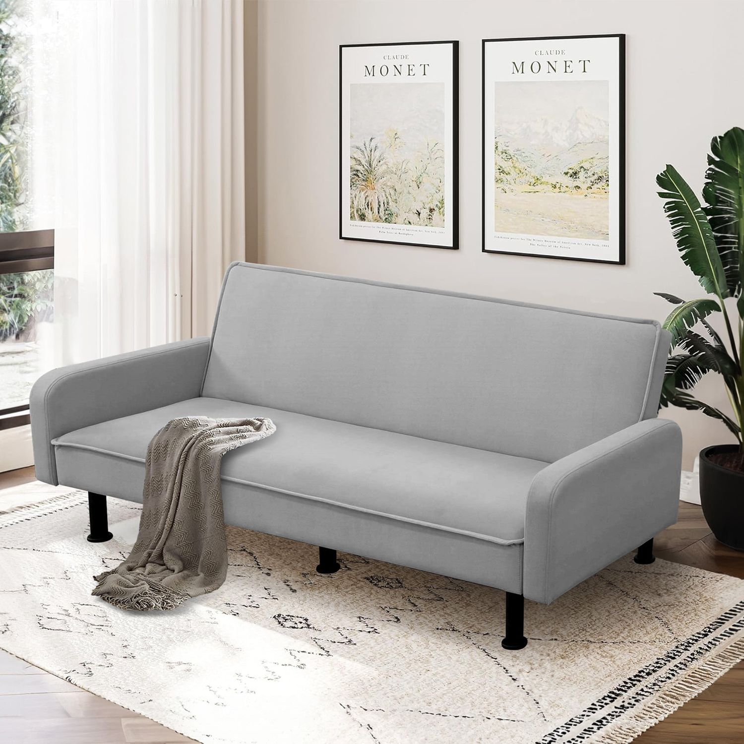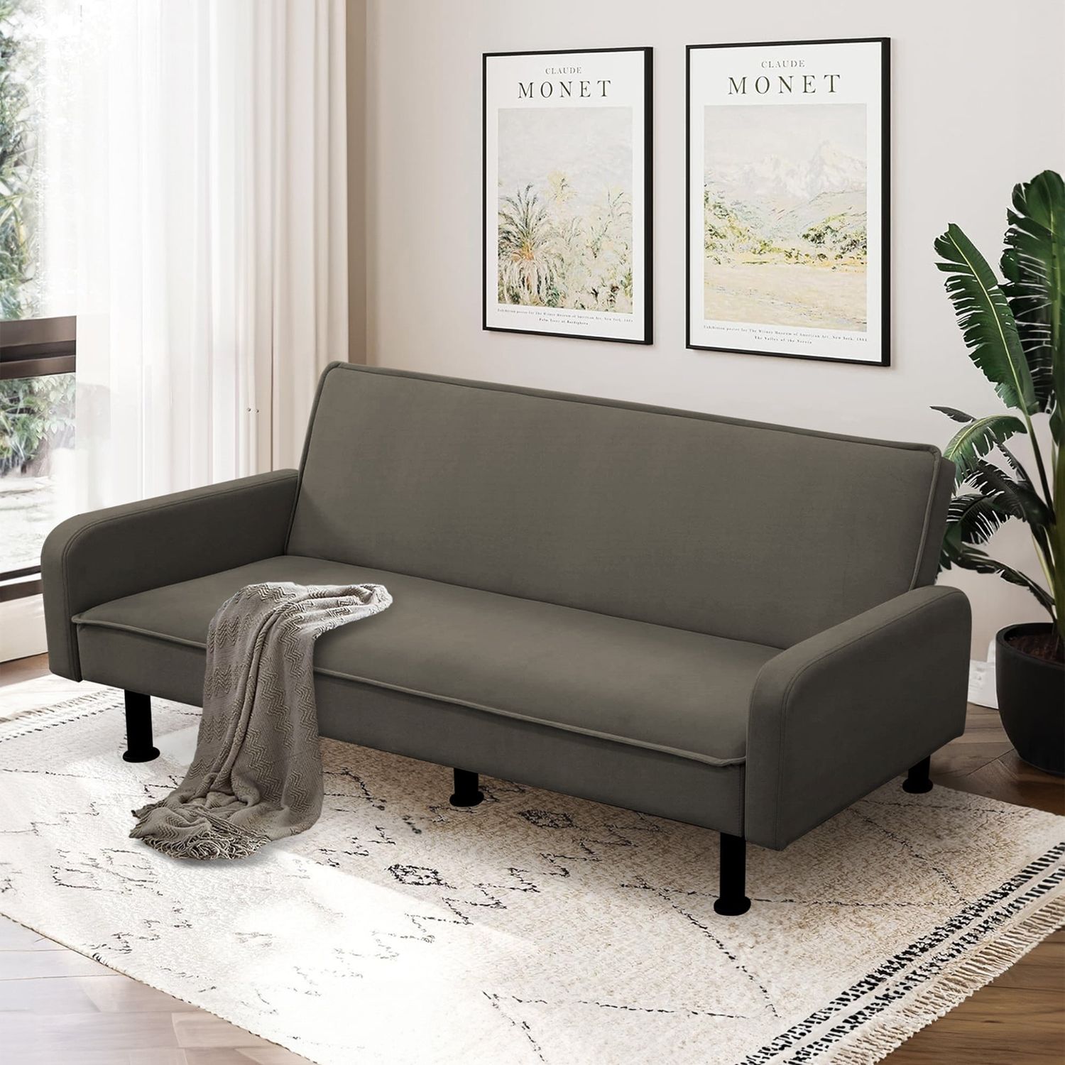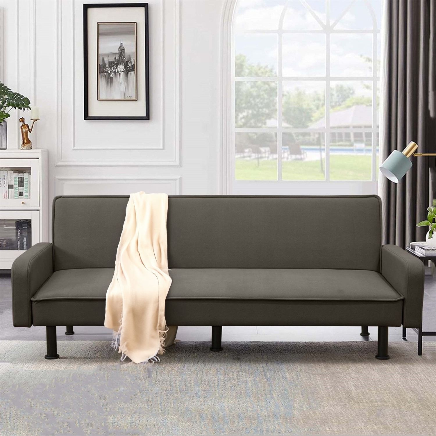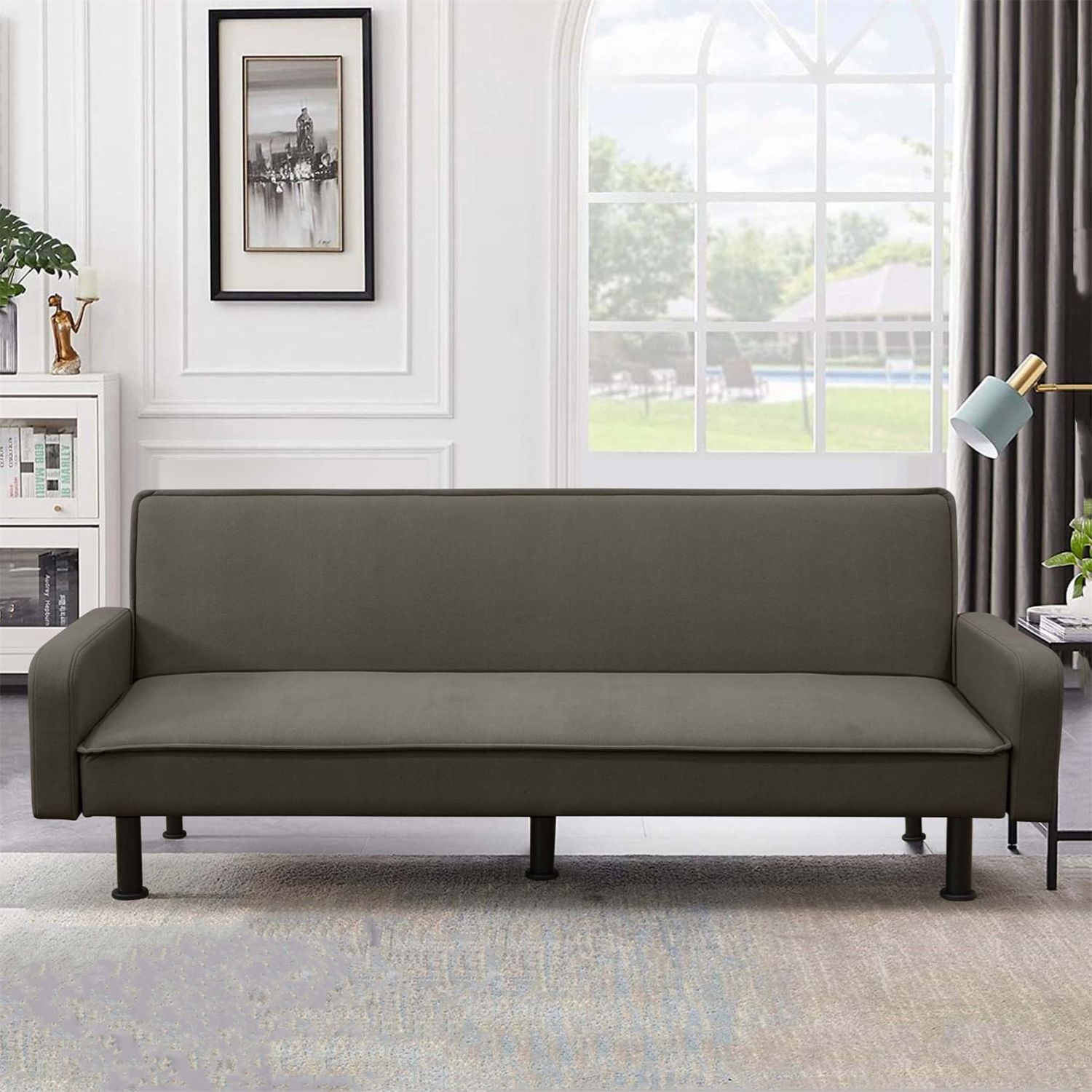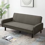 Aukfa 78" Futon Sofa Bed, Upholstered Loveseat for Home Office, Flannel, Brown