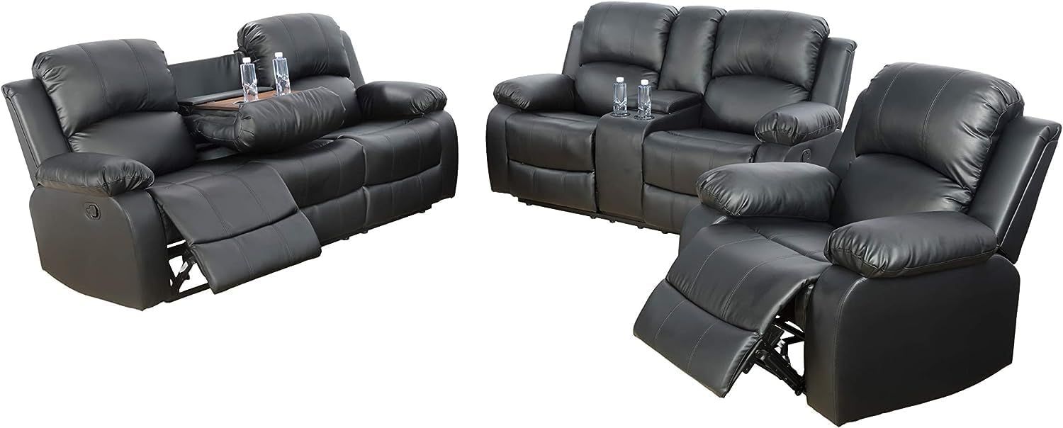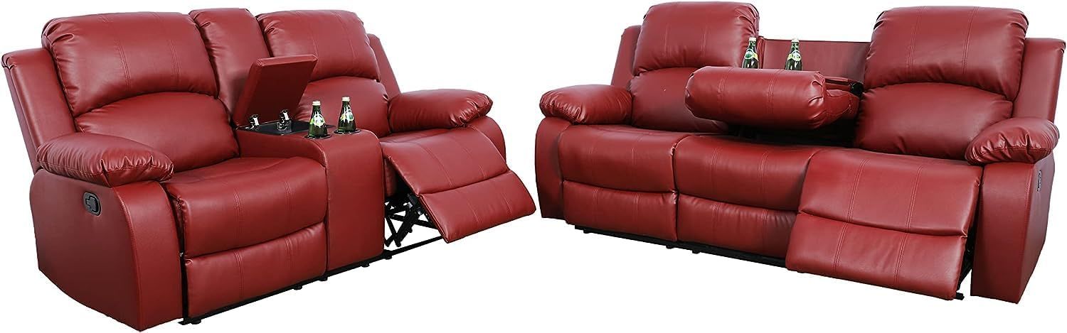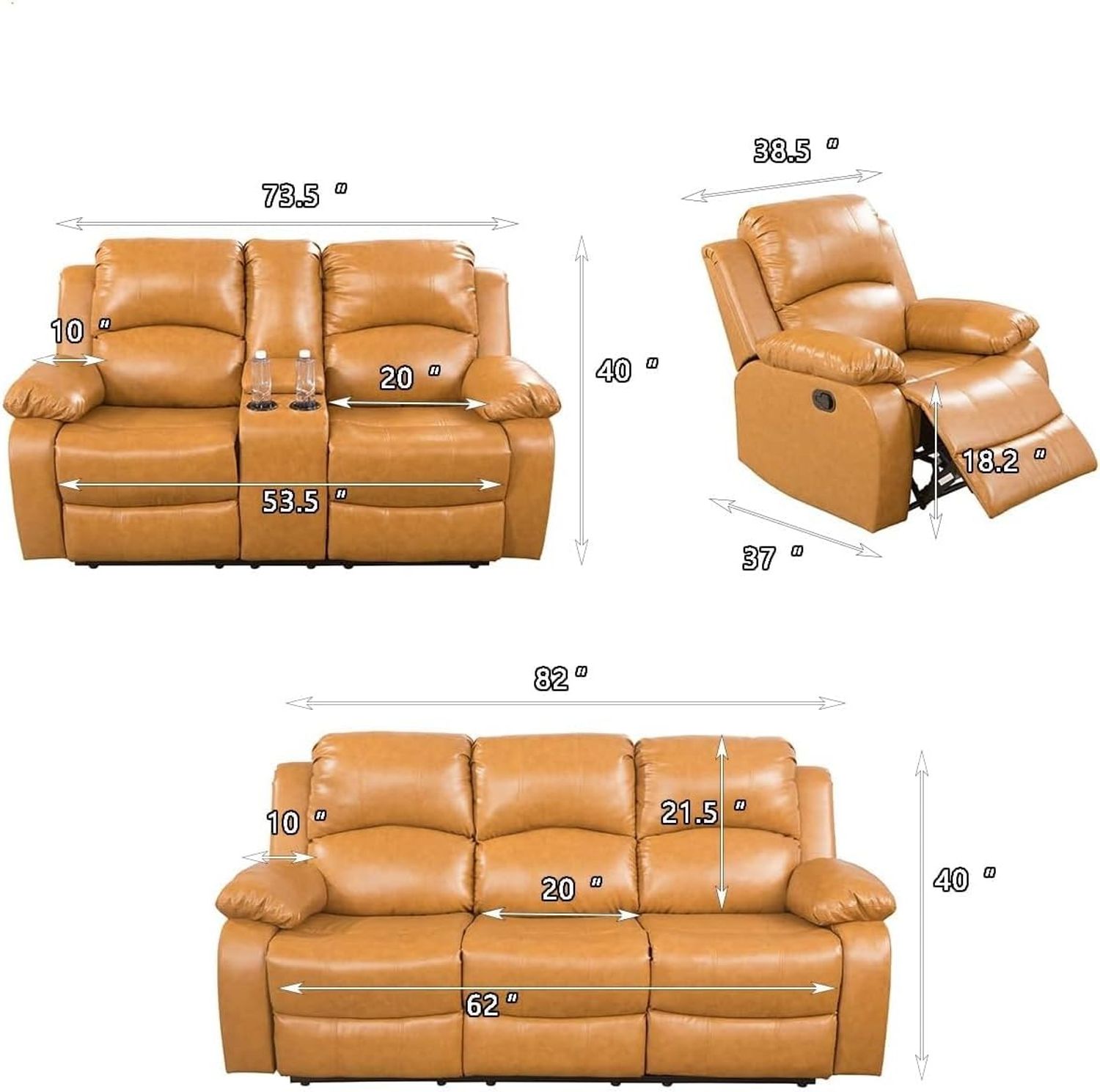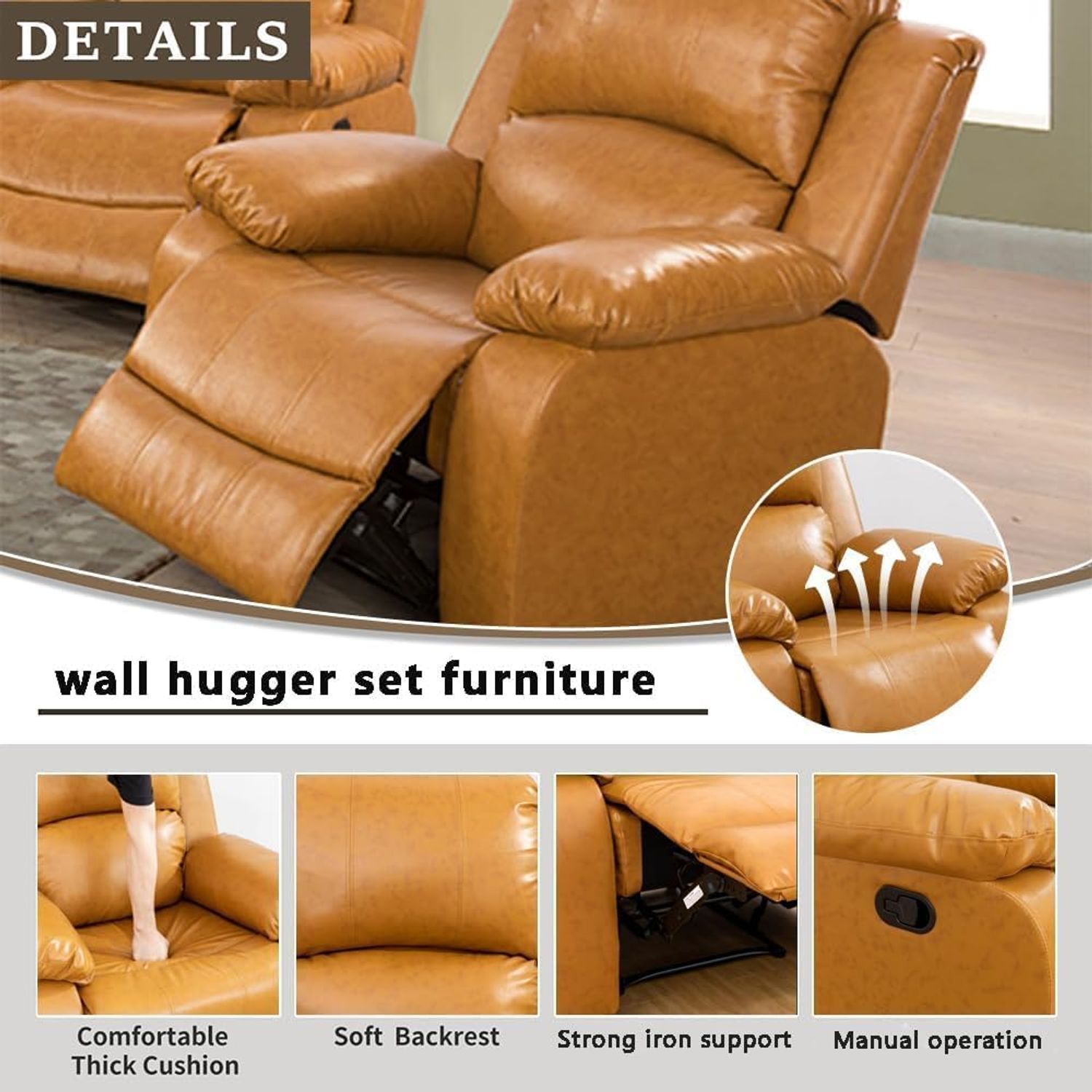 Bonded Leather Living Room Furniture Set Reclining Sofa Set Loveseat Furniture Sets in Living Room Sofa Recliners (Chair, Ginger)