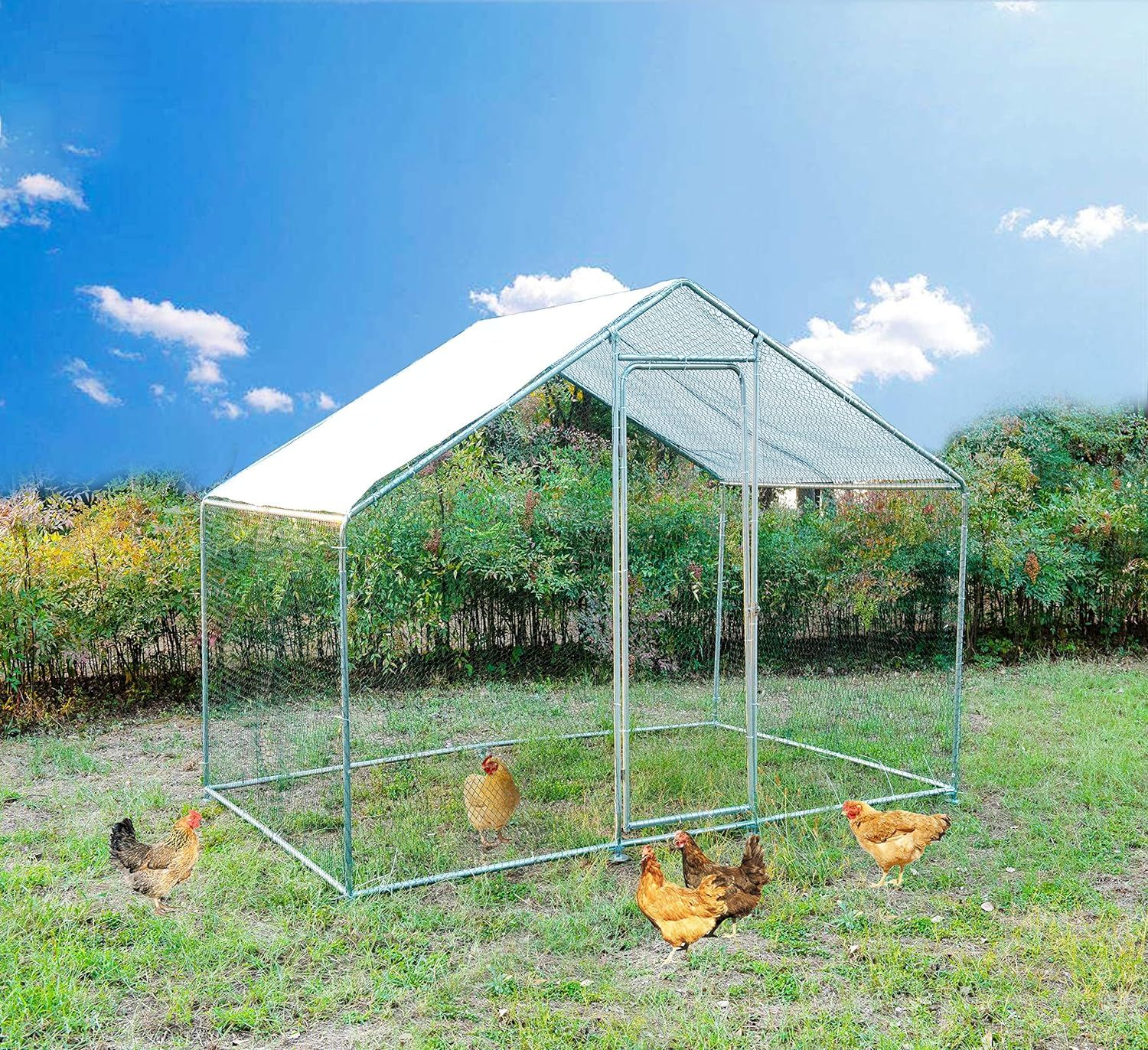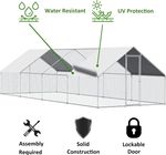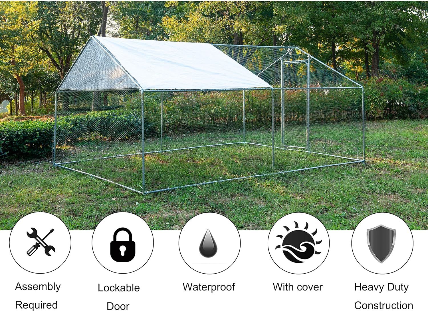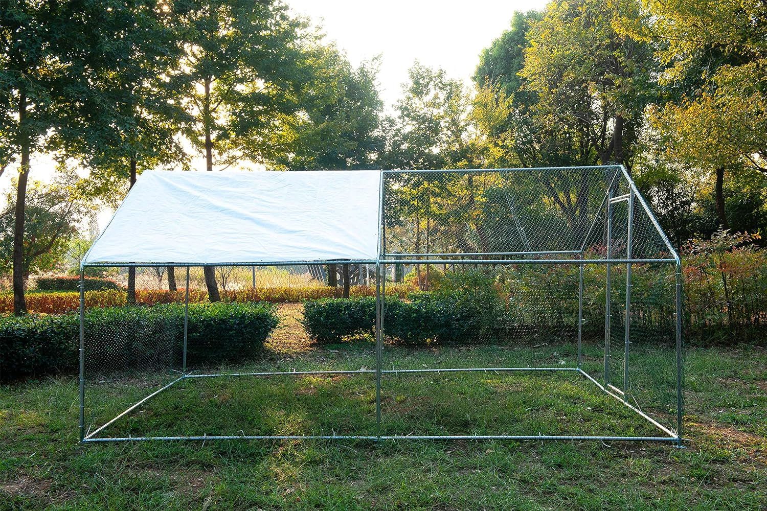 ECOLINEAR Outdoor Large Metal Chicken Coop and Run Walk-in Hen House for 40 Chickens Hutch wCover Garden Backyard Run Cage (3x6x2)