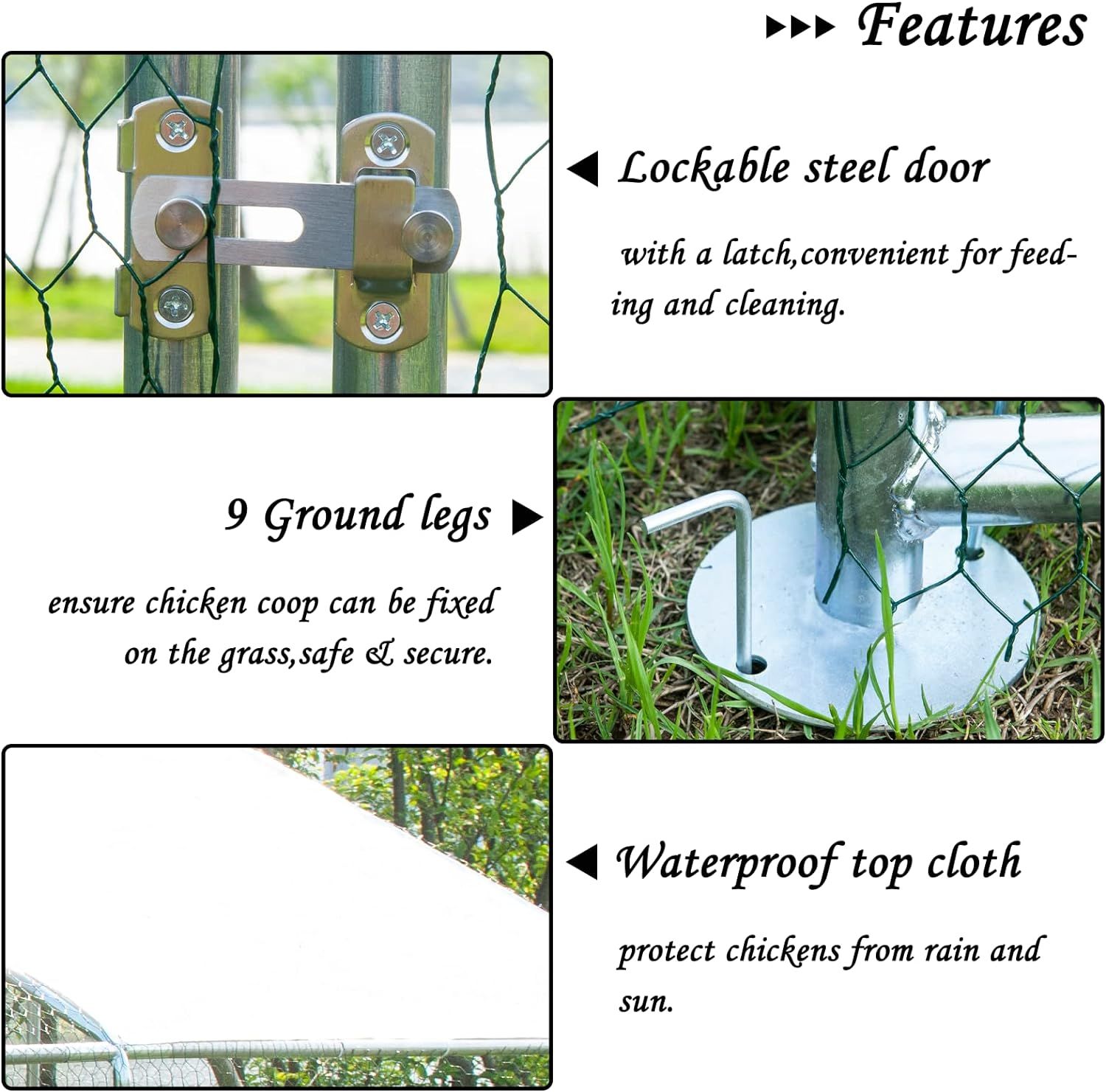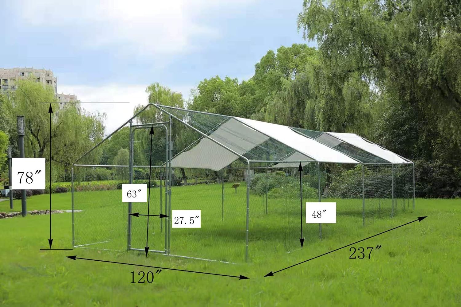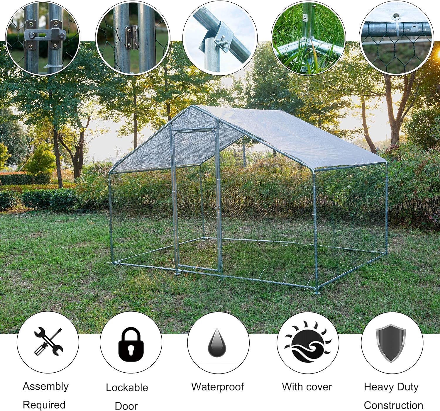ECOLINEAR Outdoor Large Metal Chicken Coop and Run Walk-in Hen House for 40 Chickens Hutch wCover Garden Backyard Run Cage (3x6x2)