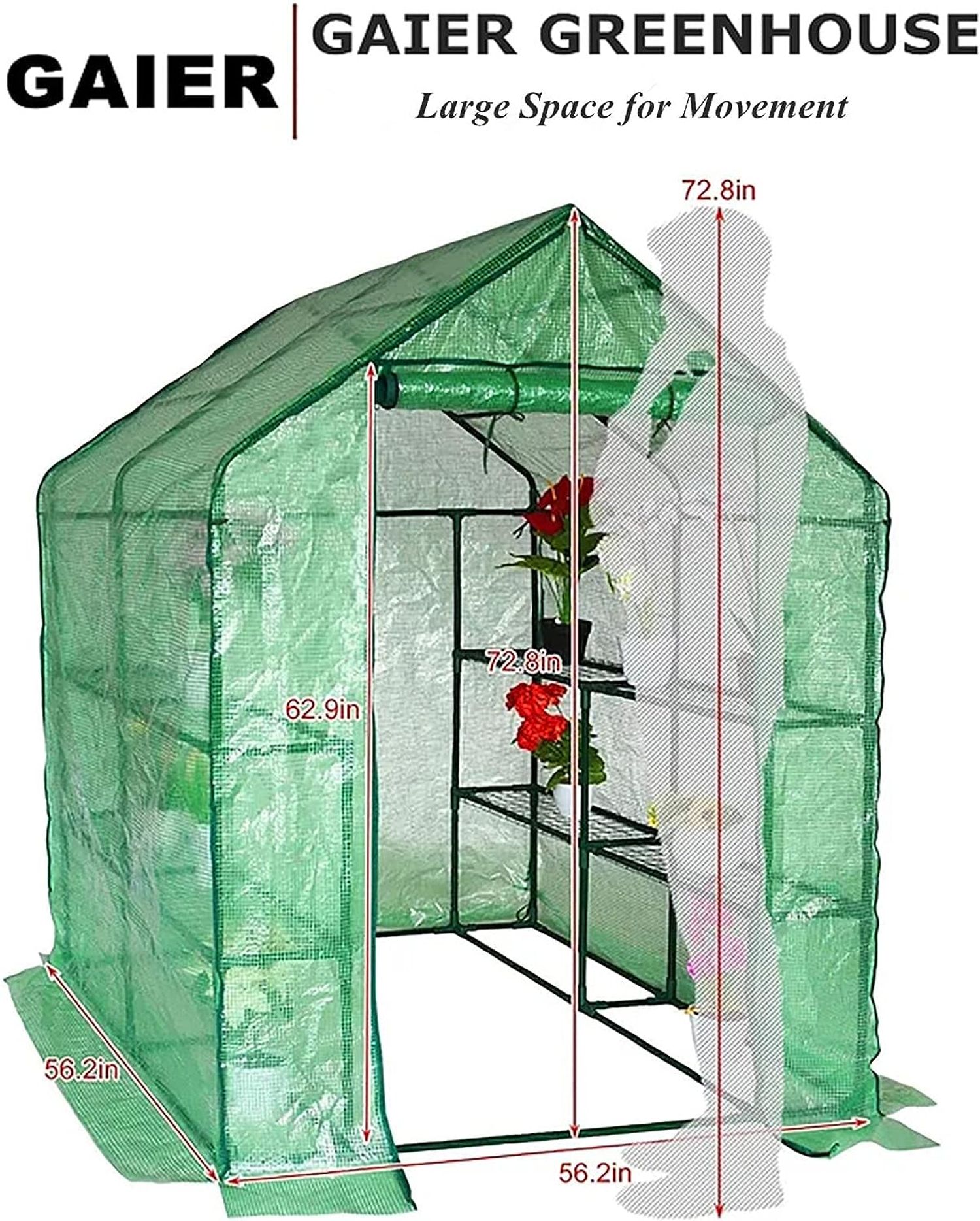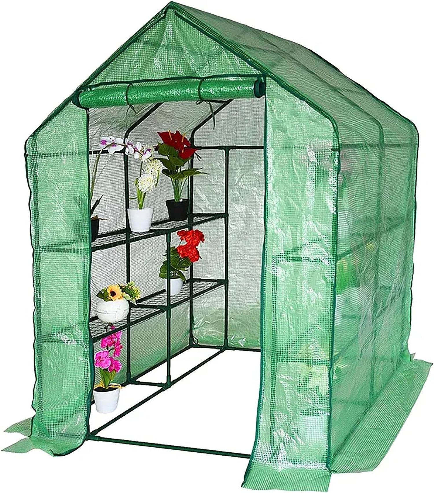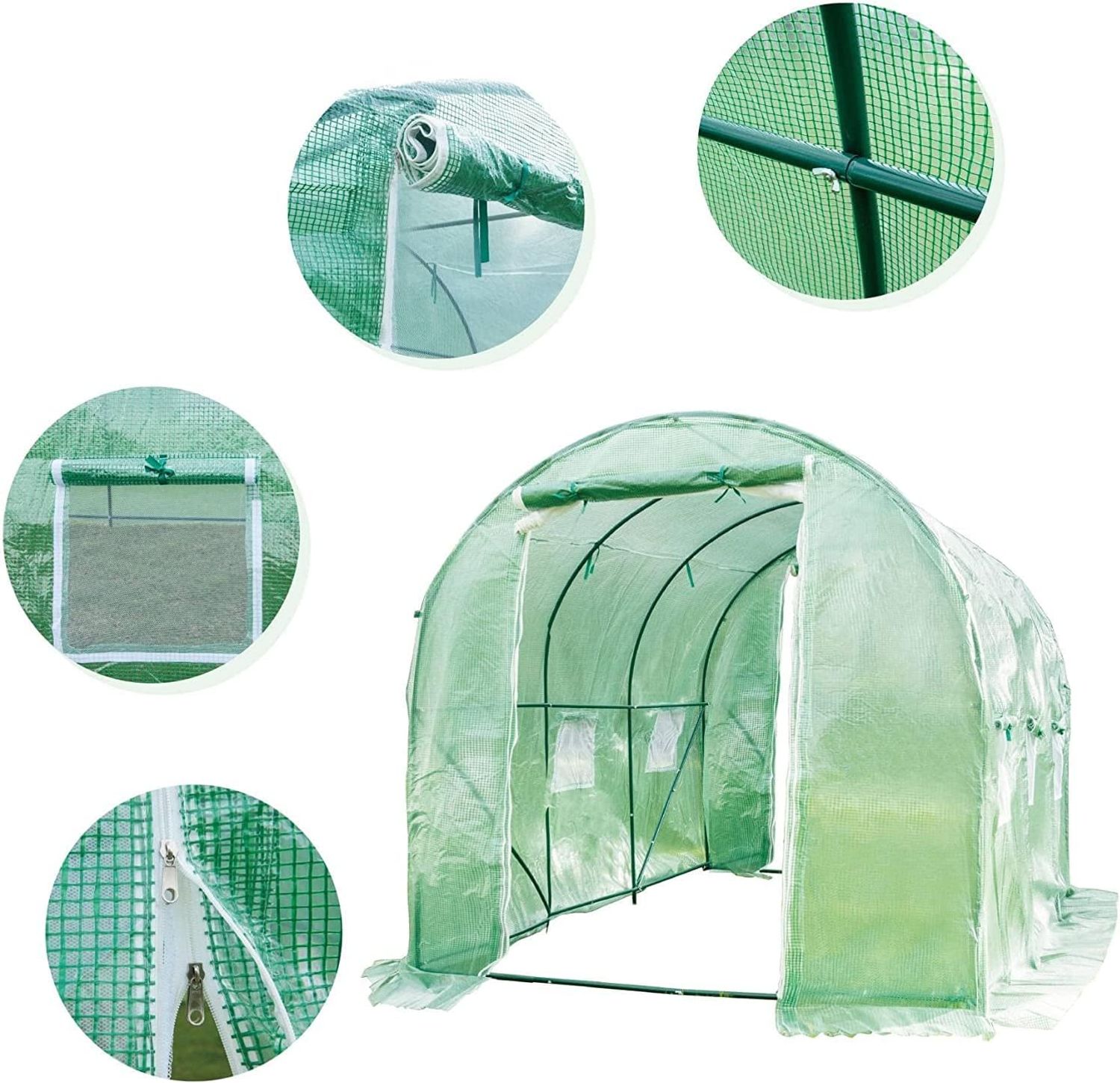 Gaier Large Walk-in Greenhouse 10x7x7 FT Reinforced Frame with Durable PE Cover Gardening Green House with Dual Zippered Mesh Doors, JM-LZ-F451