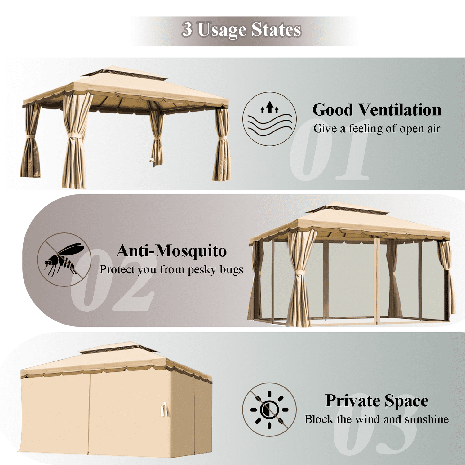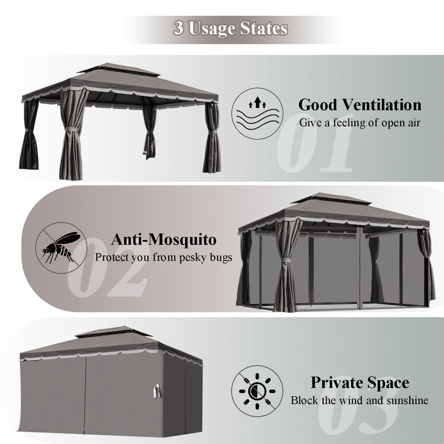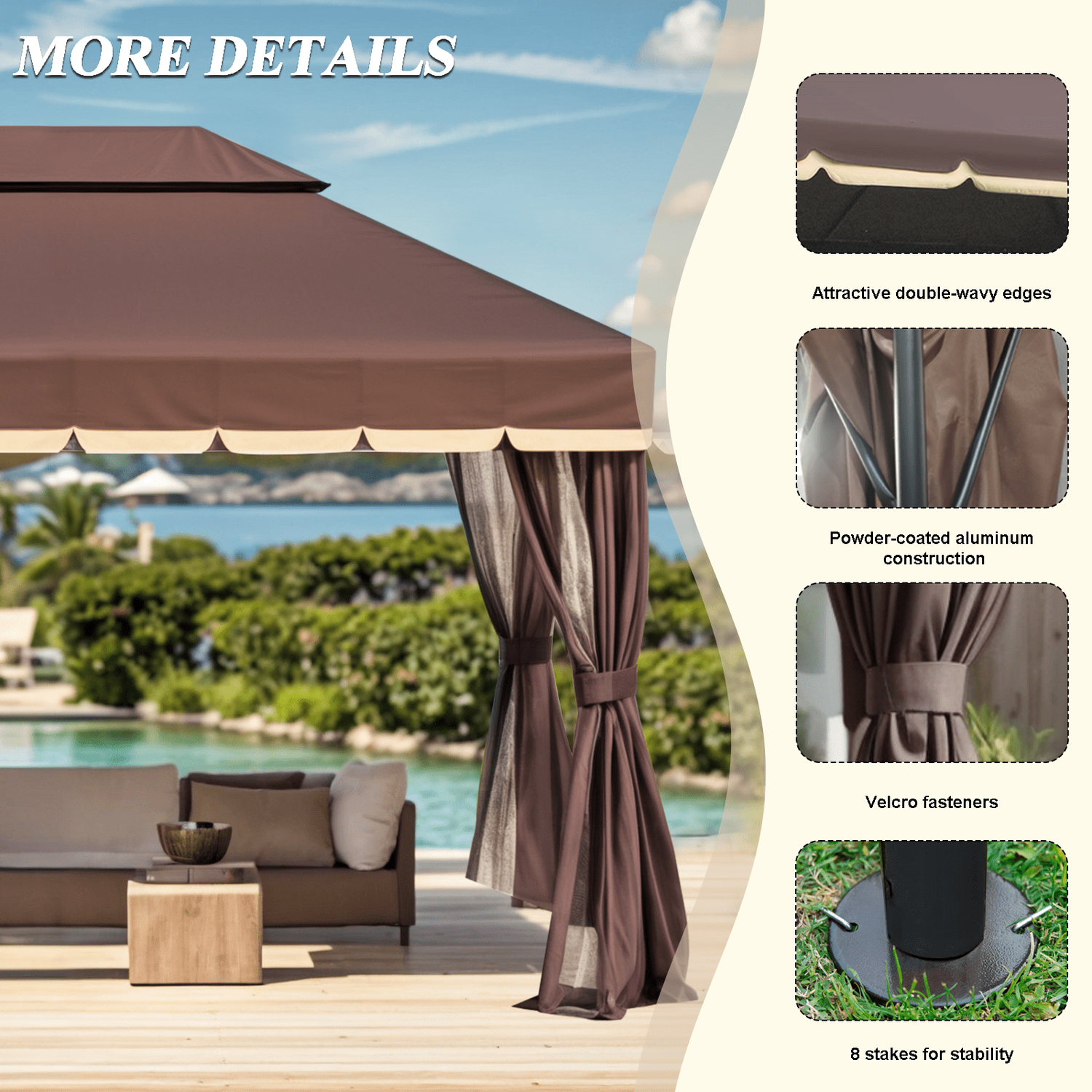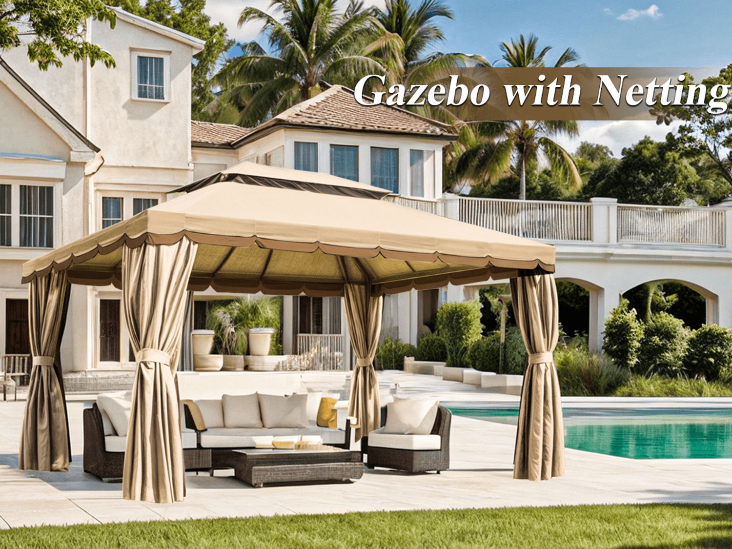 Gaildon 1310 FT Deluxe No Screws Gaebo,Double Roof Outdoor Shelter Tent with Netting and 7 Patio Outdoor Furniture Wicker Sectional Sofa Couch Lawn S