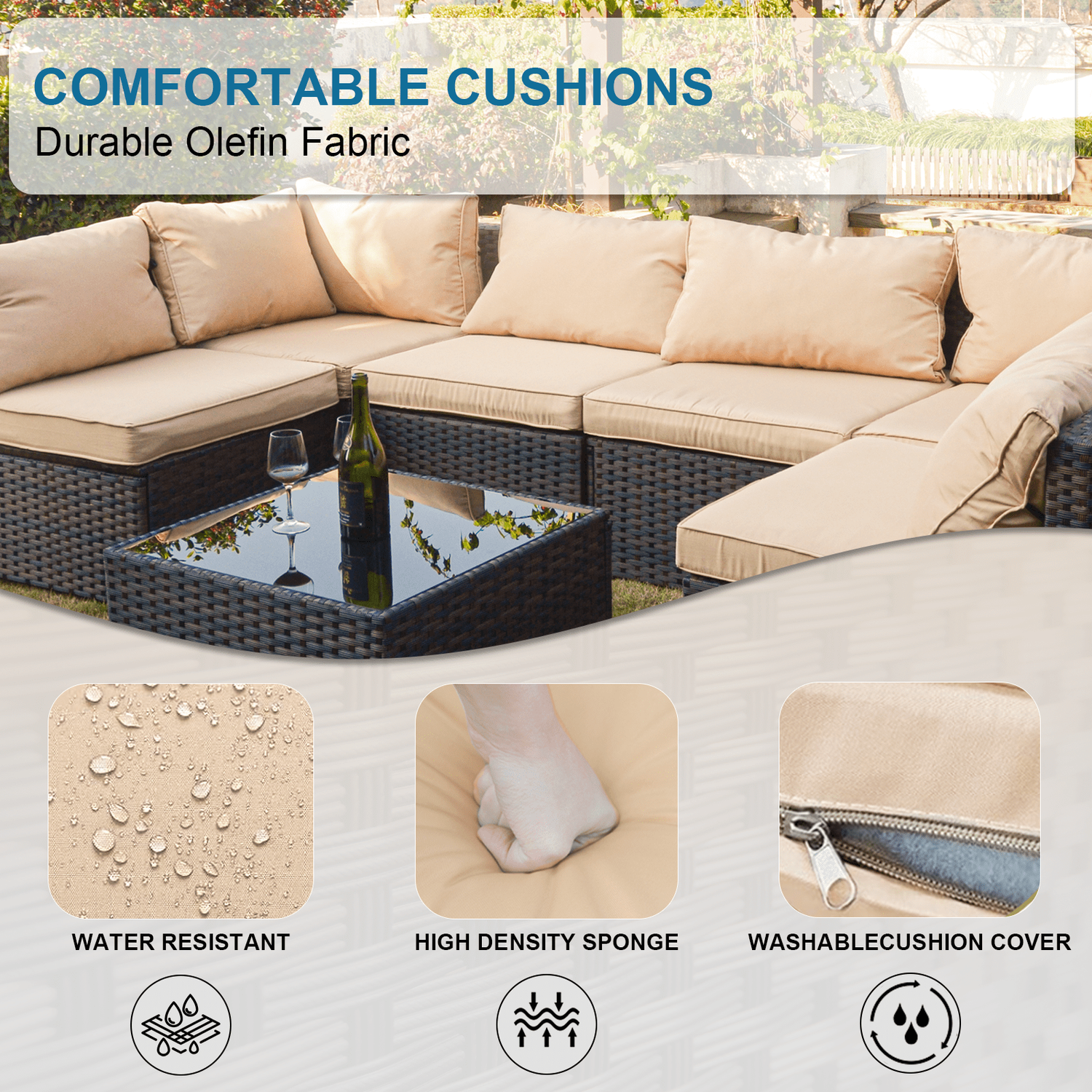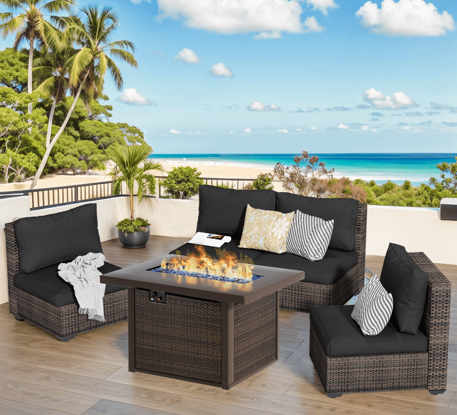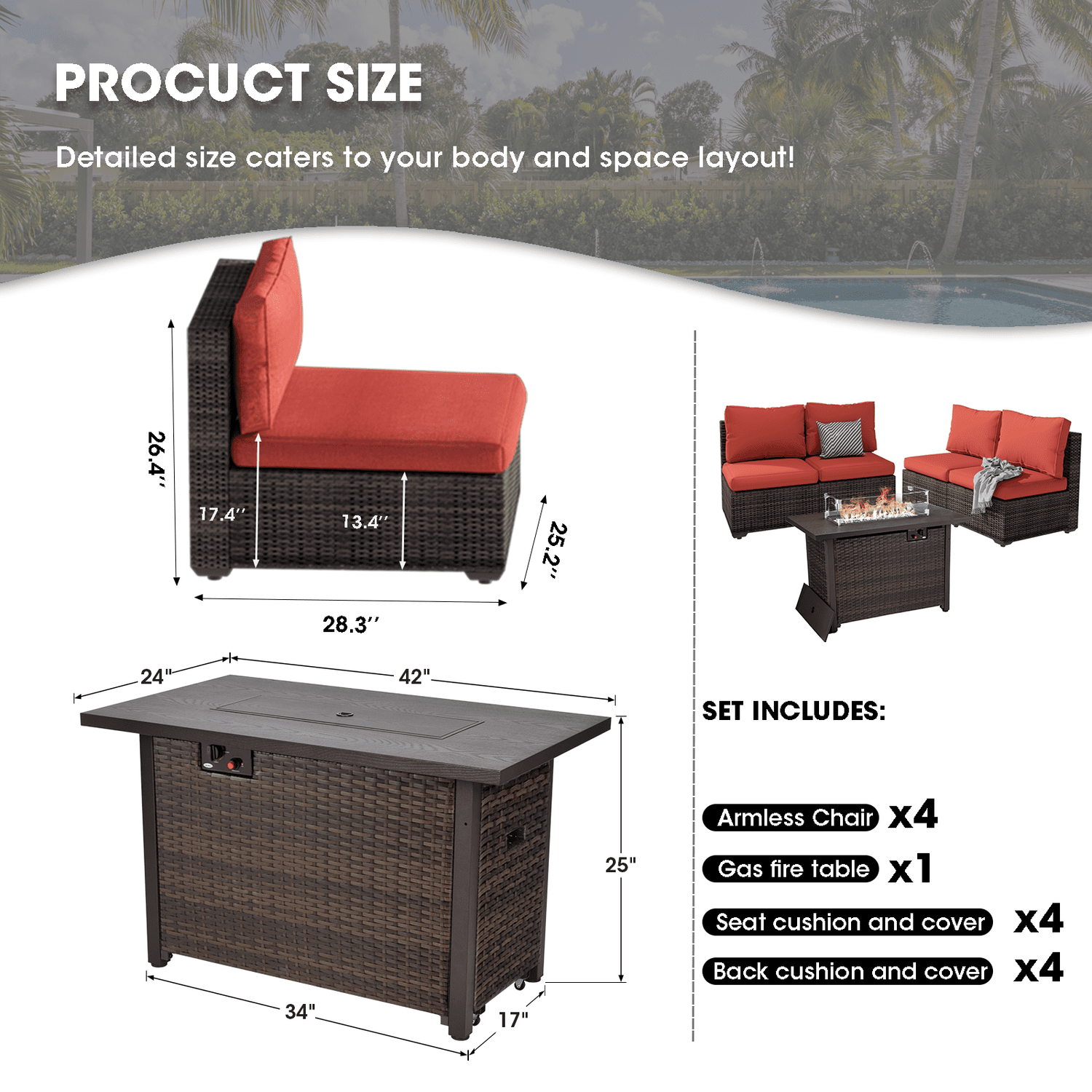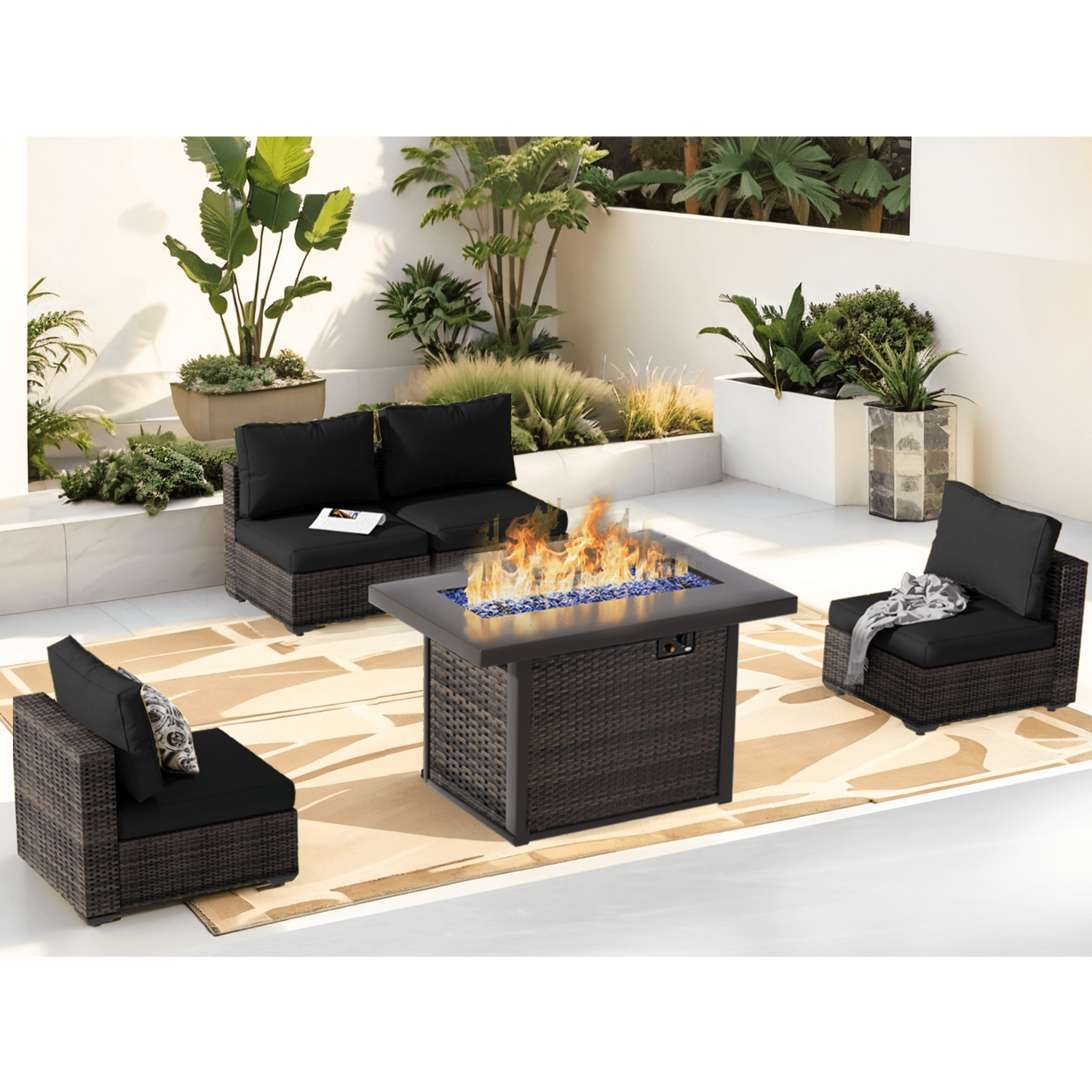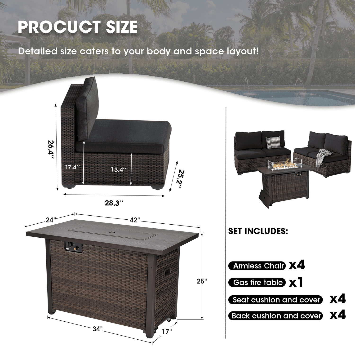 Gaildon 5 Piece Patio Furniture Set with Fire Pit Table, All Weather Outdoor Sectional PE Rattan, Patio Conversation Sets with Cushions for Garden Law