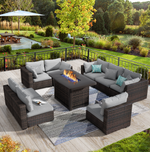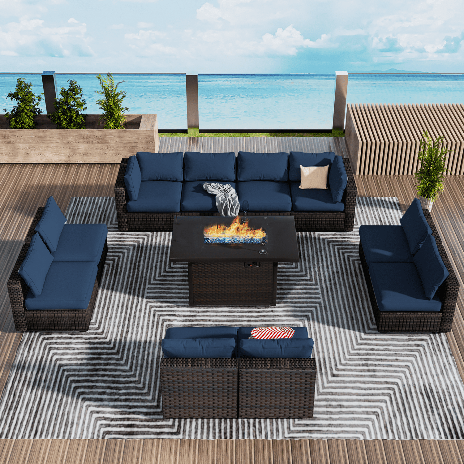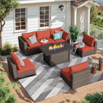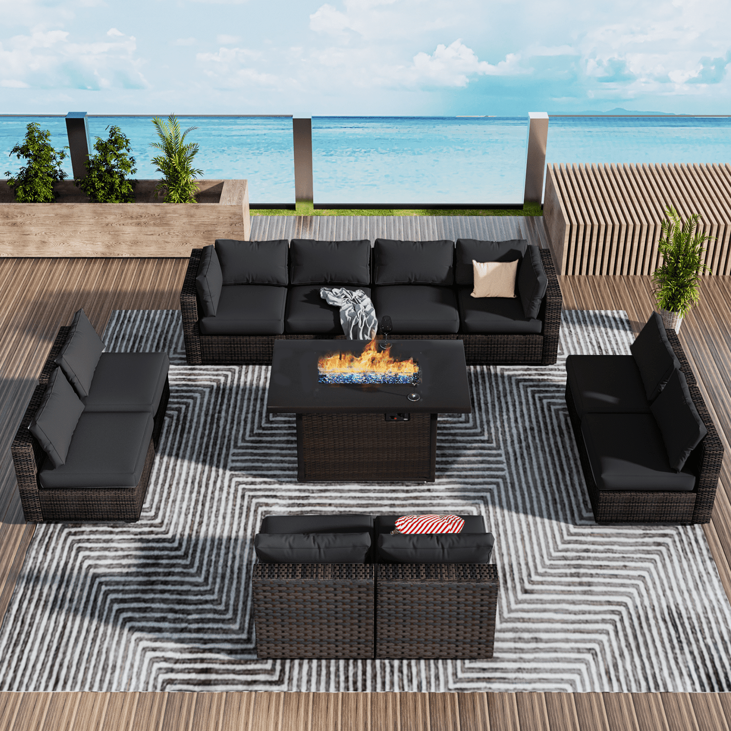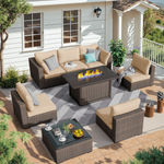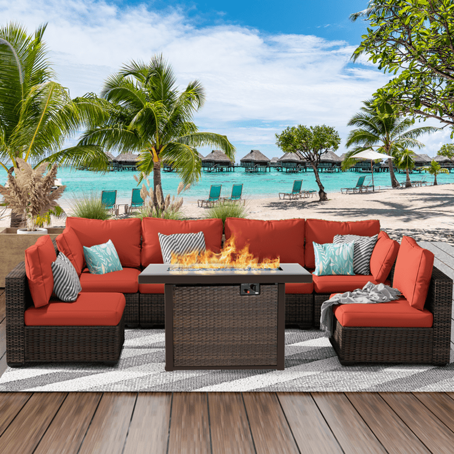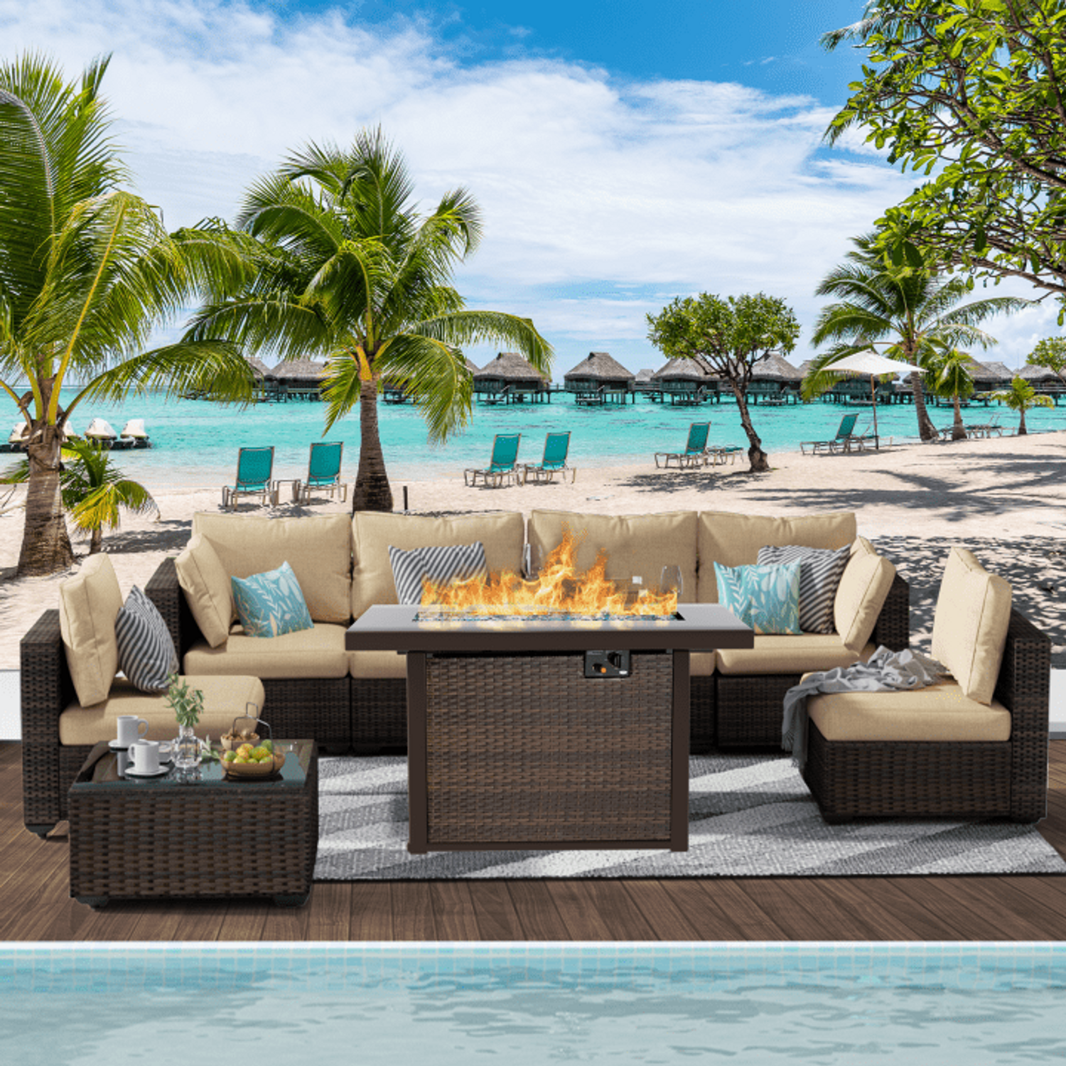 Gaildon 8 Piece Patio Furniture Set with Fire Pit Table, All Weather Outdoor Sectional PE Rattan, Patio Conversation Sets with Cushions and Glass Coff