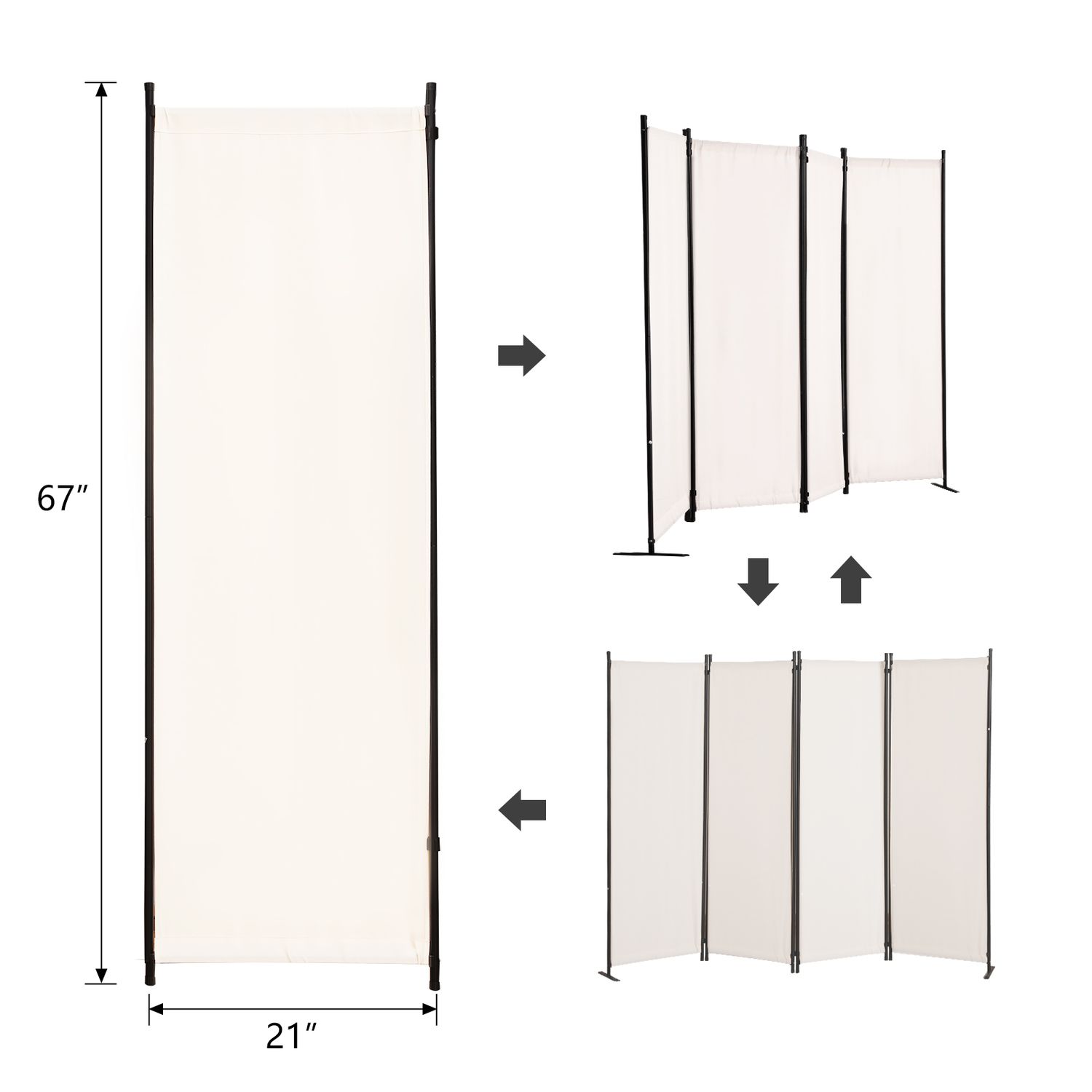 Gaildon 84”W×67”H 4-Pane Portable Folding Privacy Room divider,White