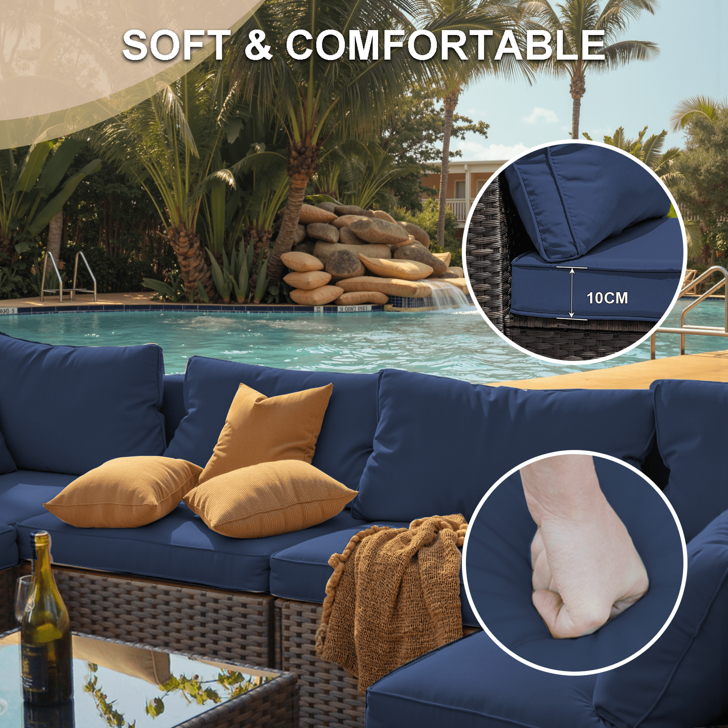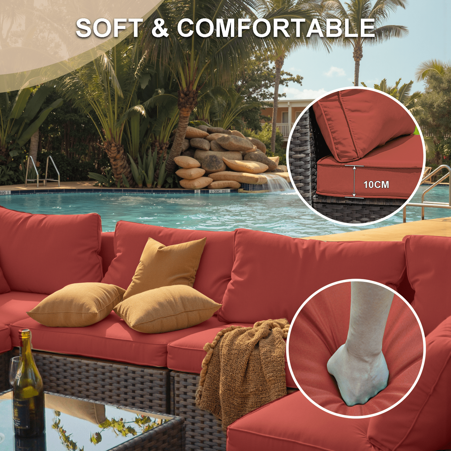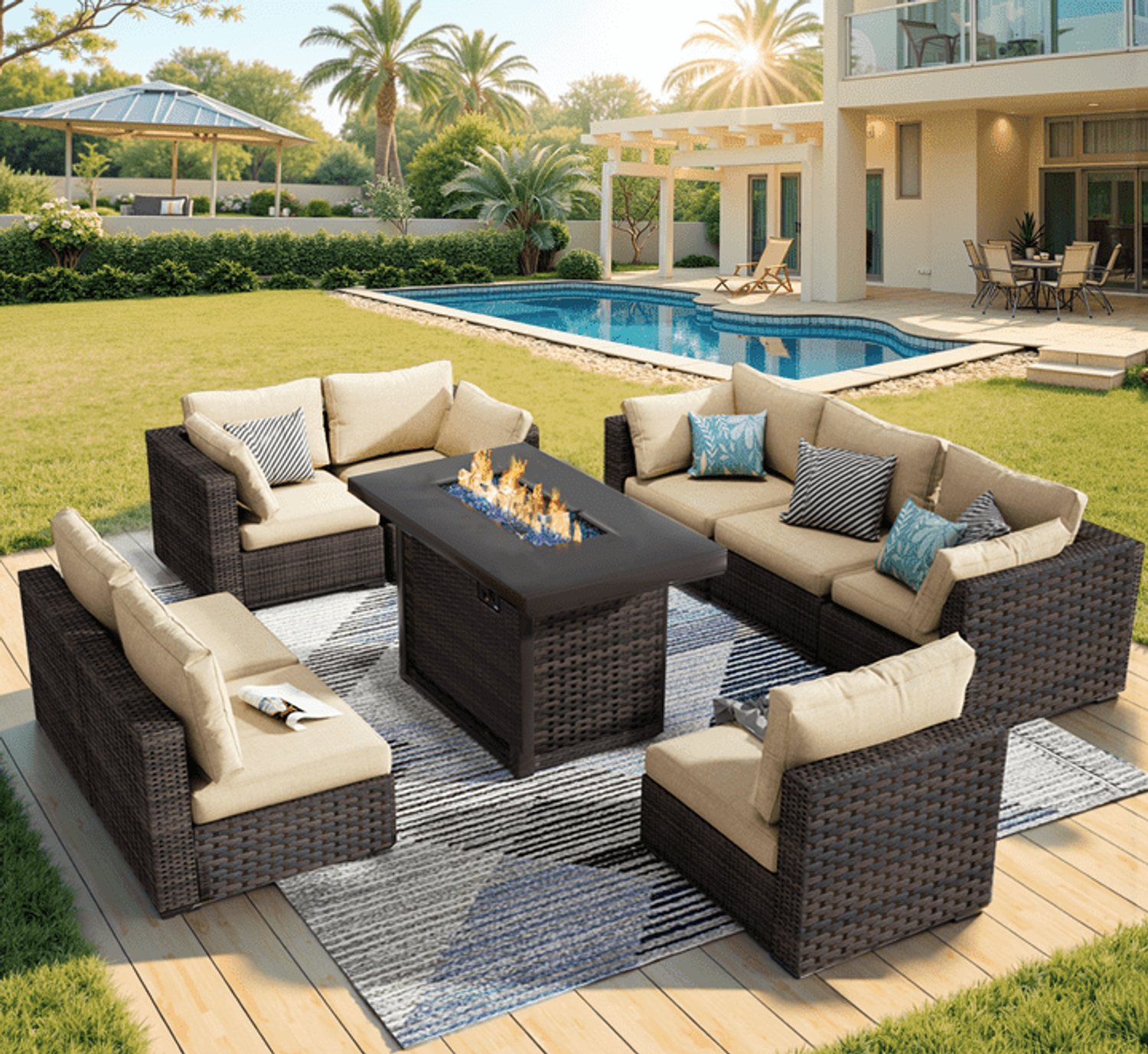 Gaildon 9 Piece Patio Furniture Set with Fire Pit Table, All Weather Outdoor Sectional PE Rattan, Patio Conversation Sets with Cushions and Glass Coff