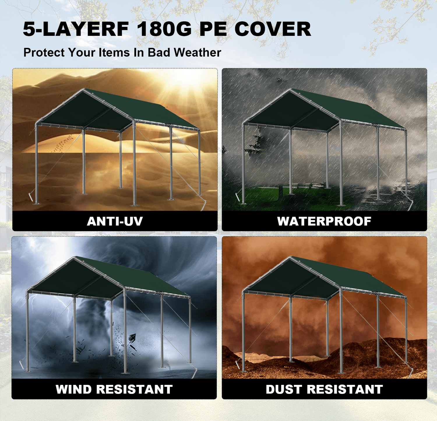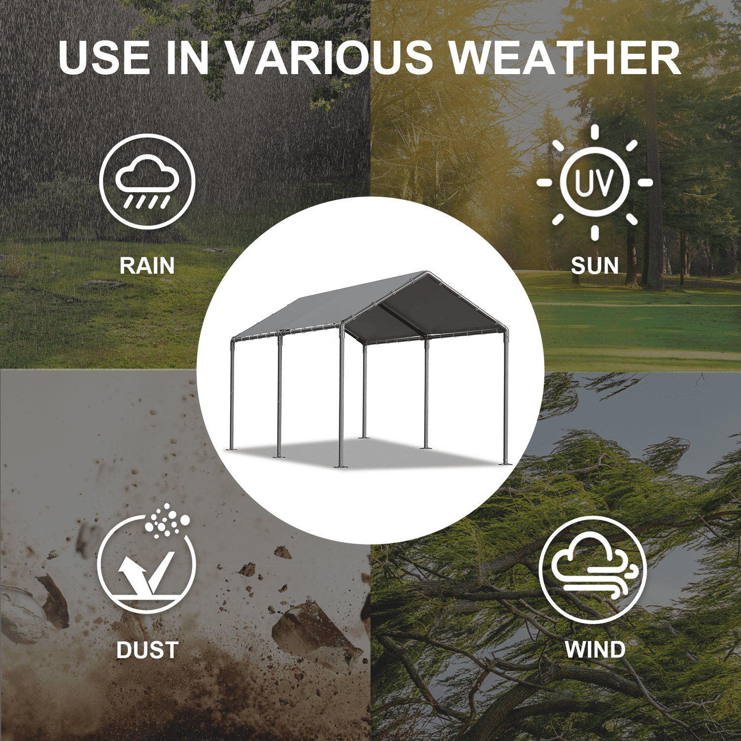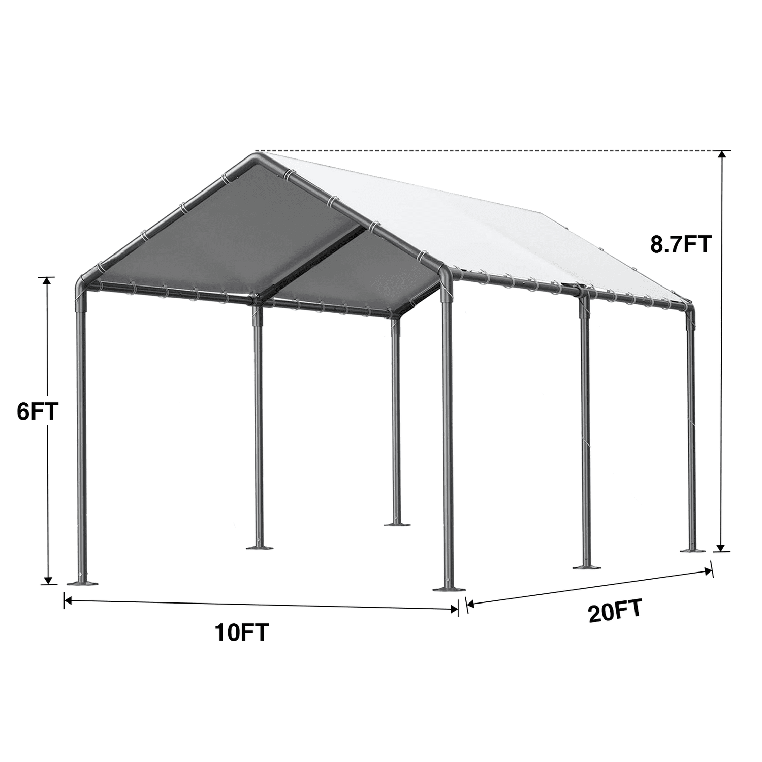 Gaildon Carport 10 x 20Ft Upgraded Heavy Duty Carport with Steel Wire Rope Portable Garage for Truck Boat Car Canopy with All-Season Tarp (Grey)