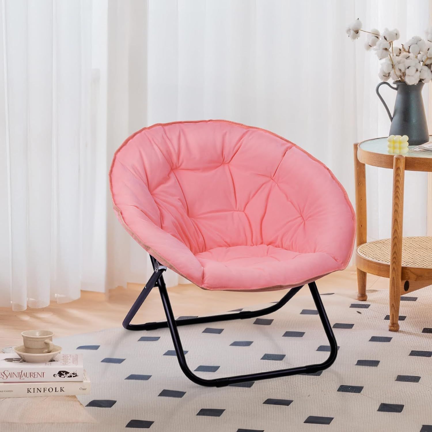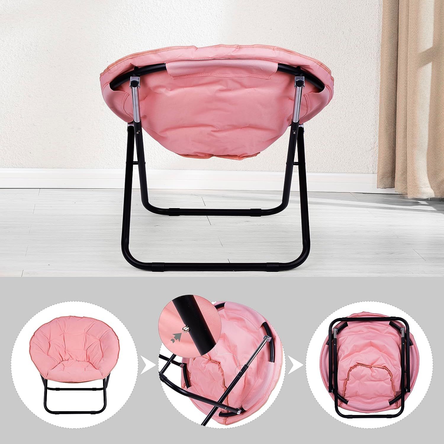 Gaildon Foldable Moon Saucer Chair with Mental Frame for Kids and Adults,Black
