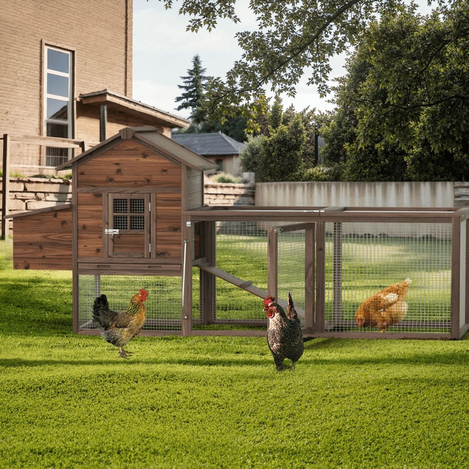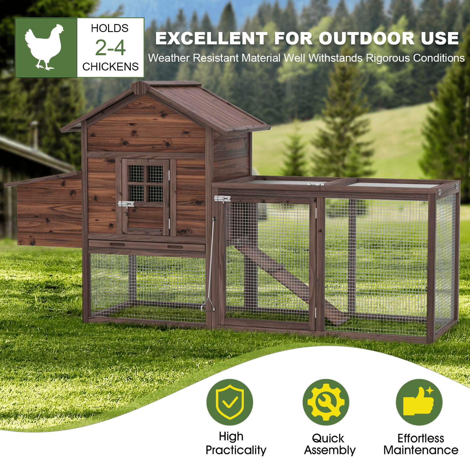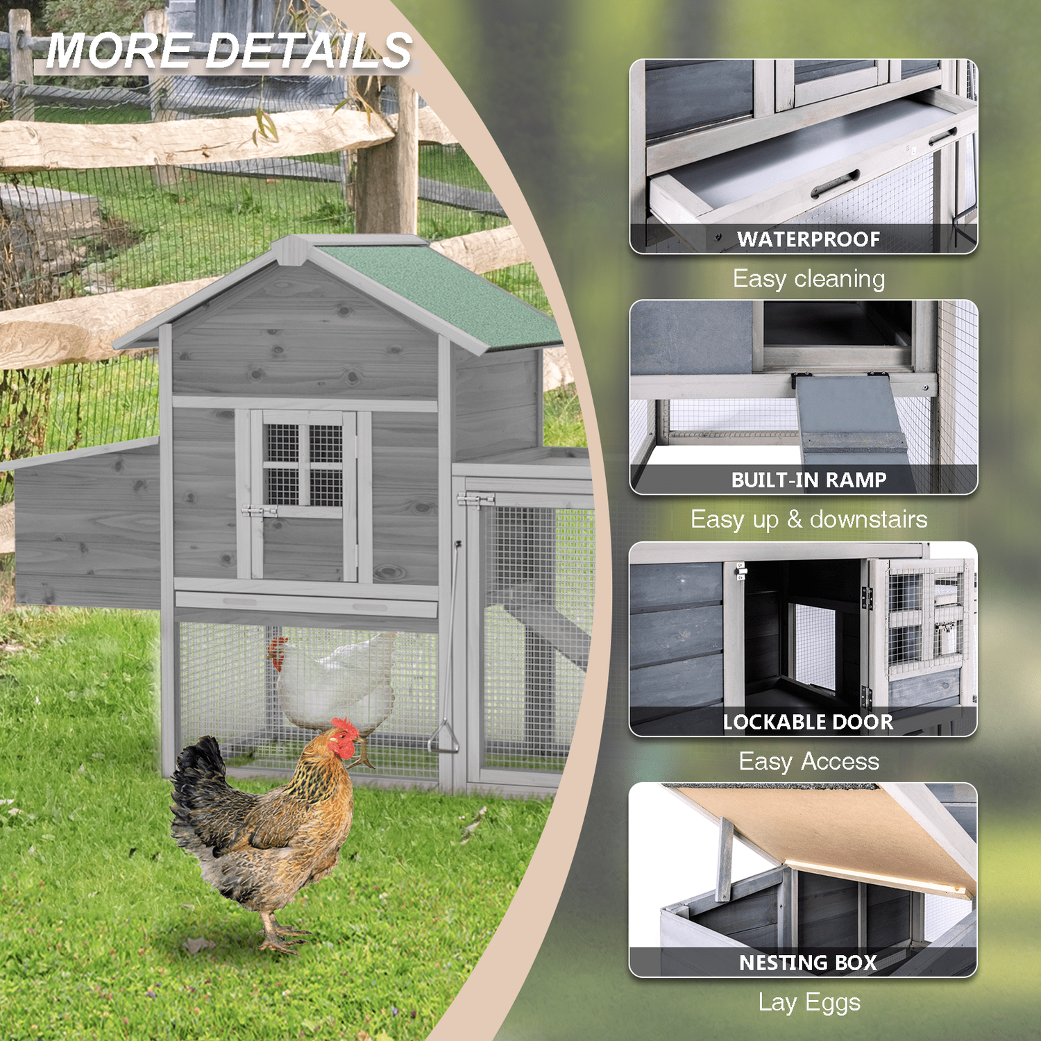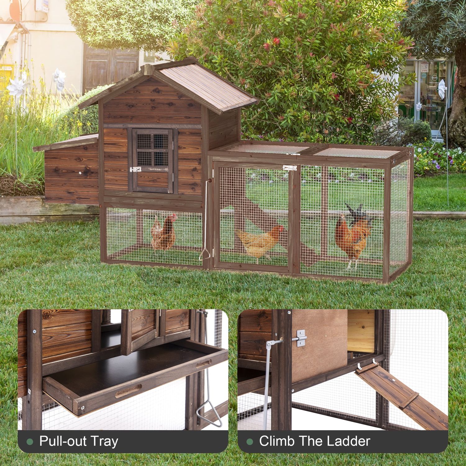 Gaildon Large Removable Chicken Coop for 4-5 Chickens ,with 2 Story Poultry Cage,Nesting Box,Pull Out Trays, Brown