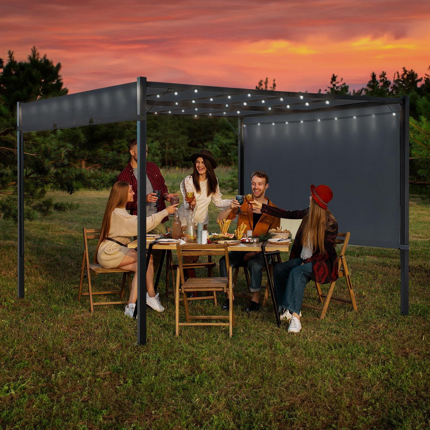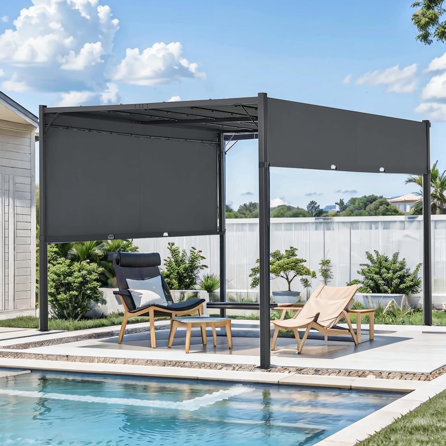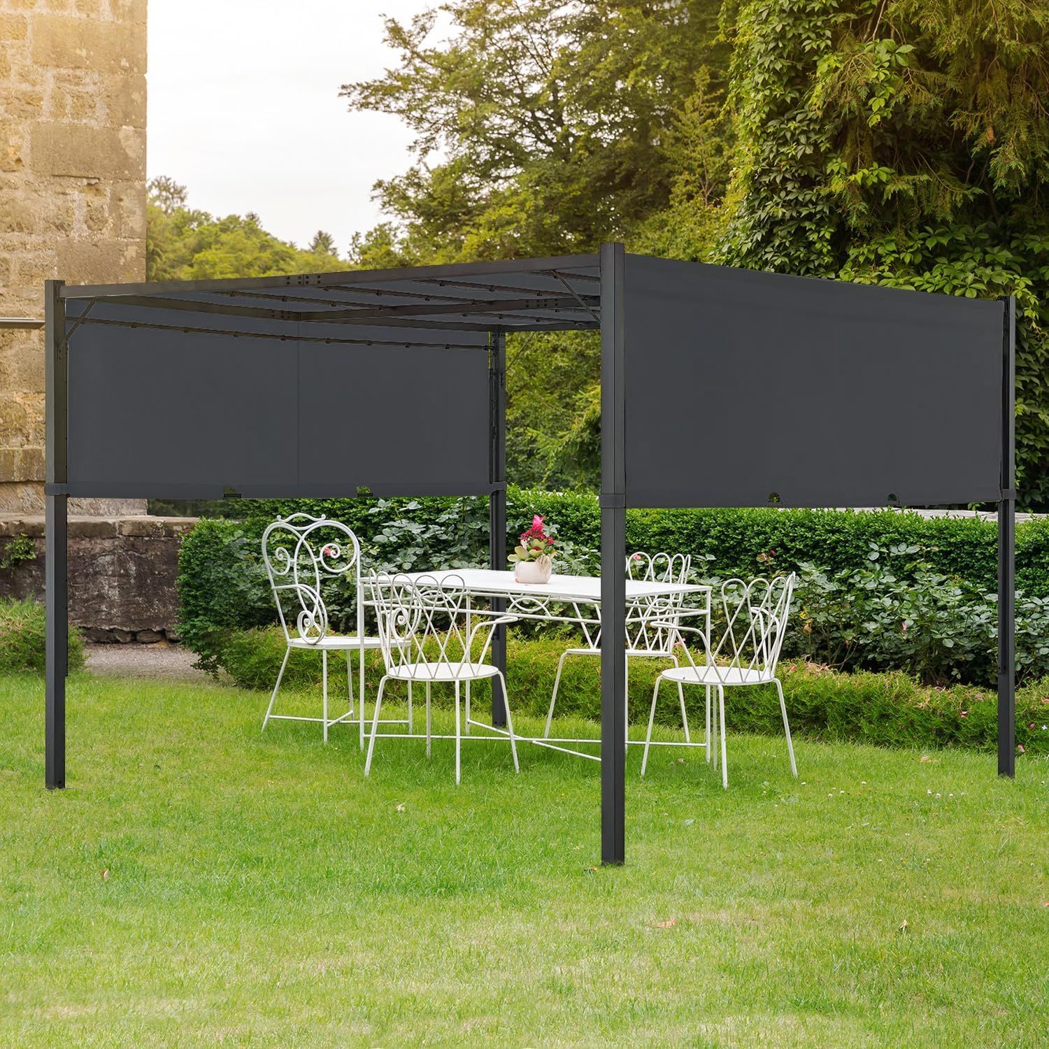 Gaildon Pergola 10×10 Outdoor Gazebo w/Heavy Duty Steel Frame and Retractabble Sun Shade Canopy Shelter for Backyard Deck