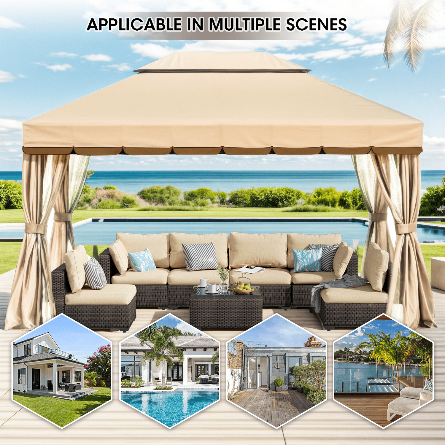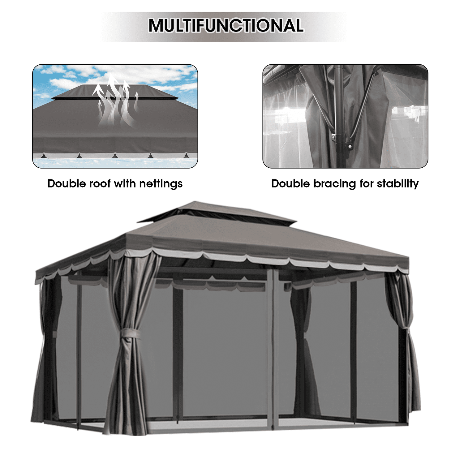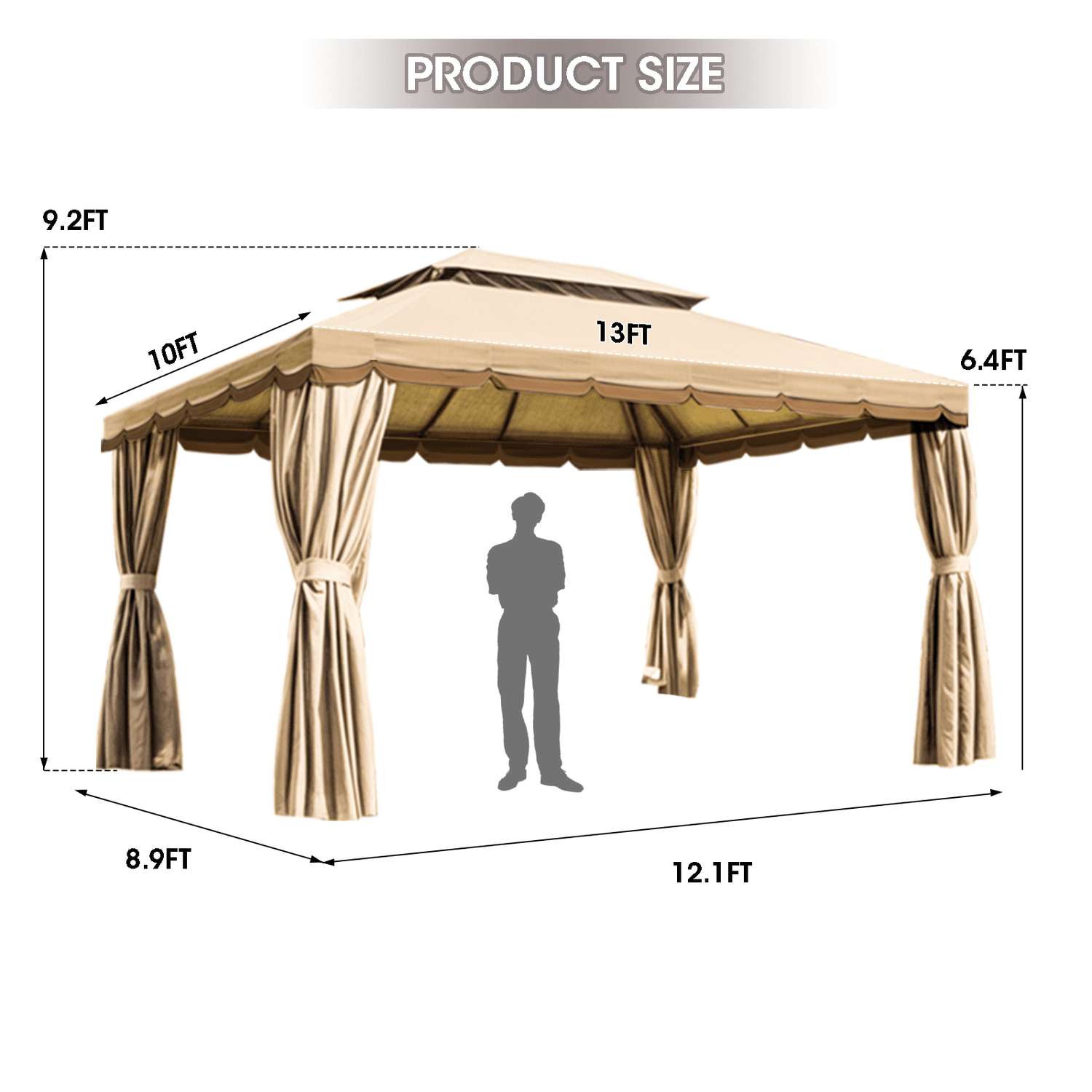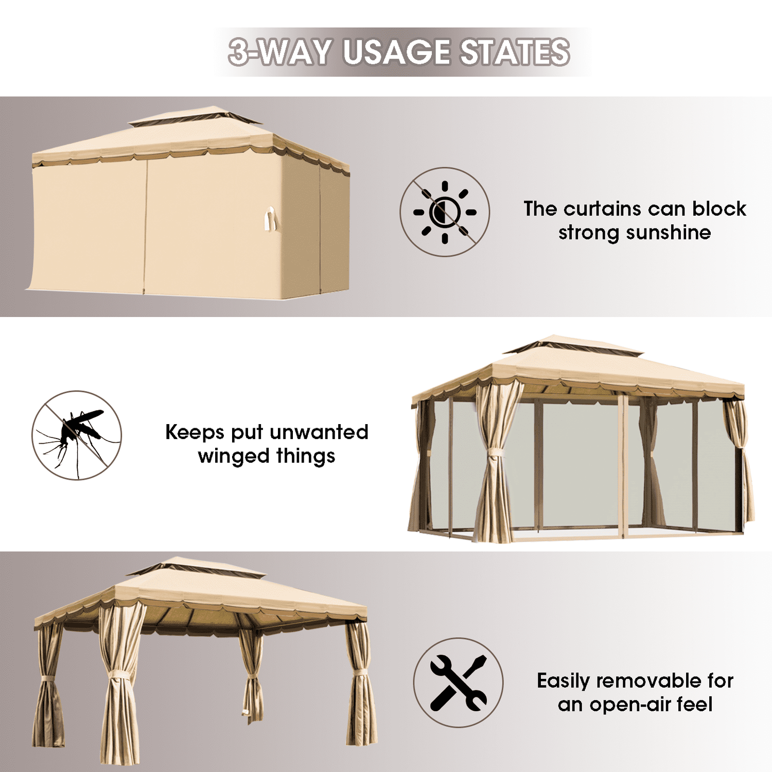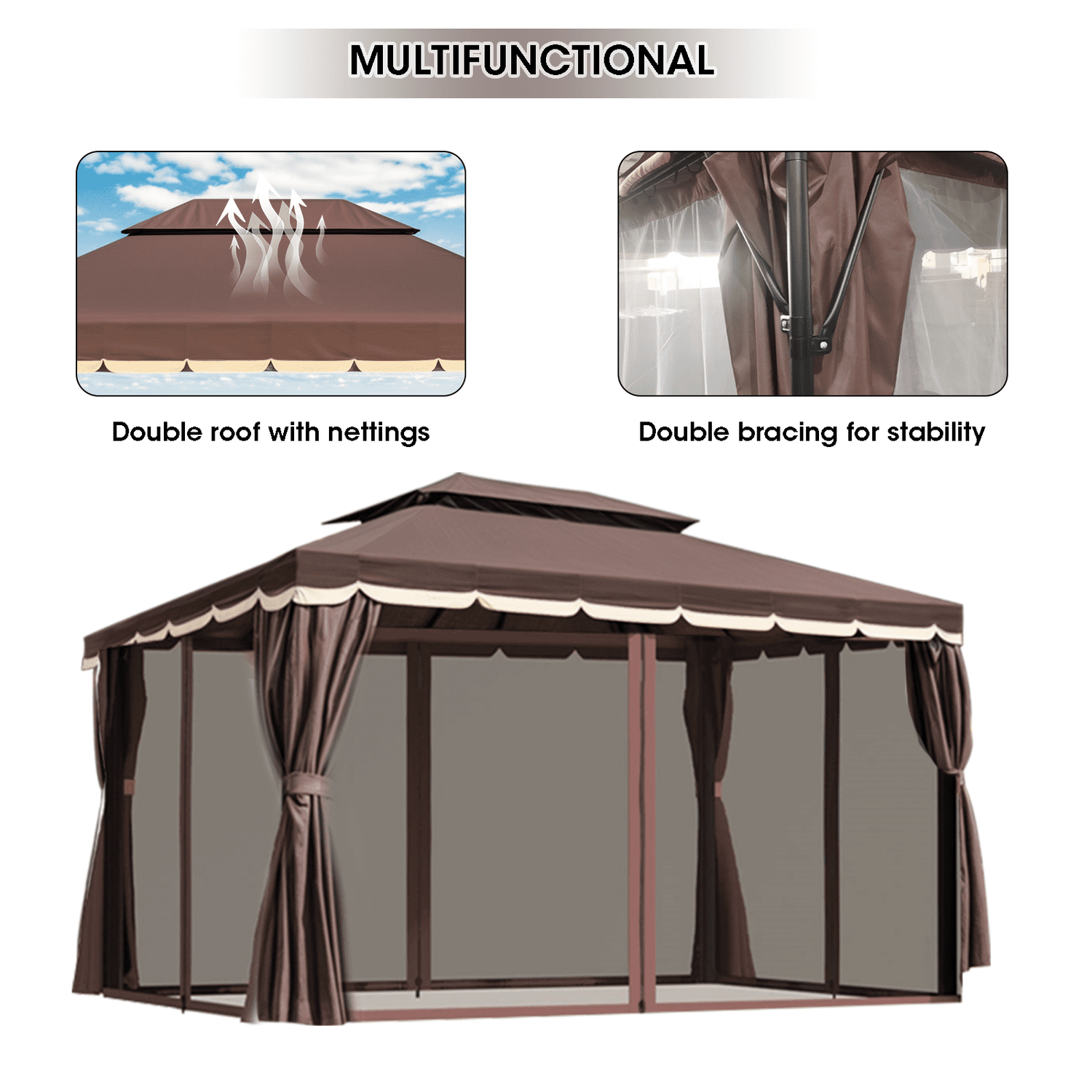 Gaptain 1012 FT Deluxe No Screws Gaebo,Double Roof Outdoor Shelter Tent with Mosquito Nettings and Privacy Screens, Beige