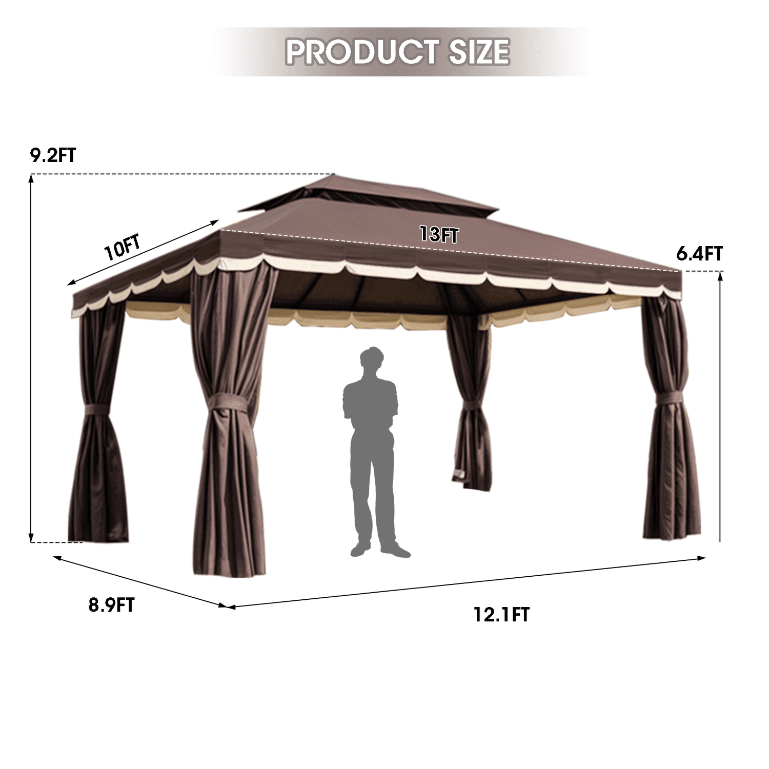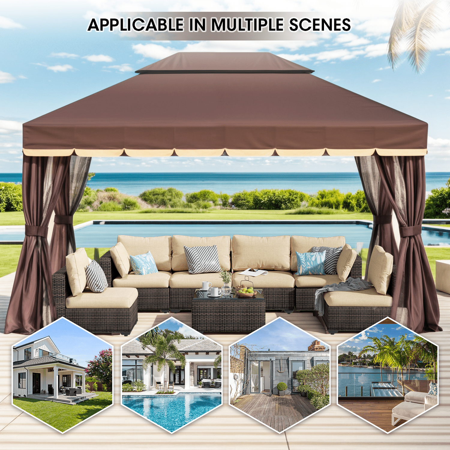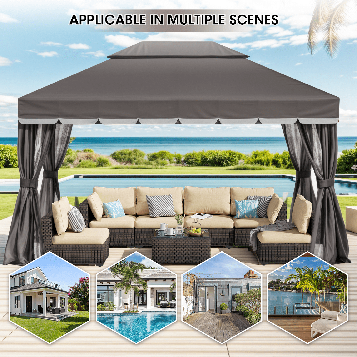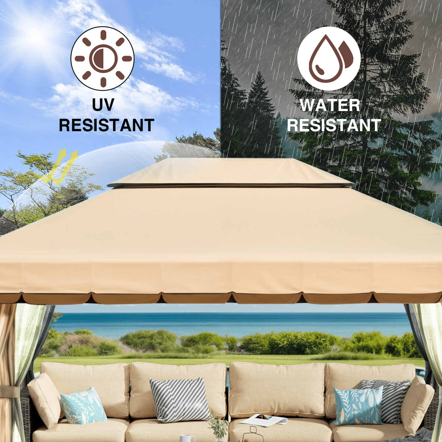 Gaptain 1012 FT Deluxe No Screws Gaebo,Double Roof Outdoor Shelter Tent with Mosquito Nettings and Privacy Screens, Beige