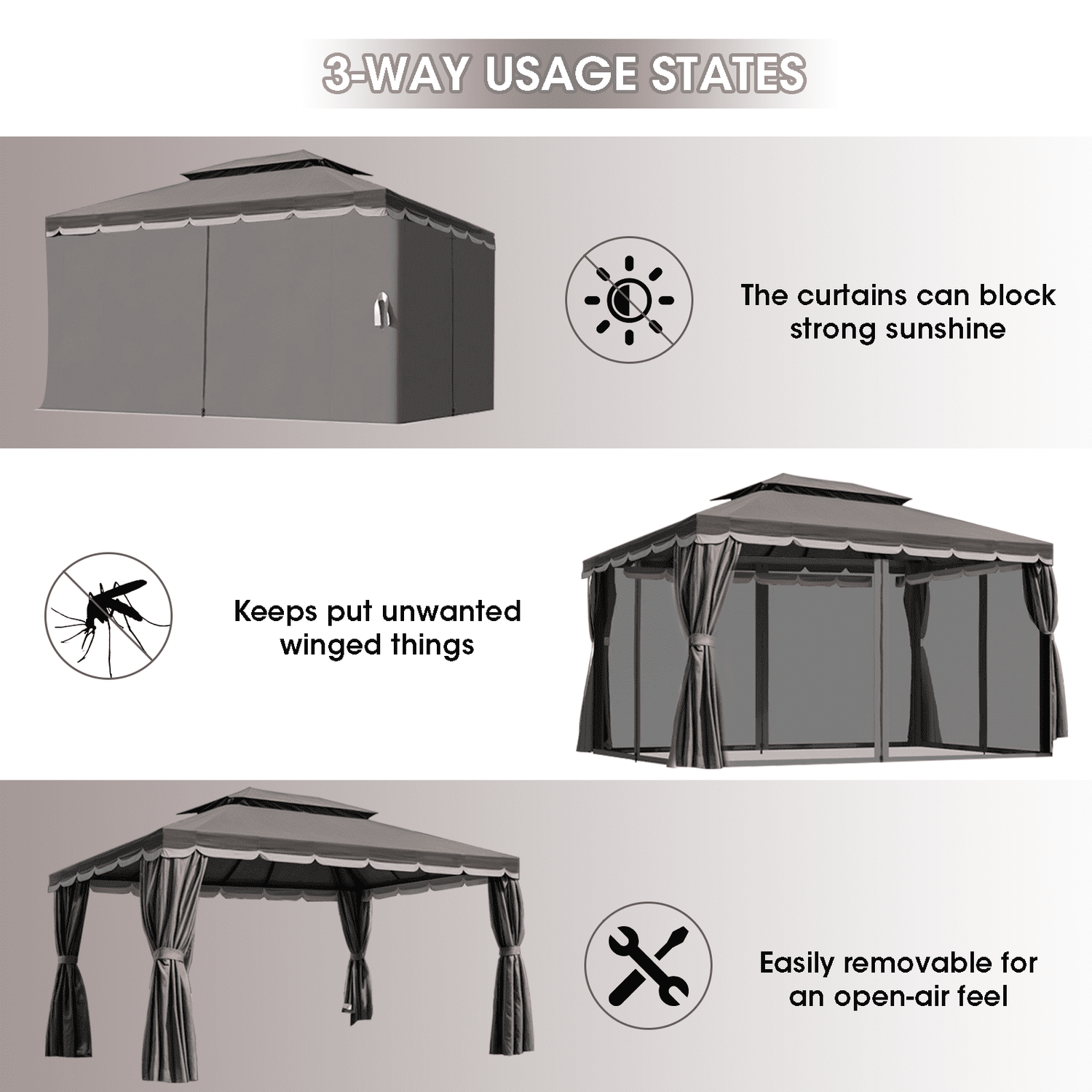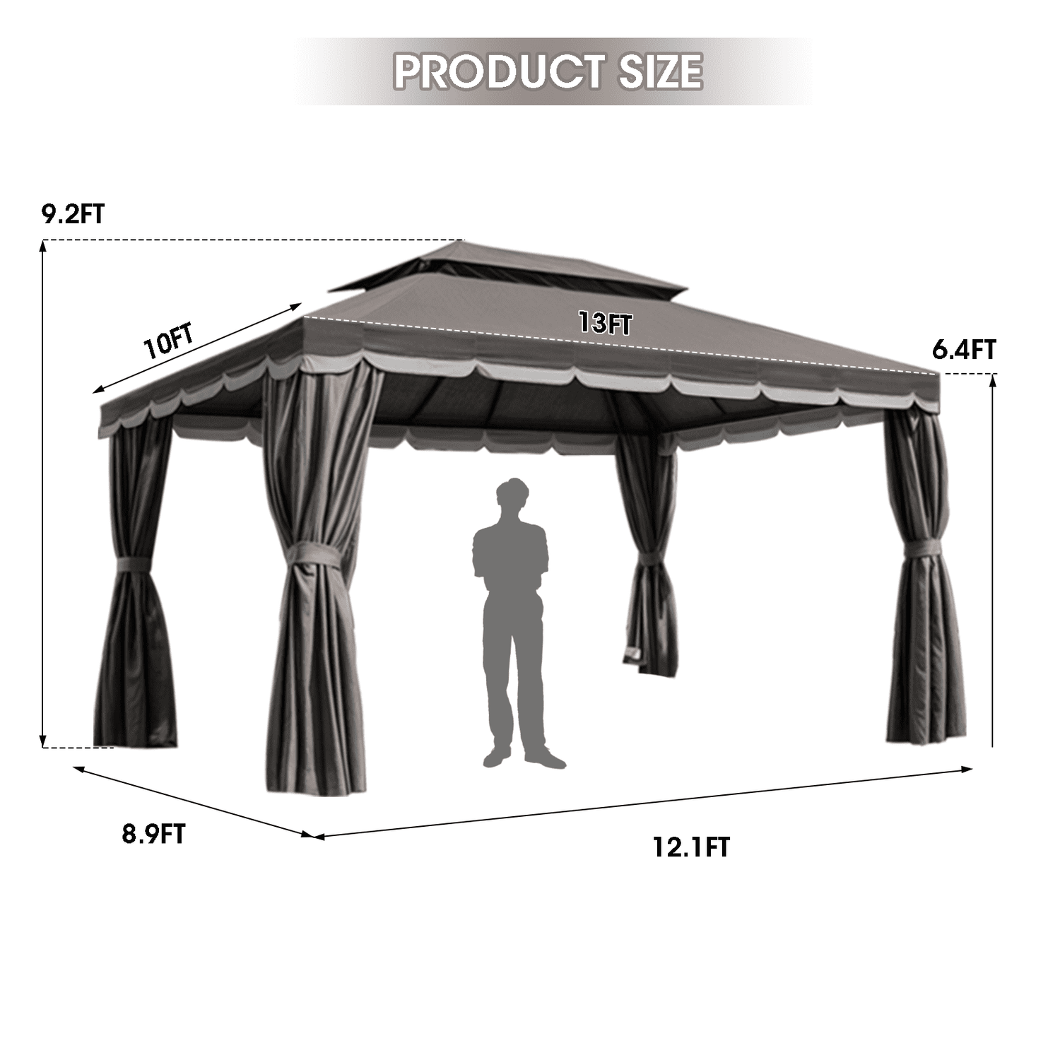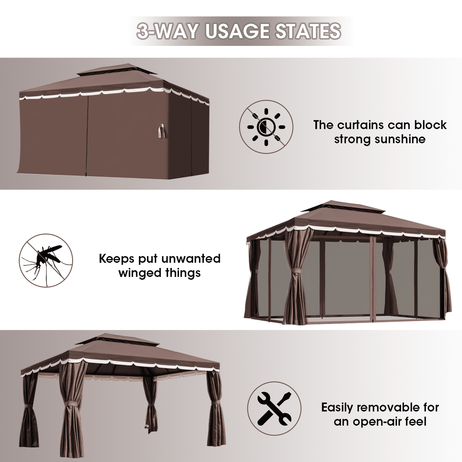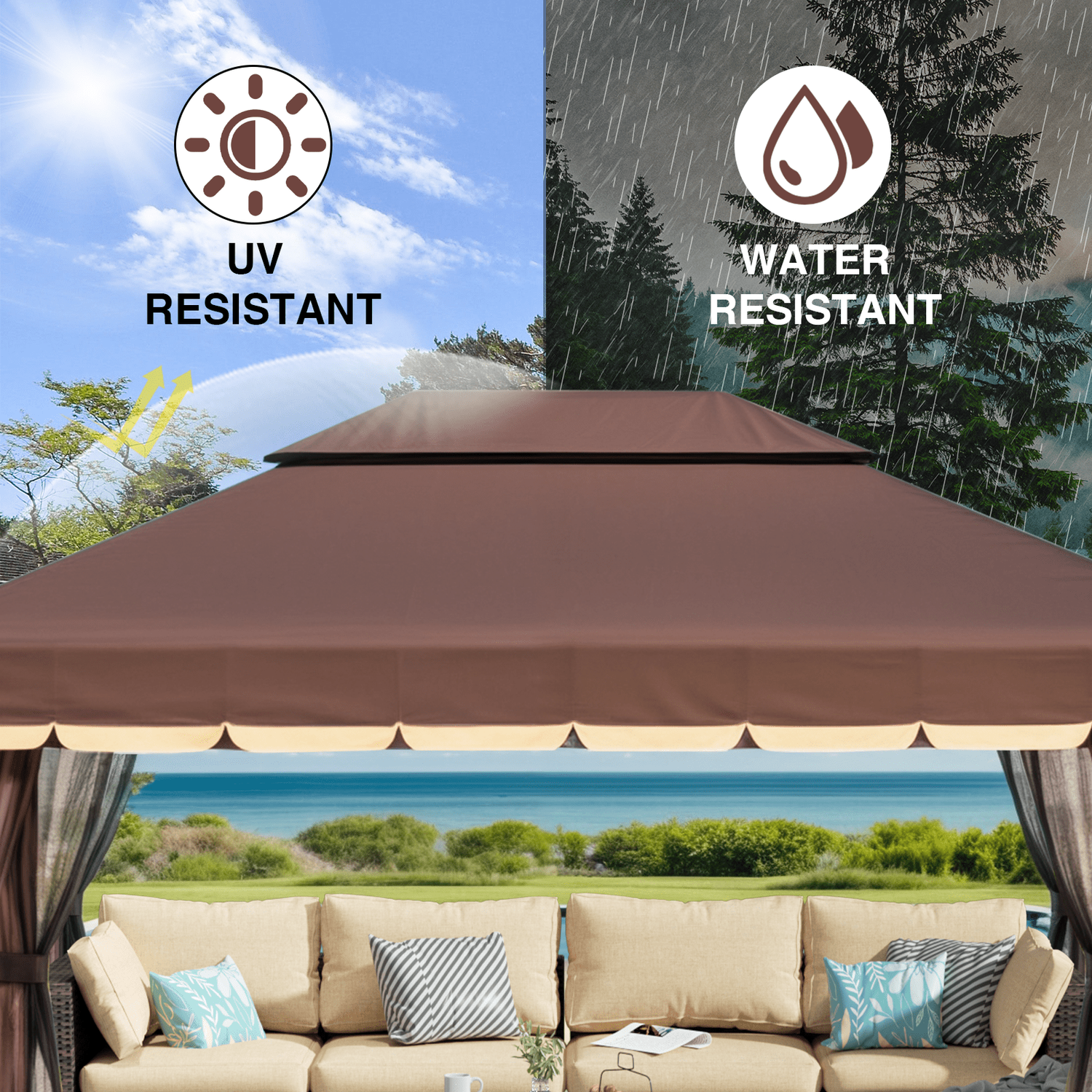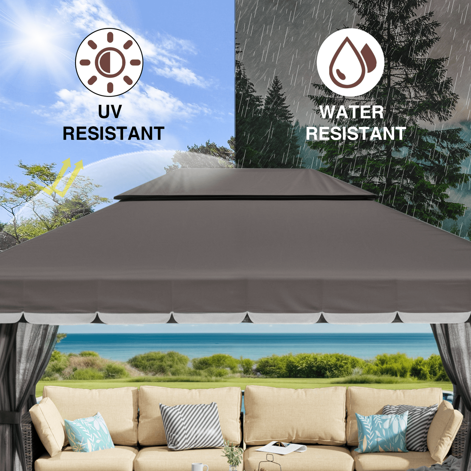 Gaptain 1012 FT Deluxe No Screws Gaebo,Double Roof Outdoor Shelter Tent with Mosquito Nettings and Privacy Screens, Beige