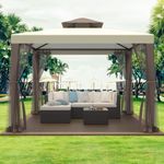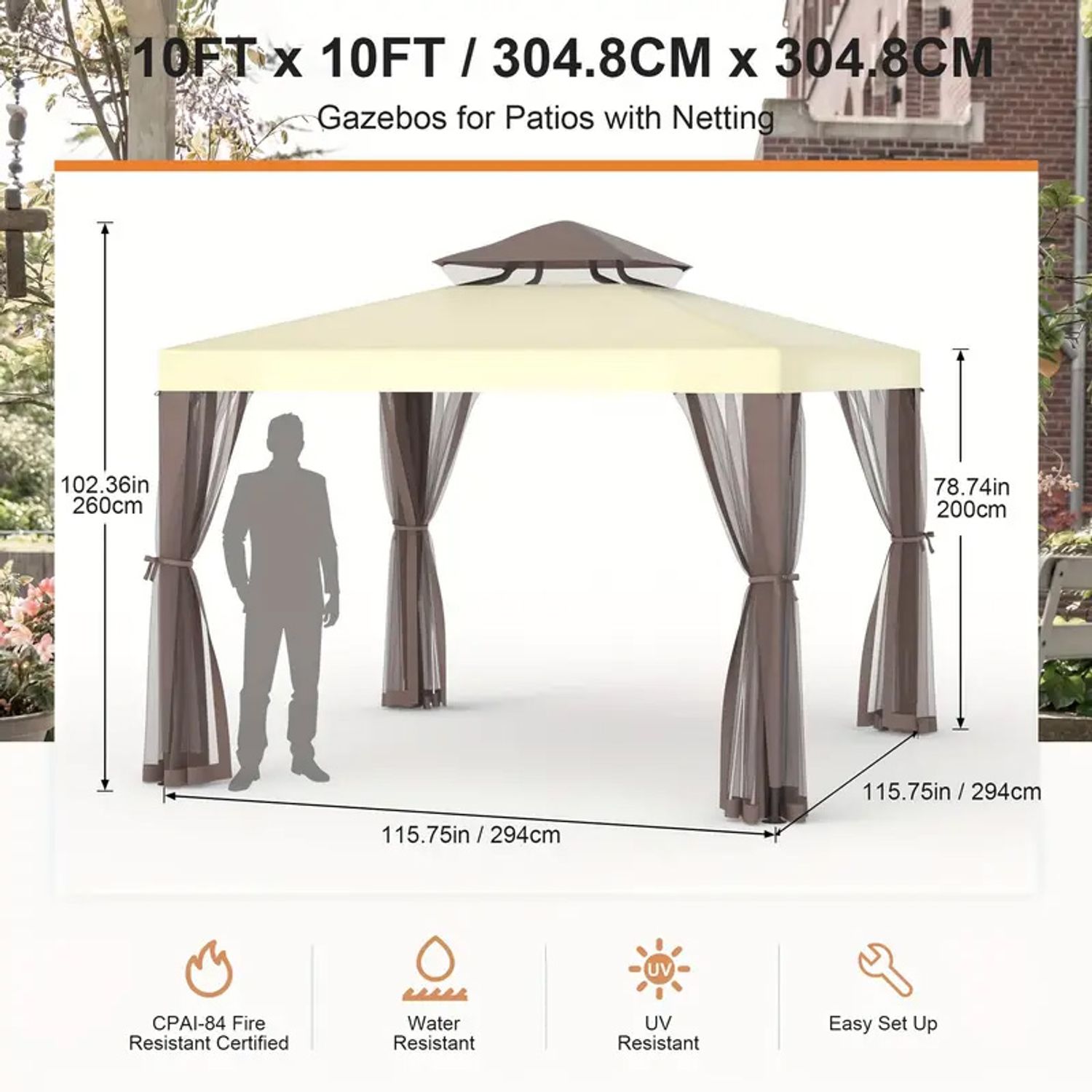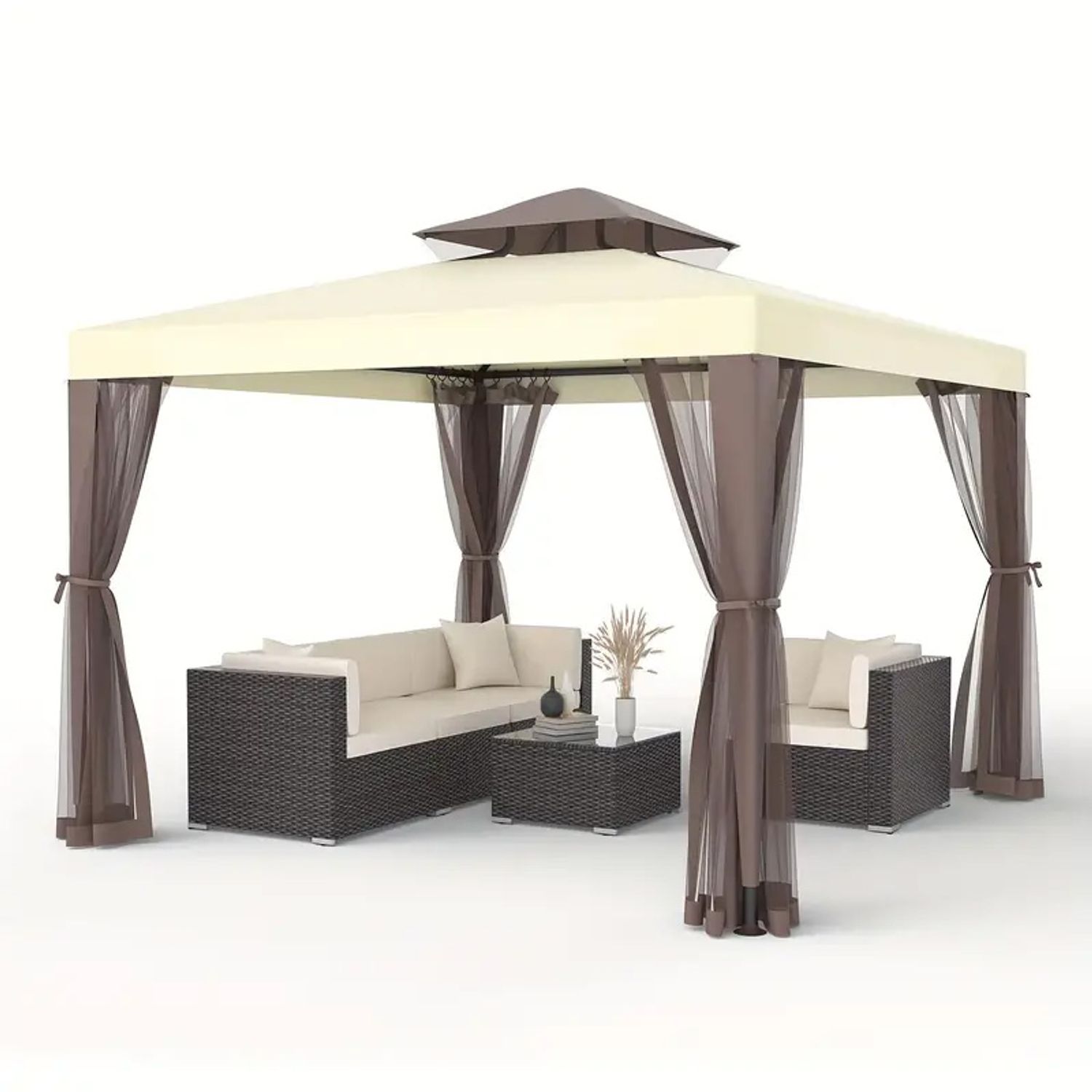 Gojooasis 10'x10' Gazebo Outdoor Canopy Tent with Curtains and Shelter for Patio,Beige