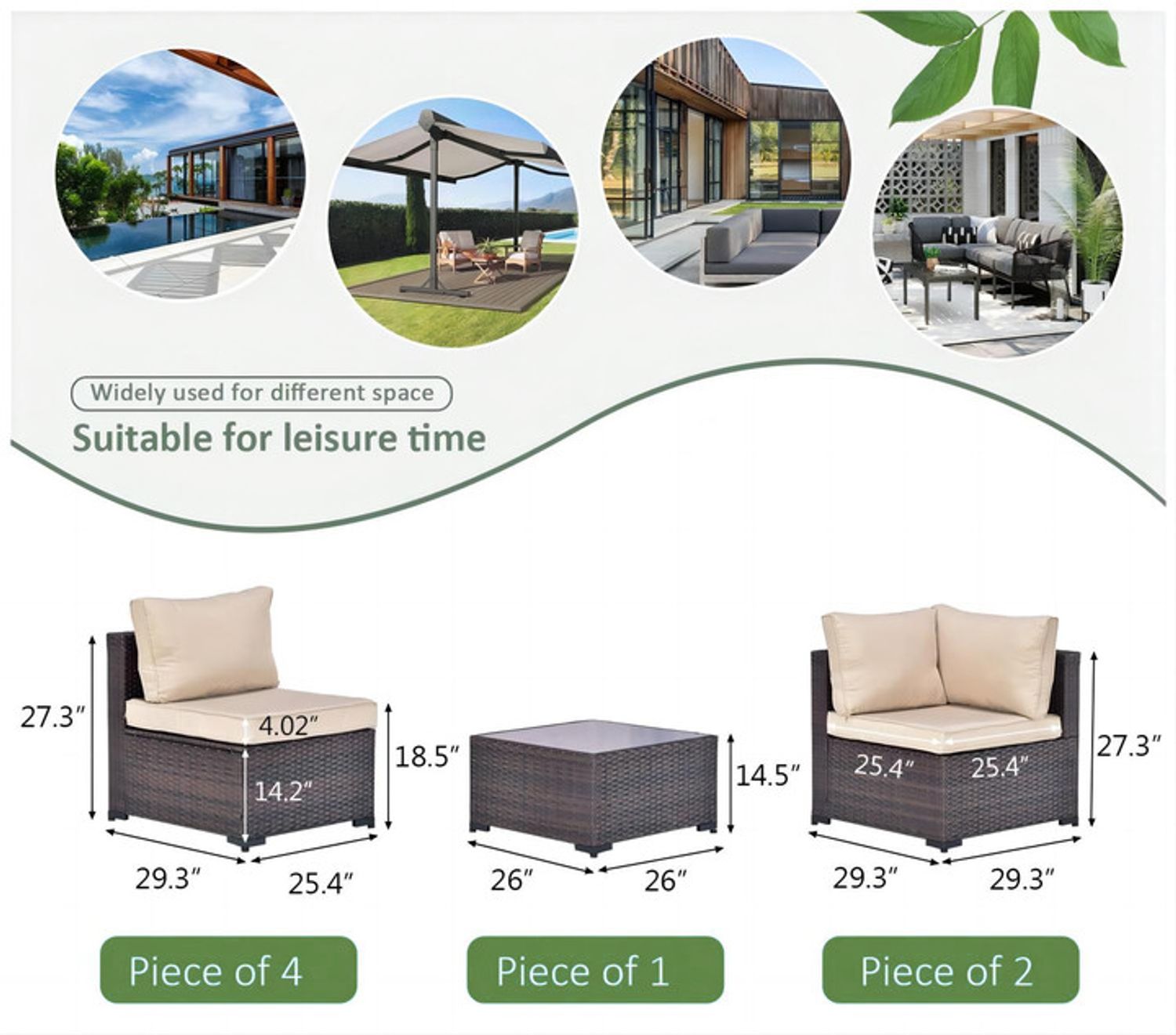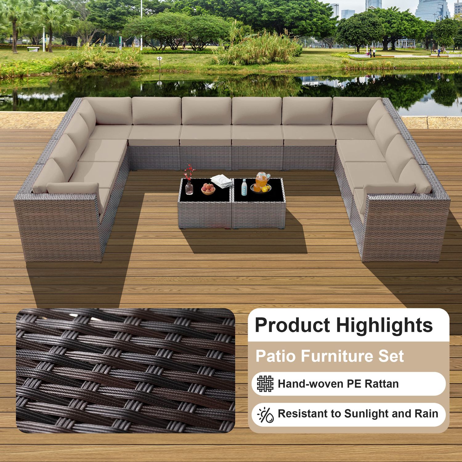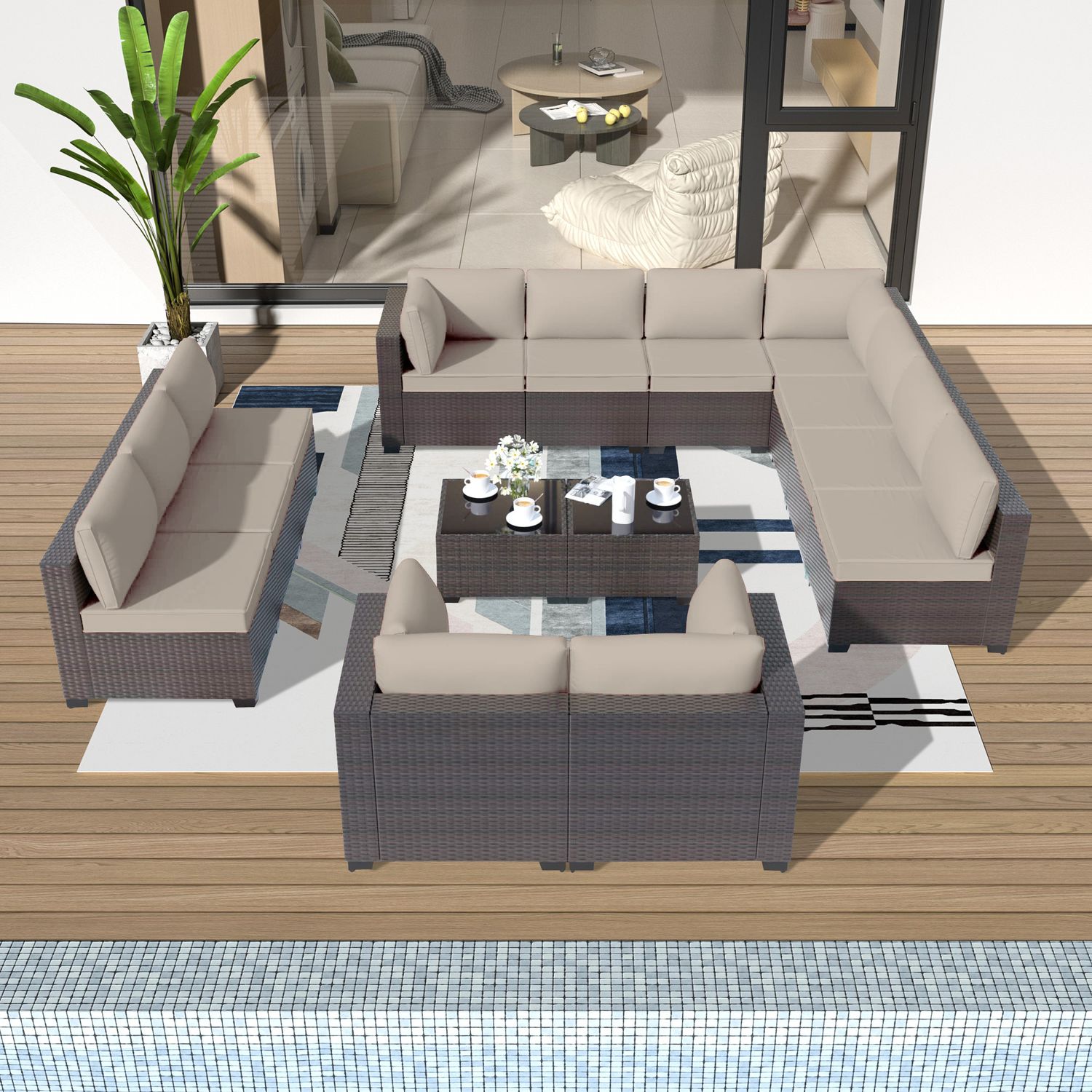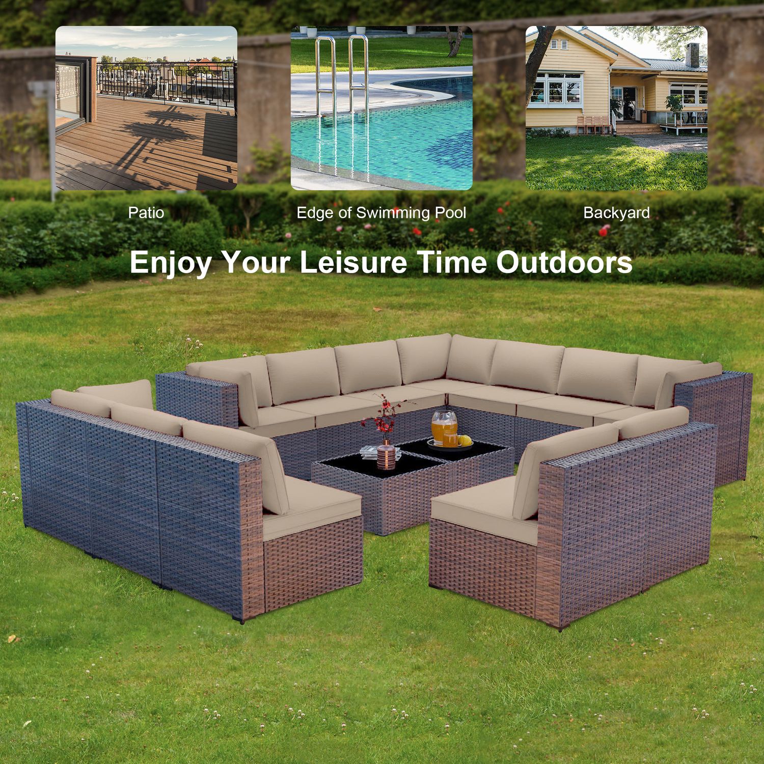 GOJOOASIS Beige 14PCS Set Wicker Outdoor Sectional Sofa