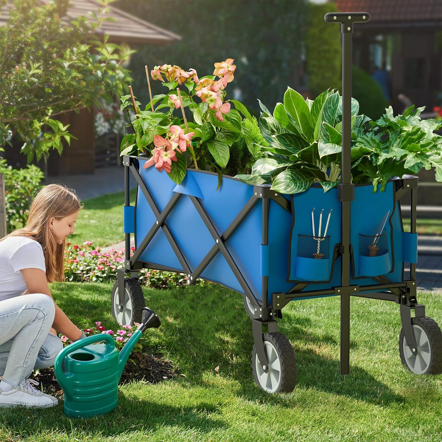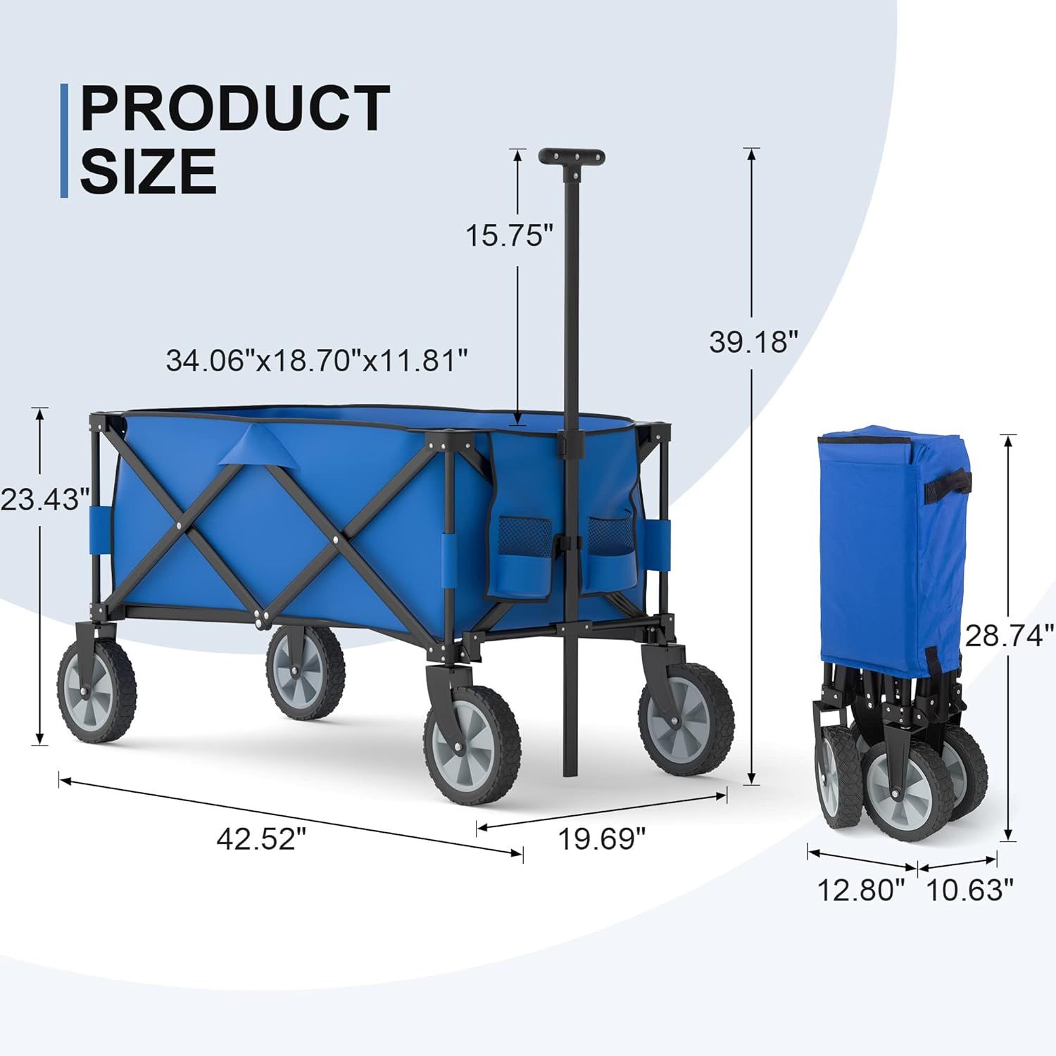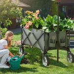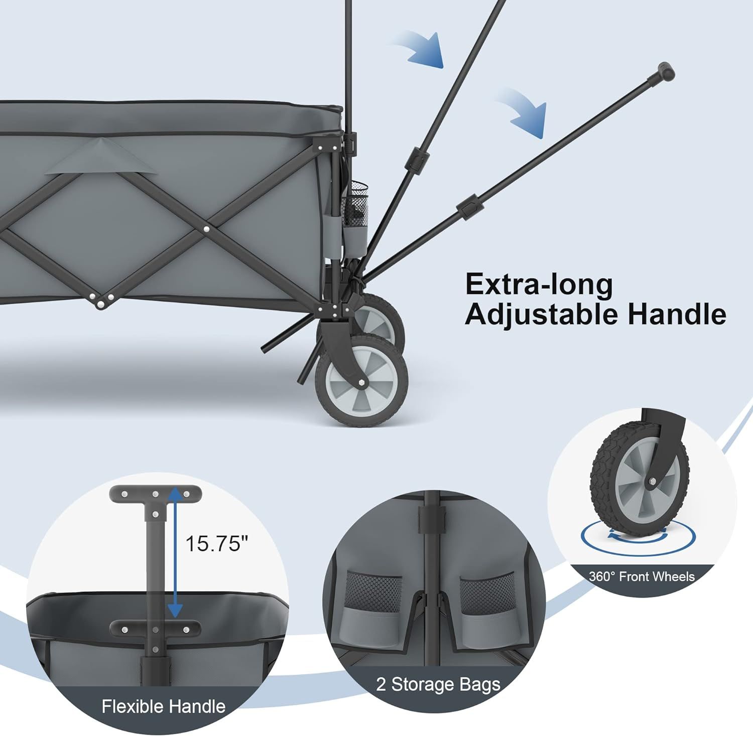 GOJOOASIS Collapsible Beach Wagon Folding Cart for Shopping, Camping, Sports (Gray)