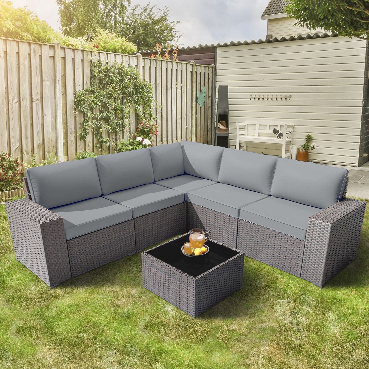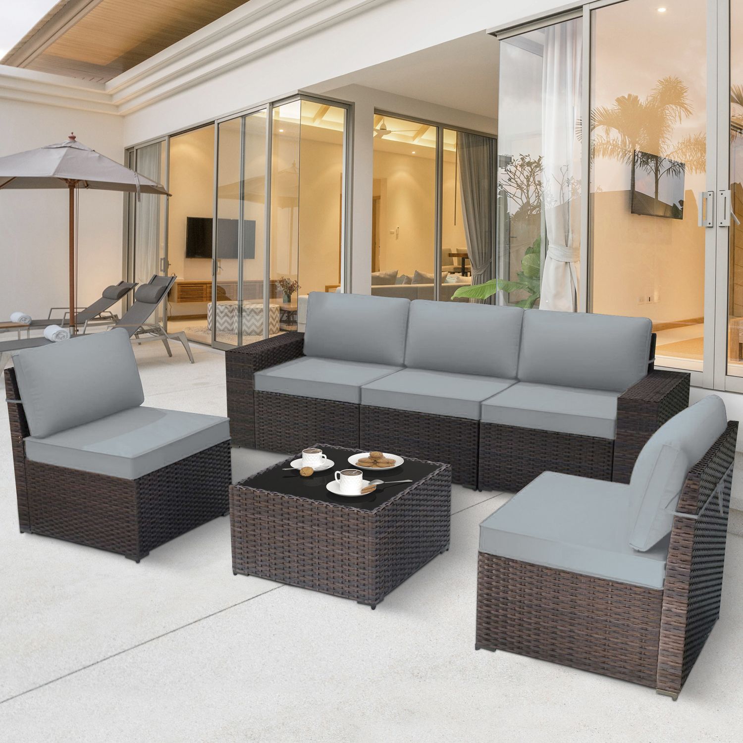 GOJOOASIS Grey 6PCS Set Wicker Outdoor Sectional Sofa