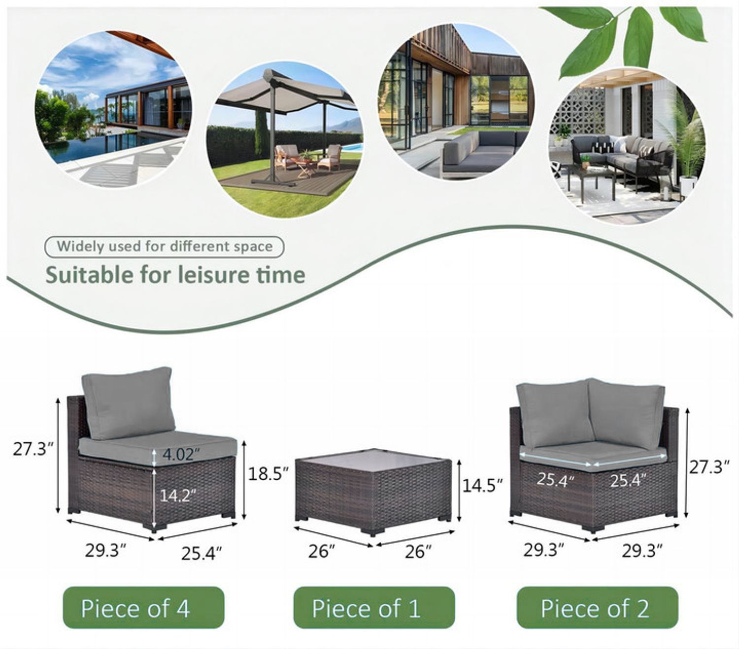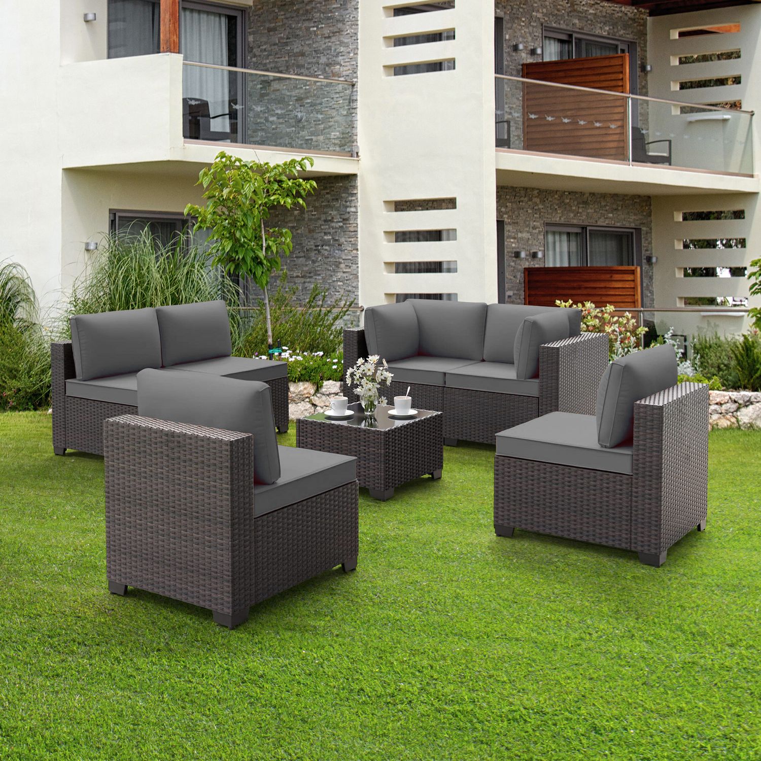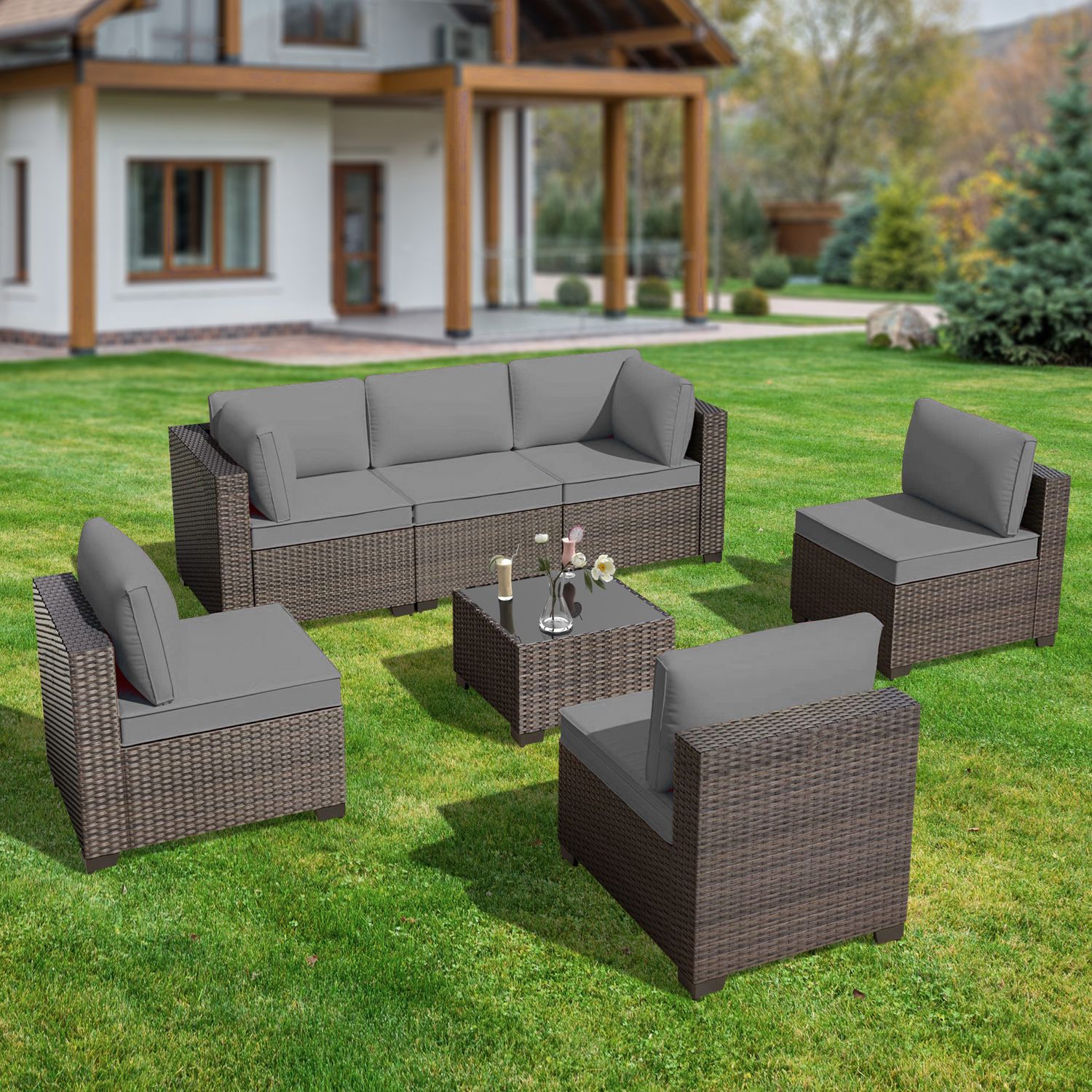 GOJOOASIS Grey 7PCS Set Wicker Outdoor Sectional Sofa