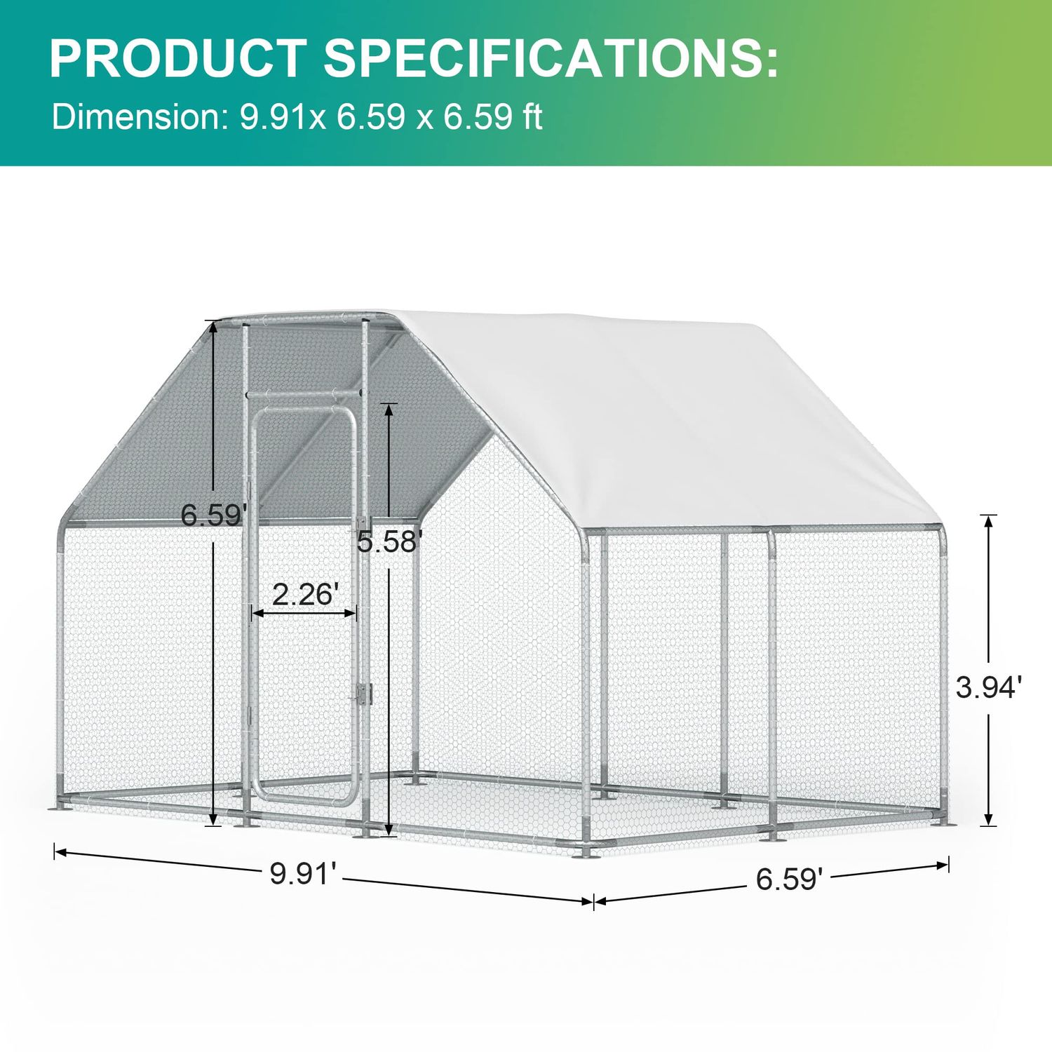 Gojooasis Large Metal Chicken Coops for 20 Chickens Runs for Yard with Waterproof Cover Walk-in Chicken Pen 10'Lx6.6'Wx6.6'H