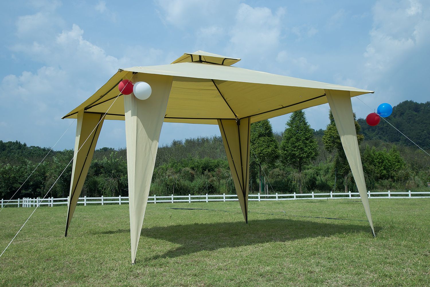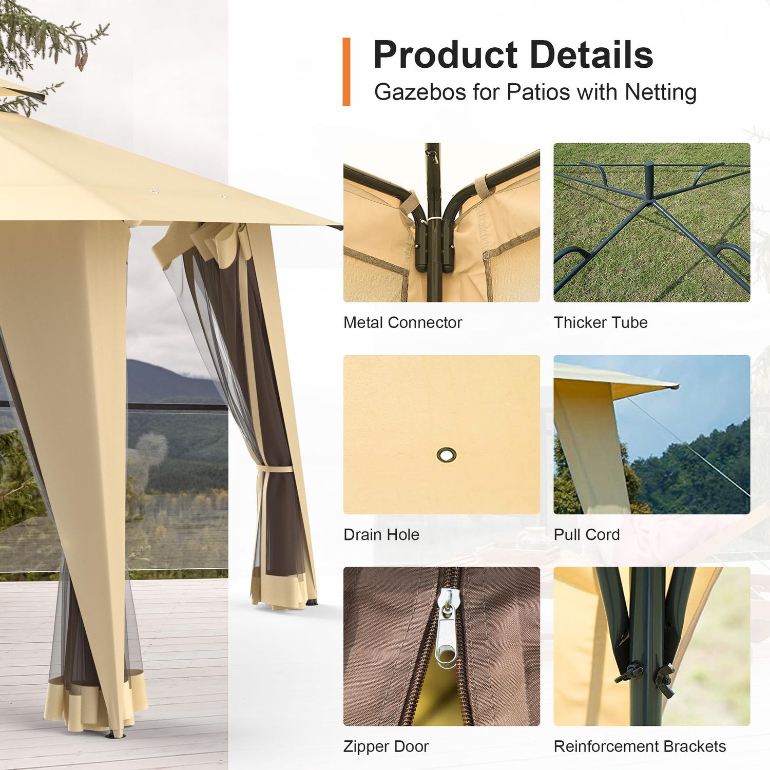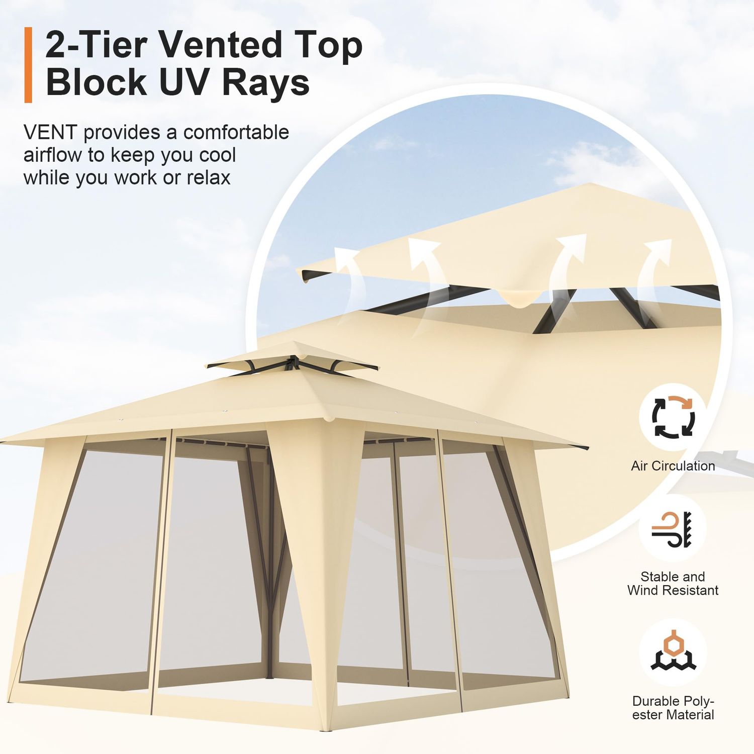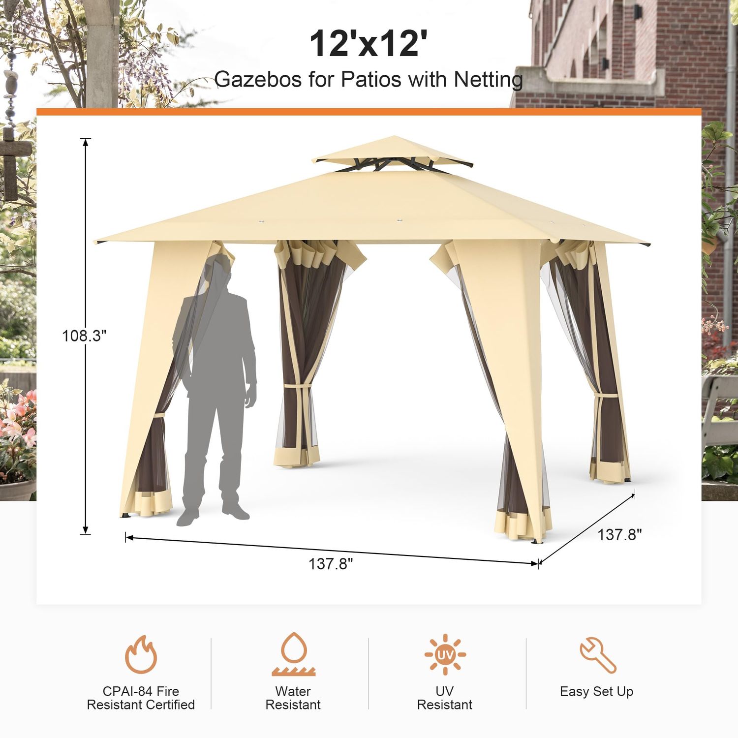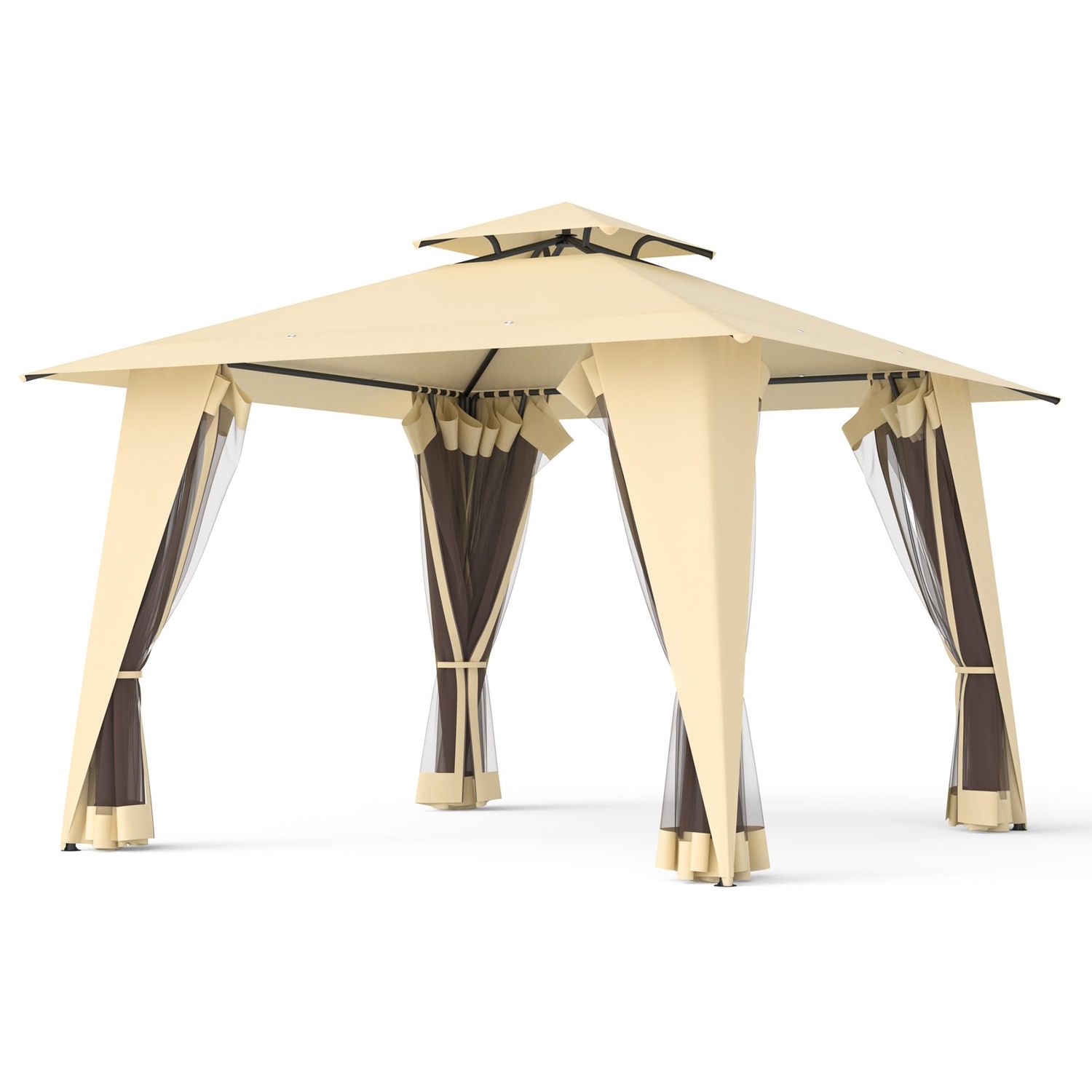 GOJOOASIS Metal Gazebo Outdoor 2-Tier Canopy Party Tent with Mesh Sidewalls 12x12 Beige