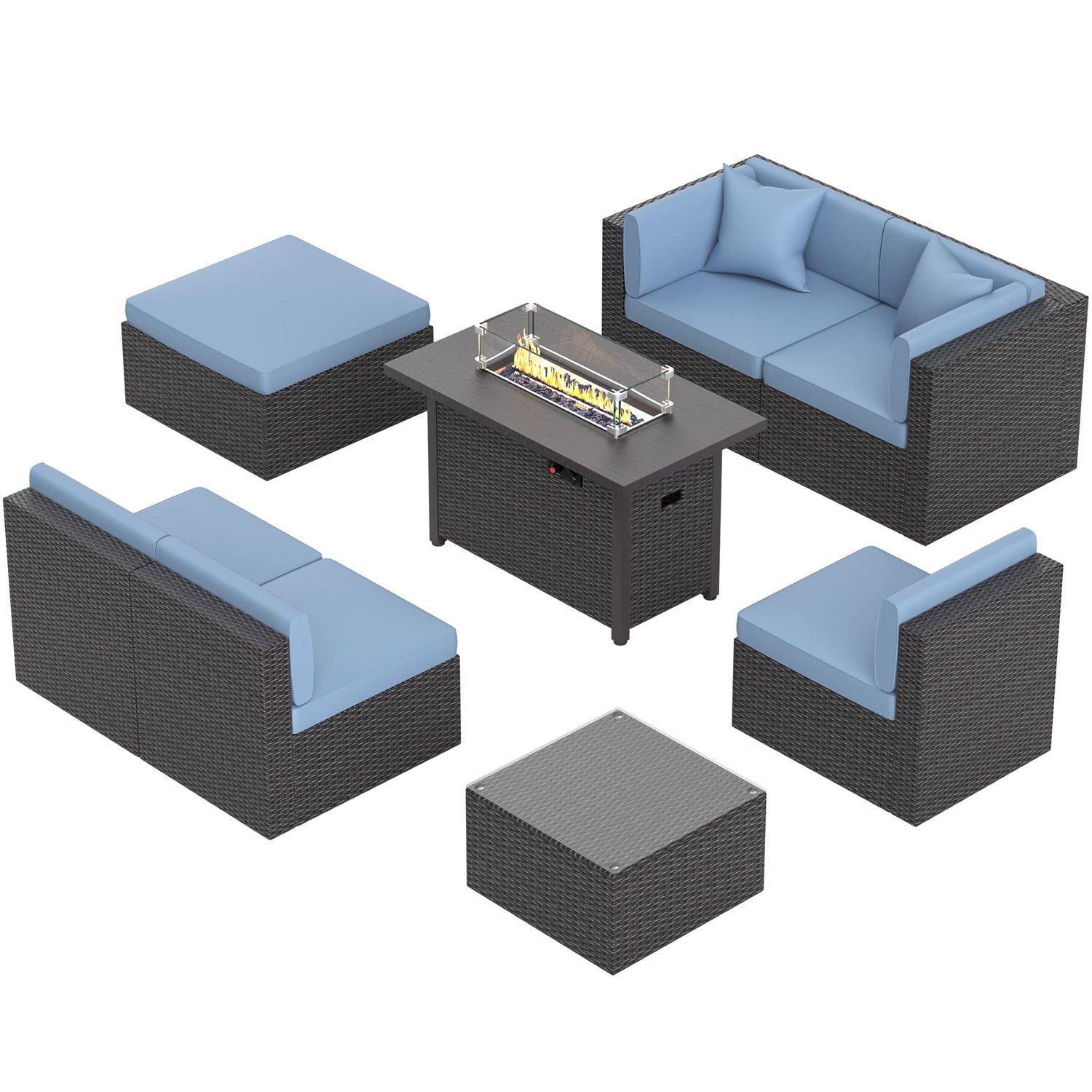 GOJOOASIS Outdoor Fire Pit Table 42 Inch Patio Propane Fire Pit with Tempered Glass Wind Guard