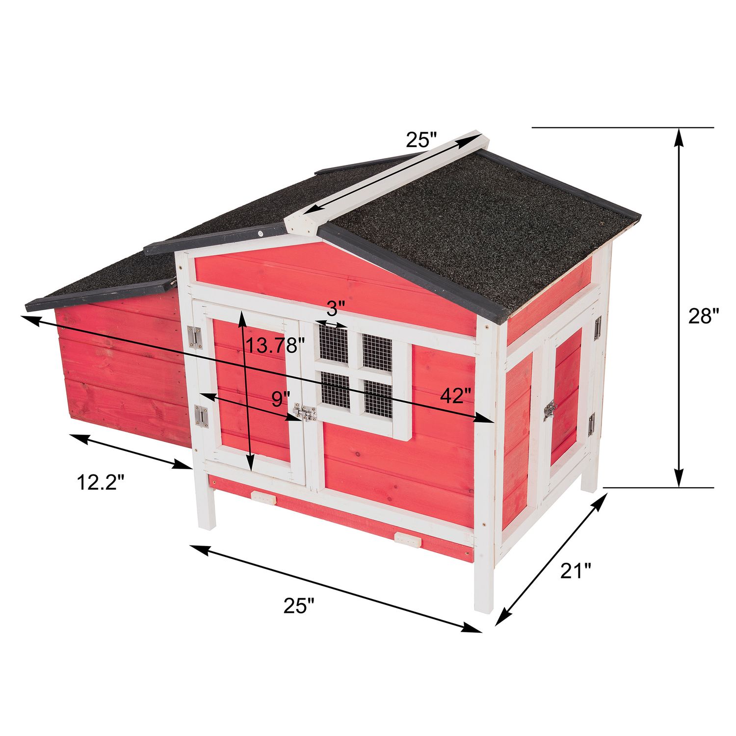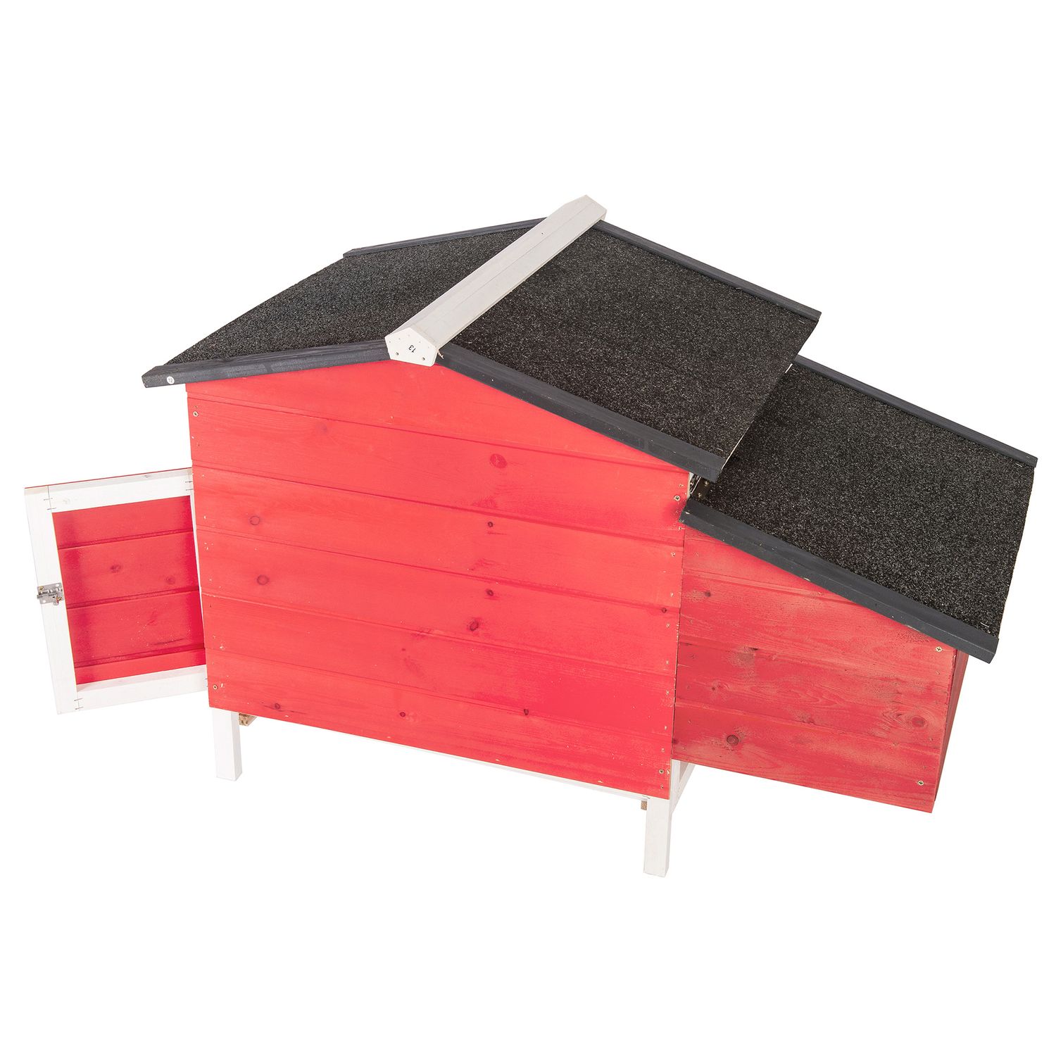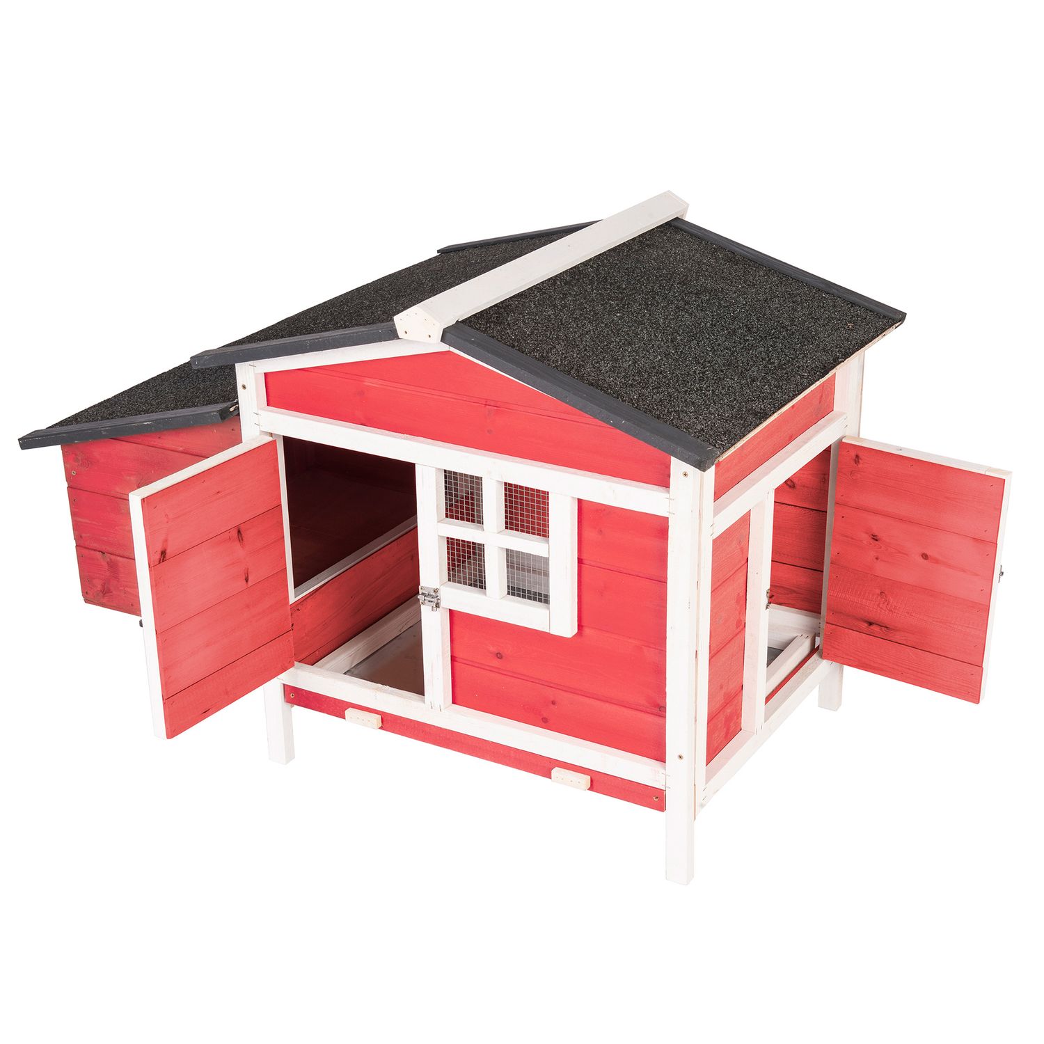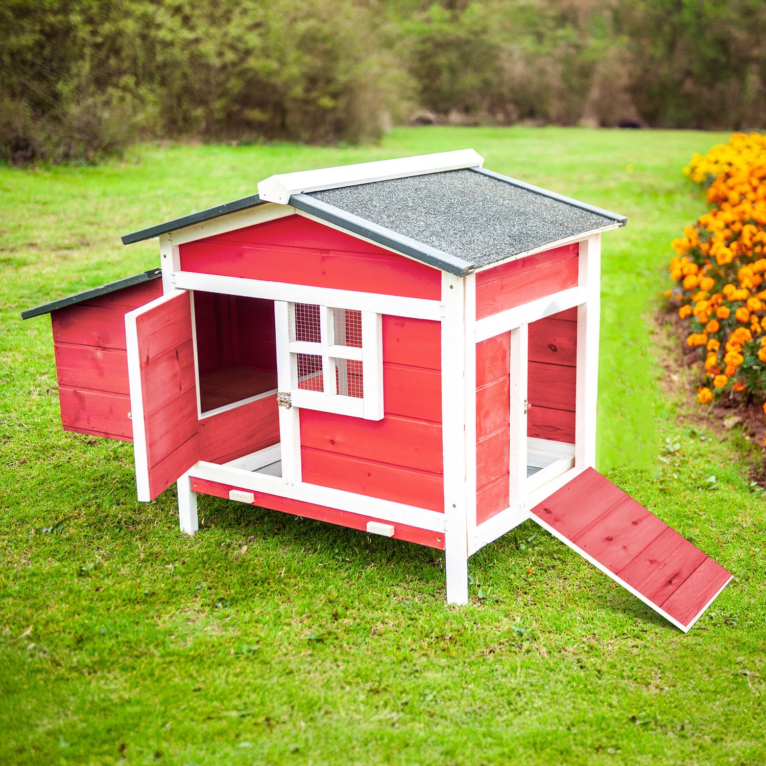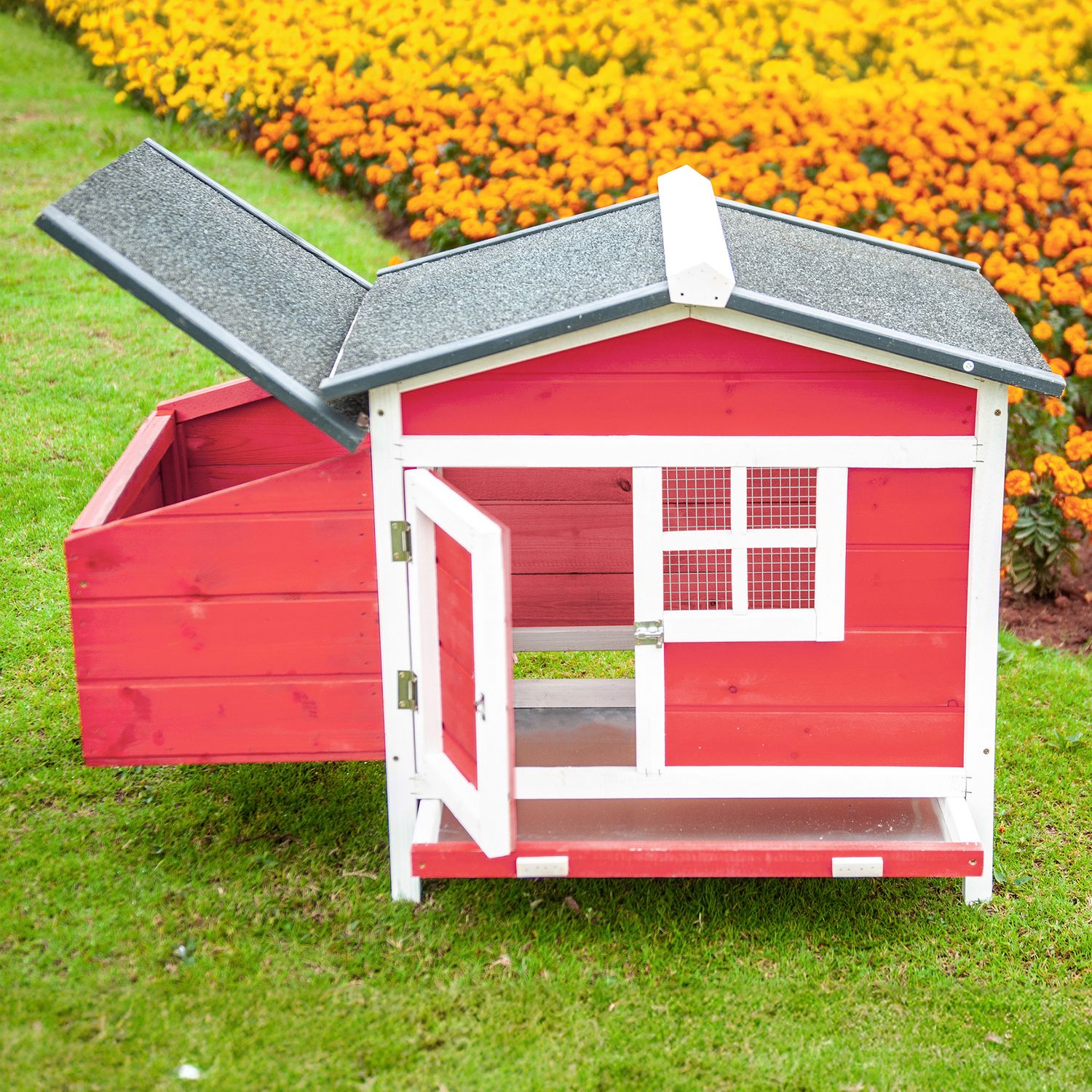 GOJOOASIS Rabbit Hutch, Outdoor Chicken Coop with Tray & Nesting Box Wooden Chicken House with Water-Resistant Roof & Ramp Red