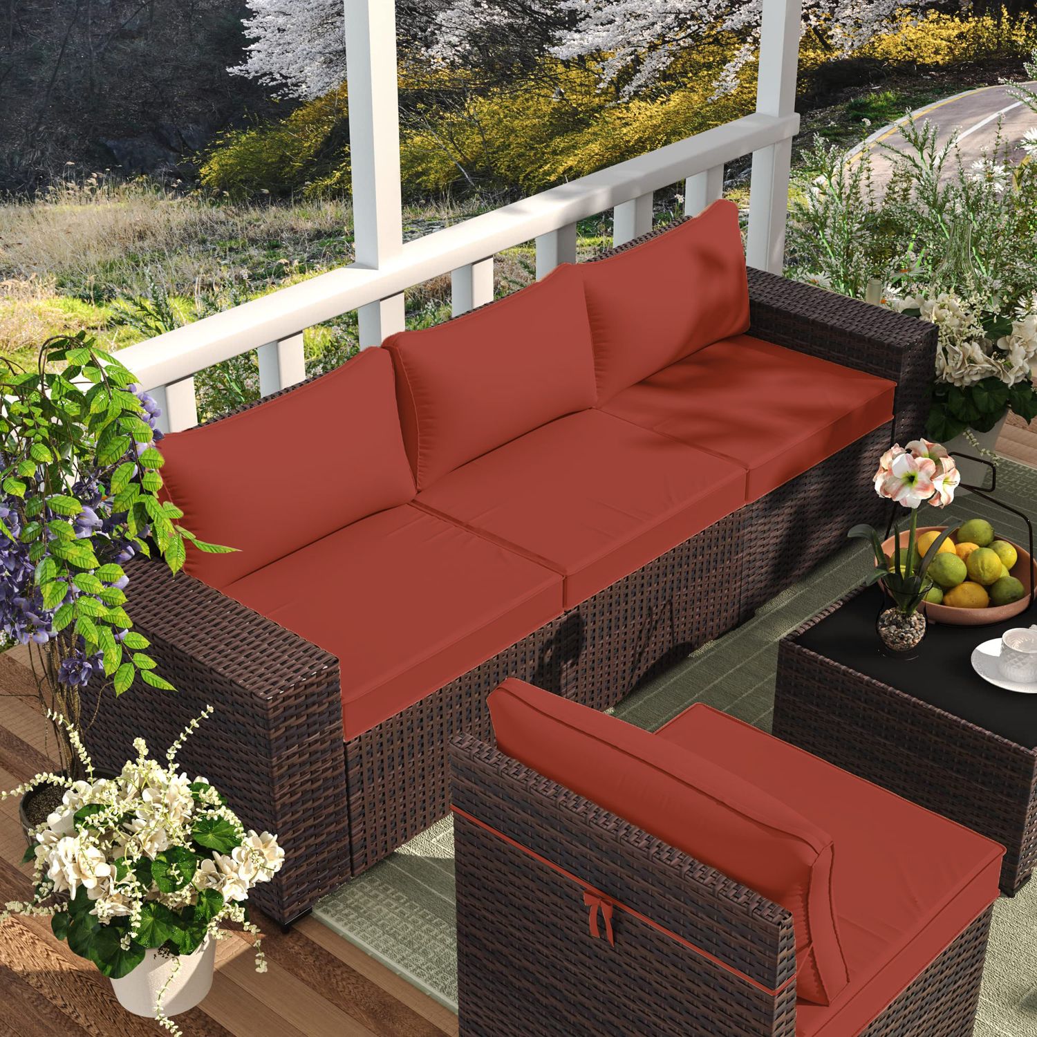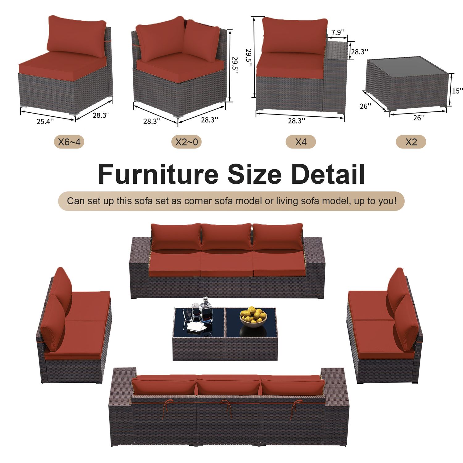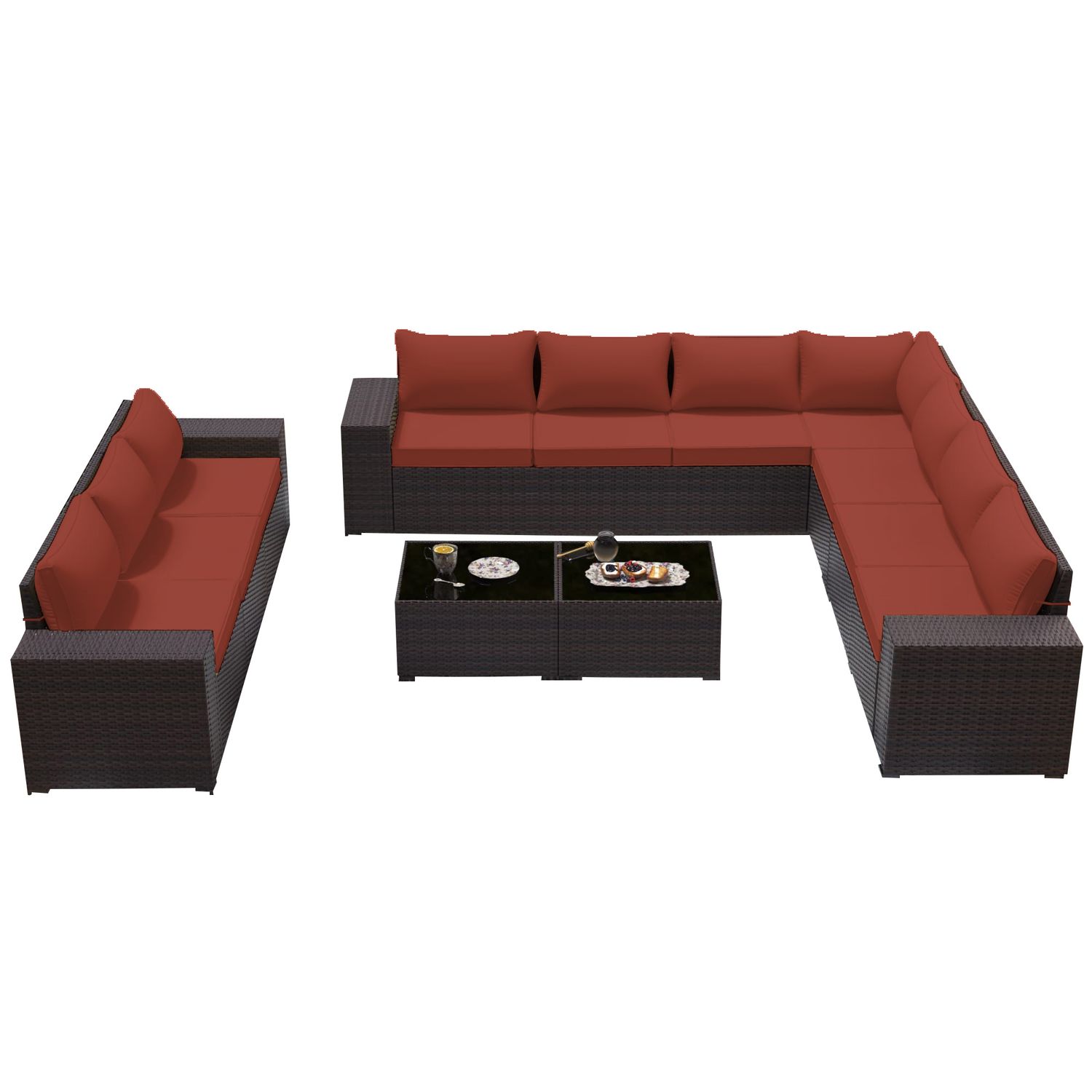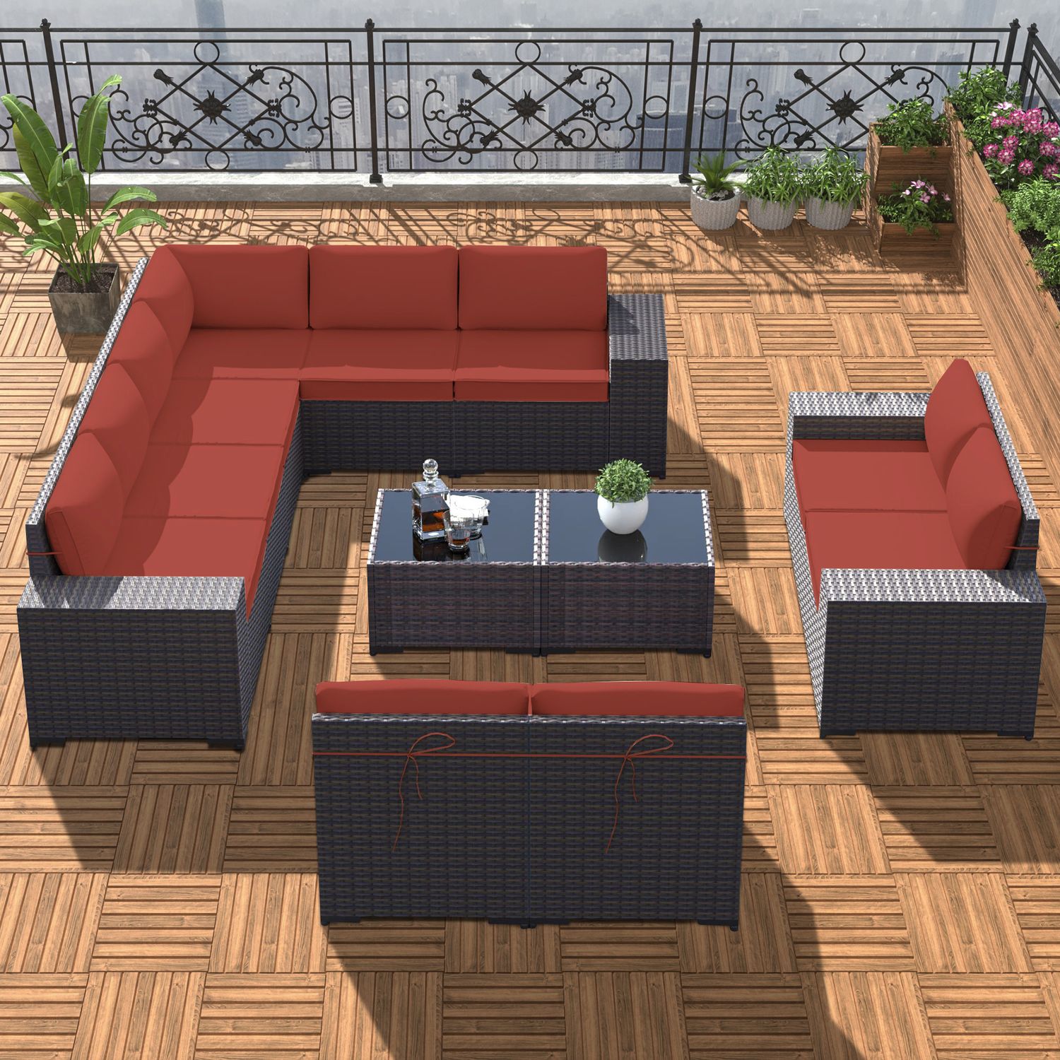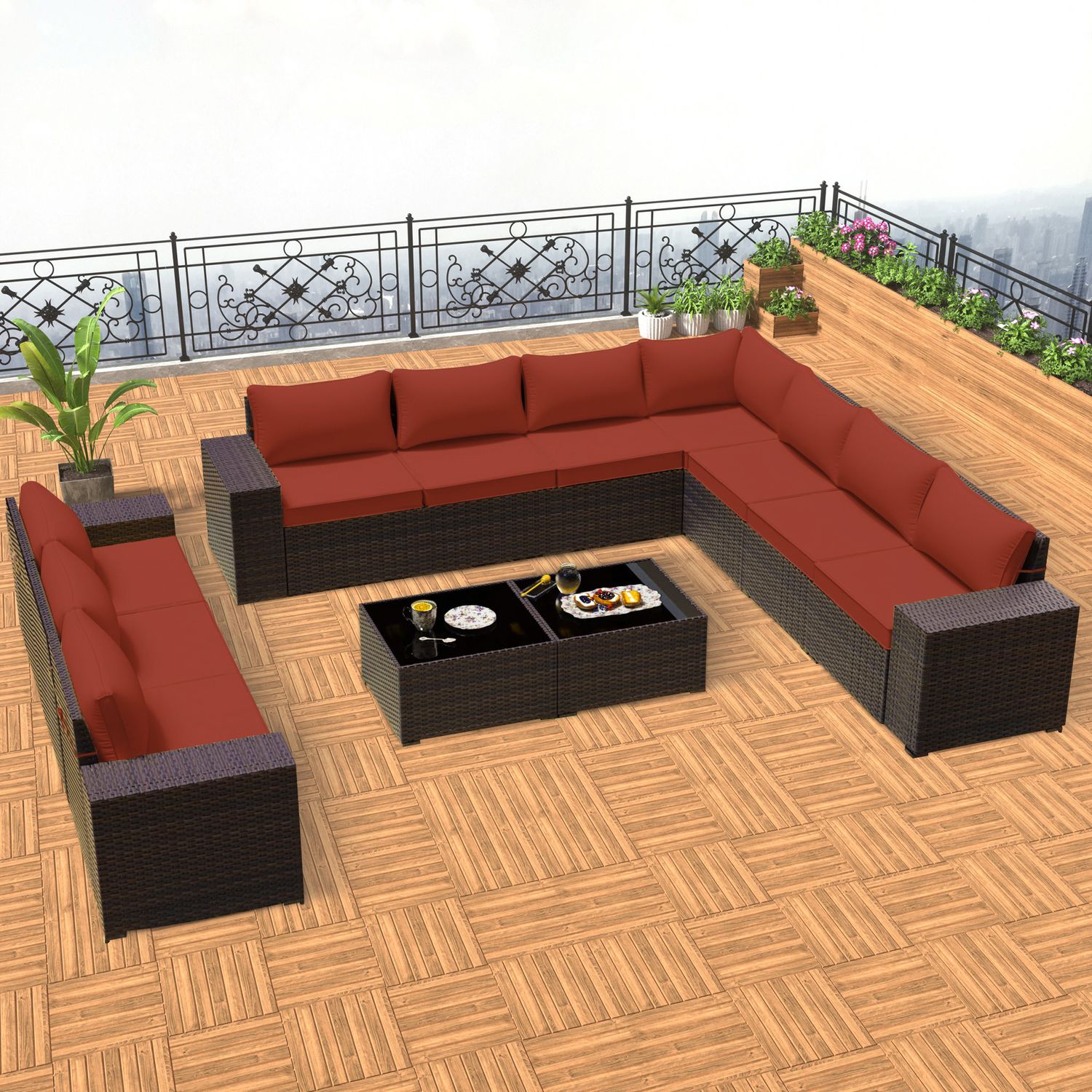 GOJOOASIS Wine Red 12PCS Set Wicker Outdoor Sectional Sofa