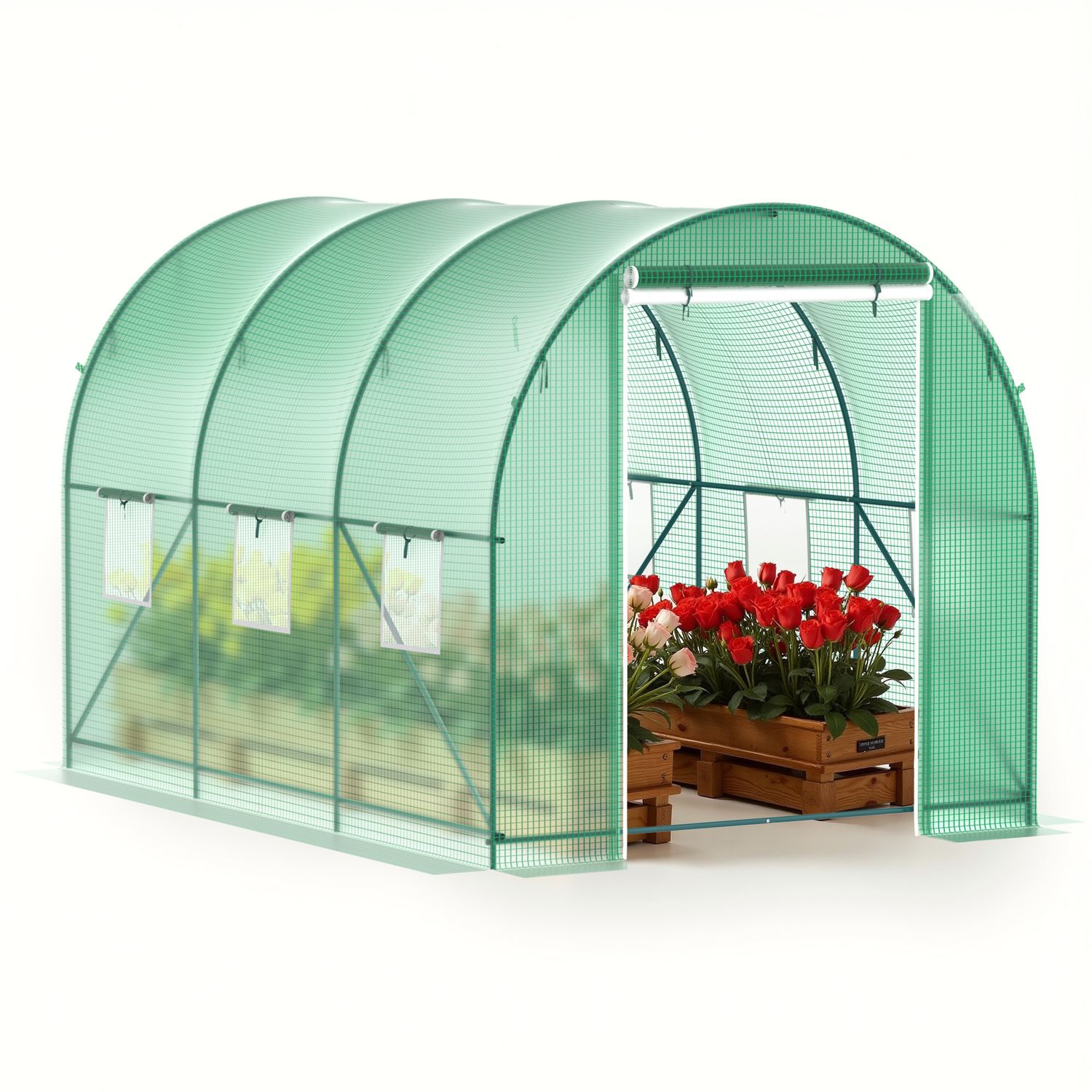 Greenhouses for Outdoors Winter Large Walk In Green Houses for Outside Heavy Duty with 6 Ventilated Mesh Windows & Roll-up Door & Reinforced Frame & Spray System 10×7×7 FT
