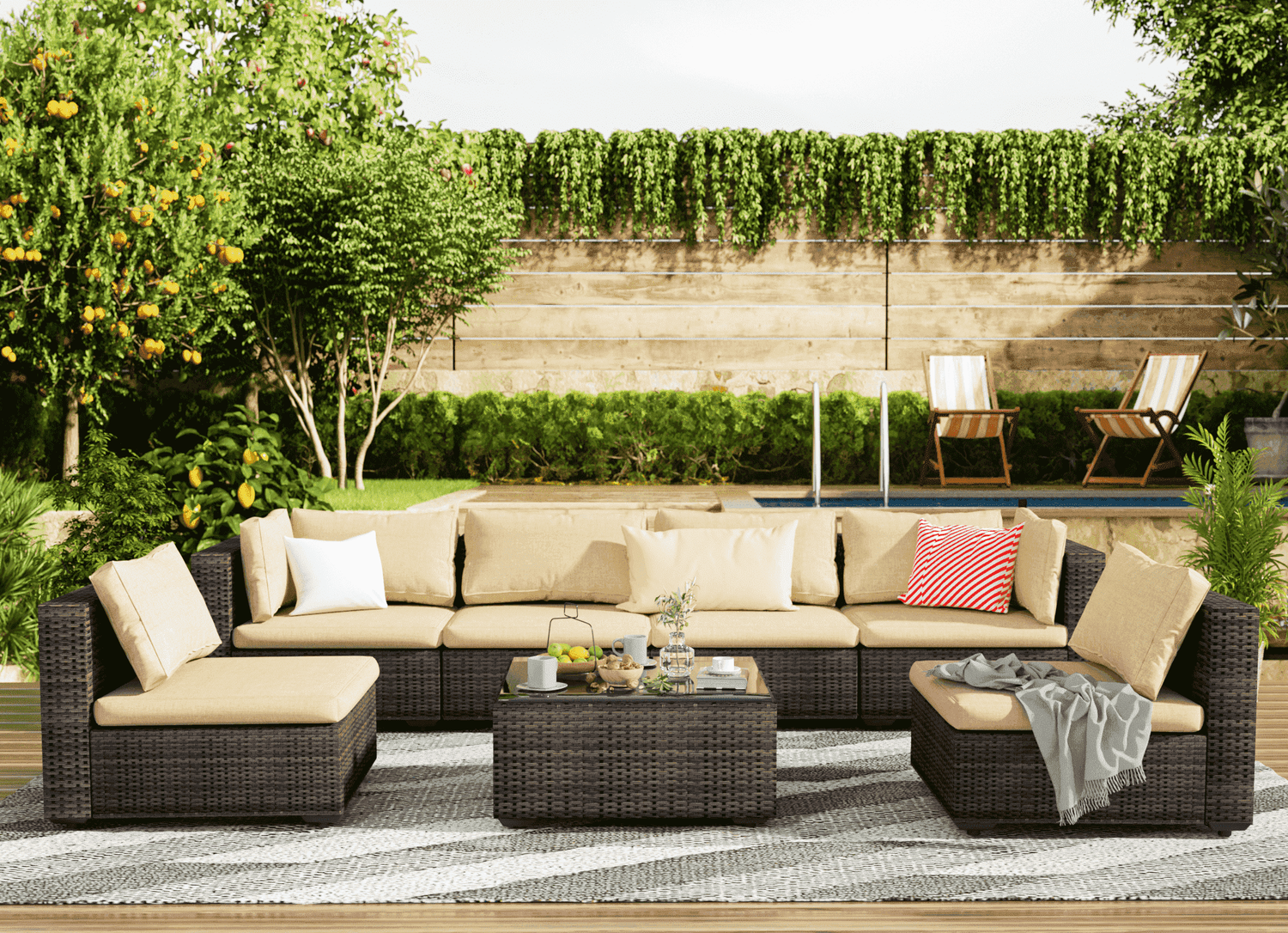 7 pcs Patio Sectional Sofas||Beige