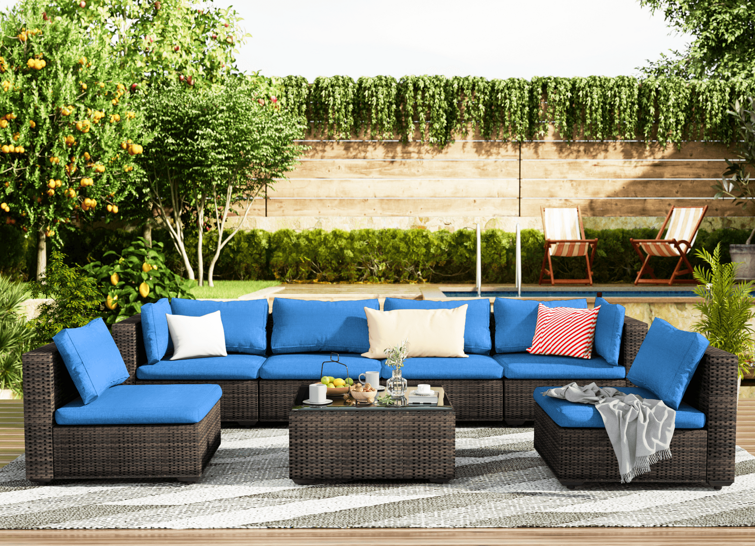 7 pcs Patio Sectional Sofas||Black