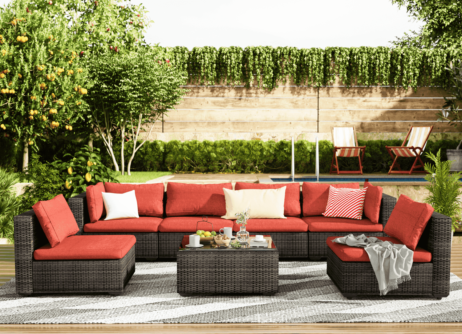 7 pieces Sofa/Fire Pit Table||Red