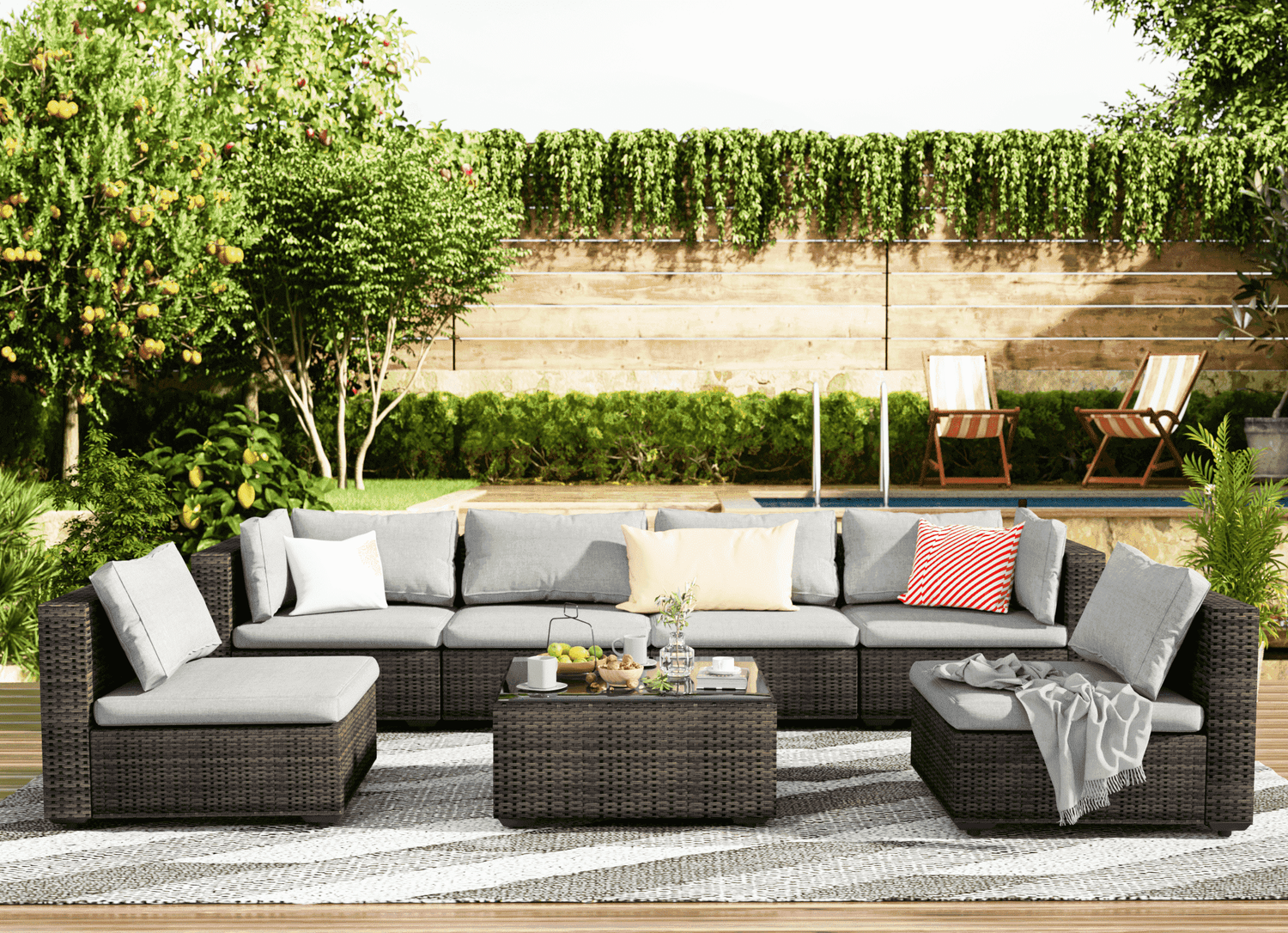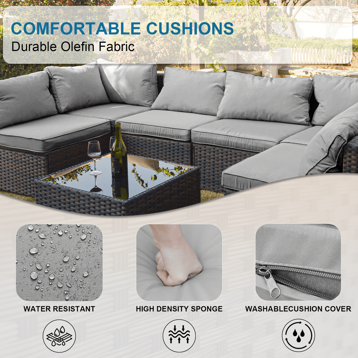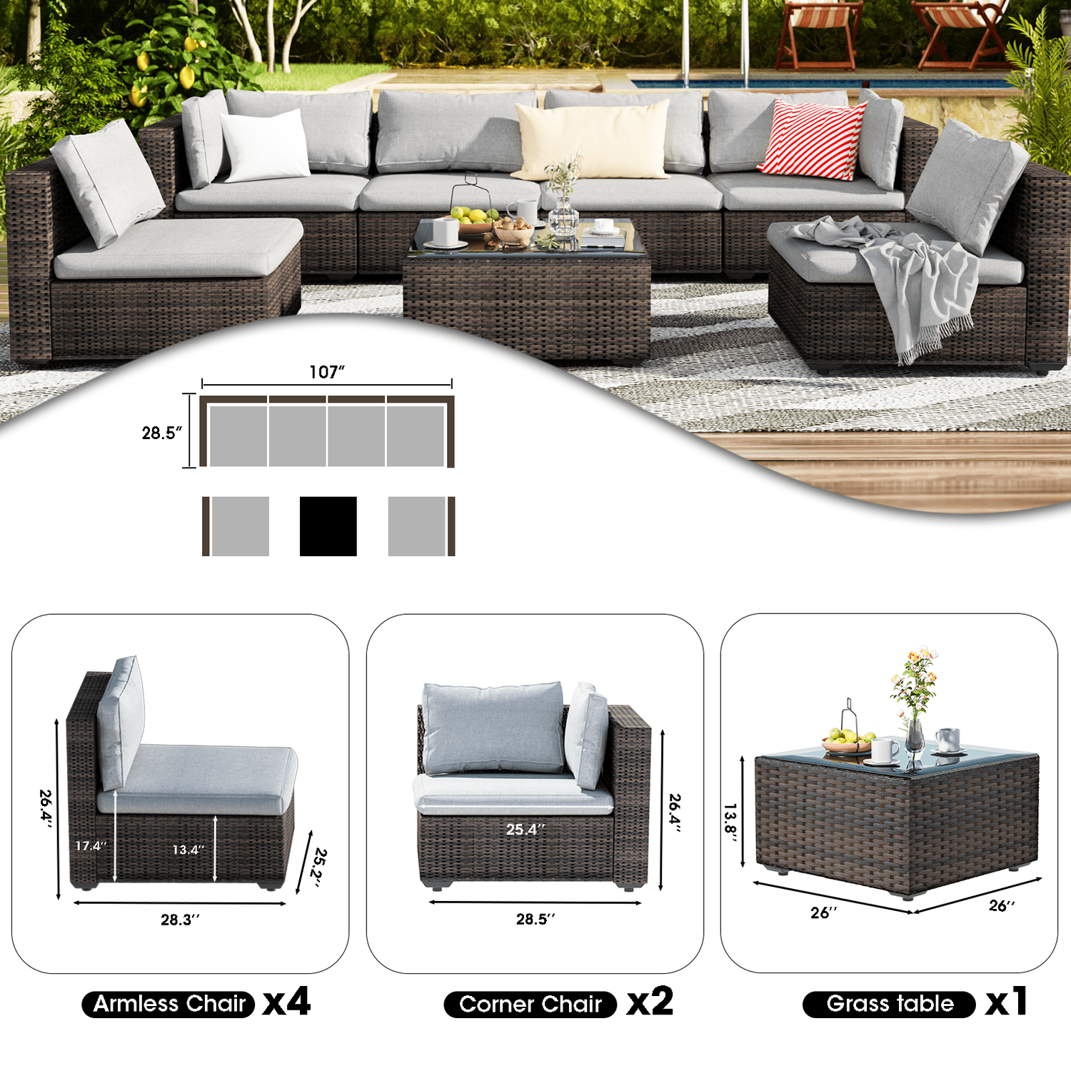 7 pcs Patio Sectional Sofas||Gray