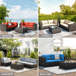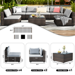 Greone 7 Patio Outdoor Furniture Wicker Sectional Sofa Couch Lawn Sectional Black Glass Table, Gray