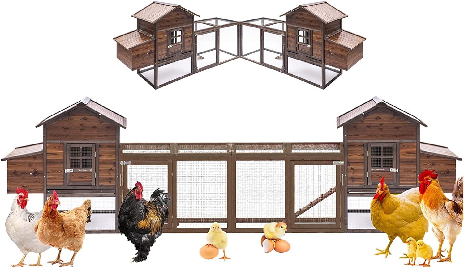 Greone Chicken Coop Large Wooden Outdoor Hutch Hen Cage with Ventilation Castle Door, Rabbit Hutch Home Backyard Removable Tray amp Ramp Play House N