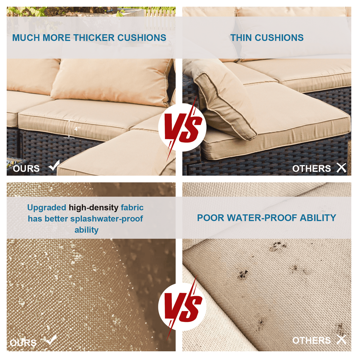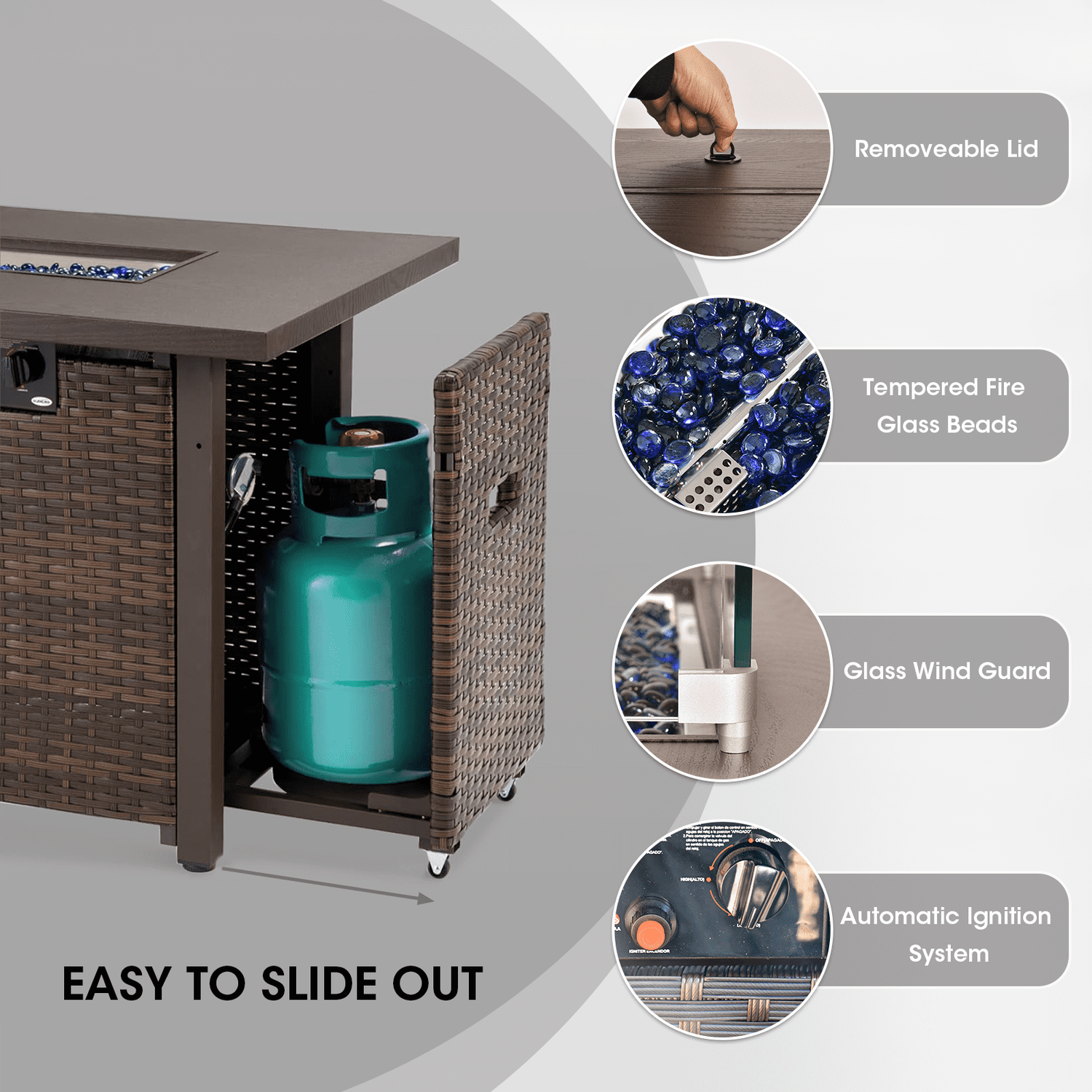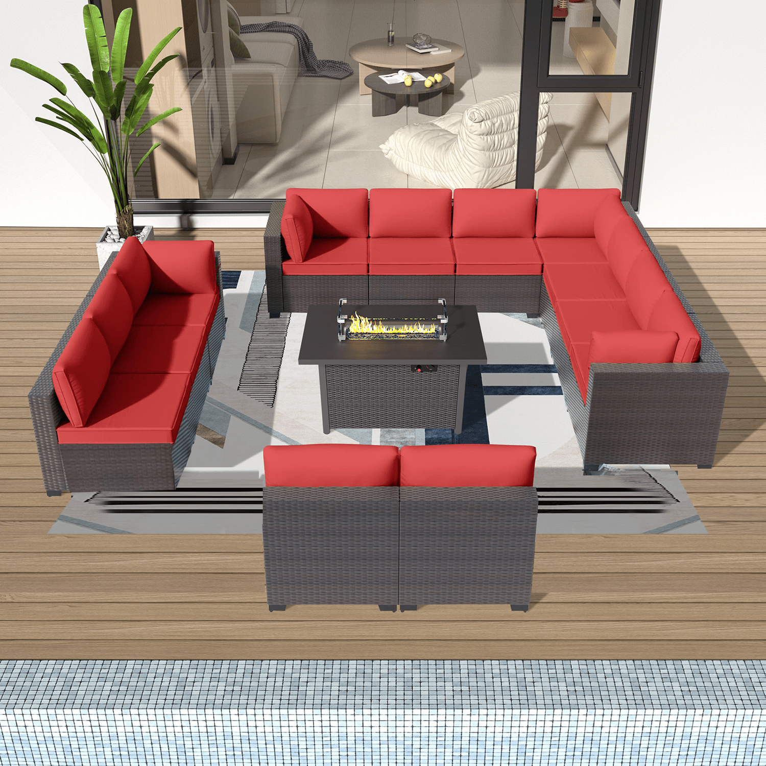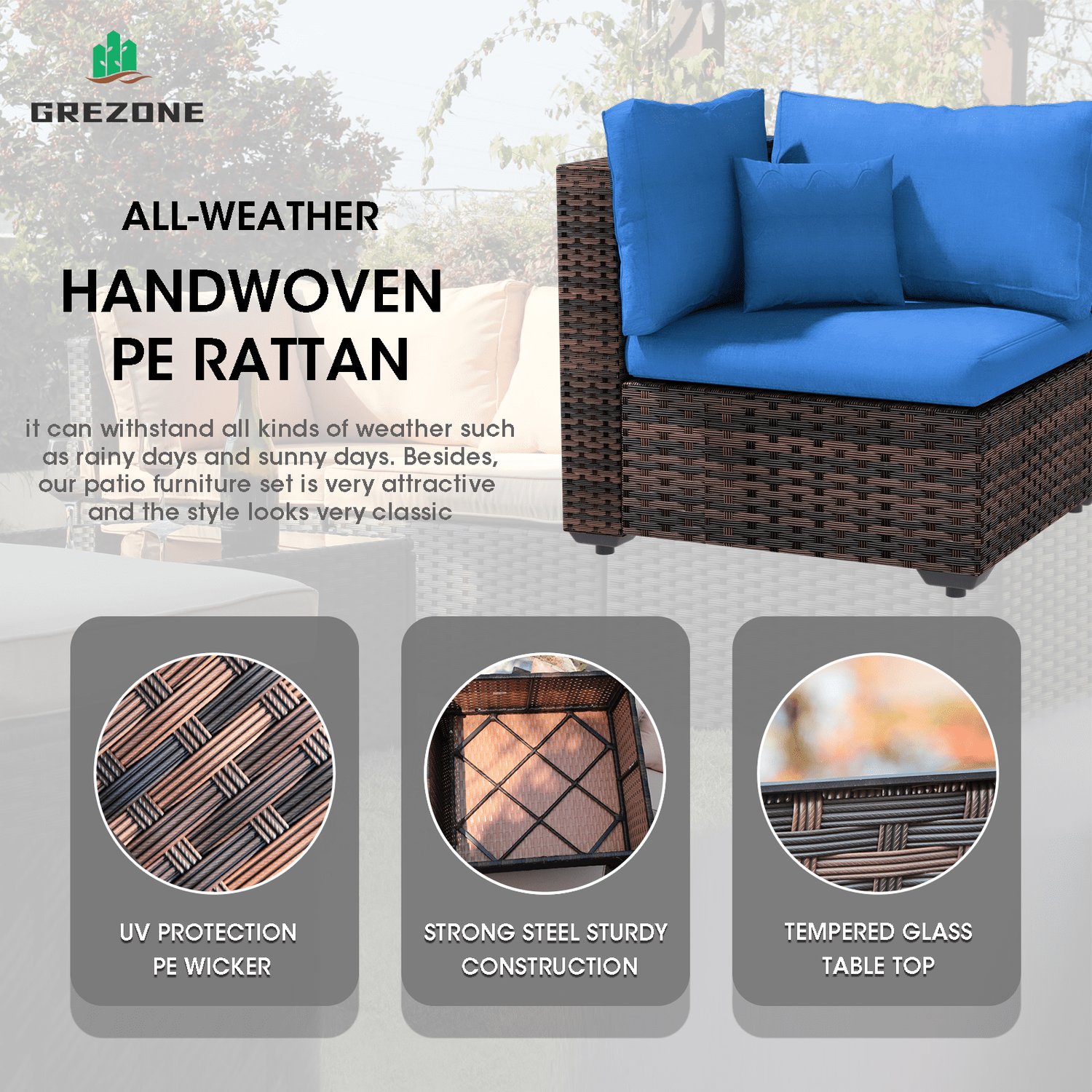 Greone Patio Furniture Sets 7 Pieces Outdoor Conversation Set with Propane Fire Pit Table Outdoor Sectional Sofa Sets with Gas Fire Pit Cushions (Blue