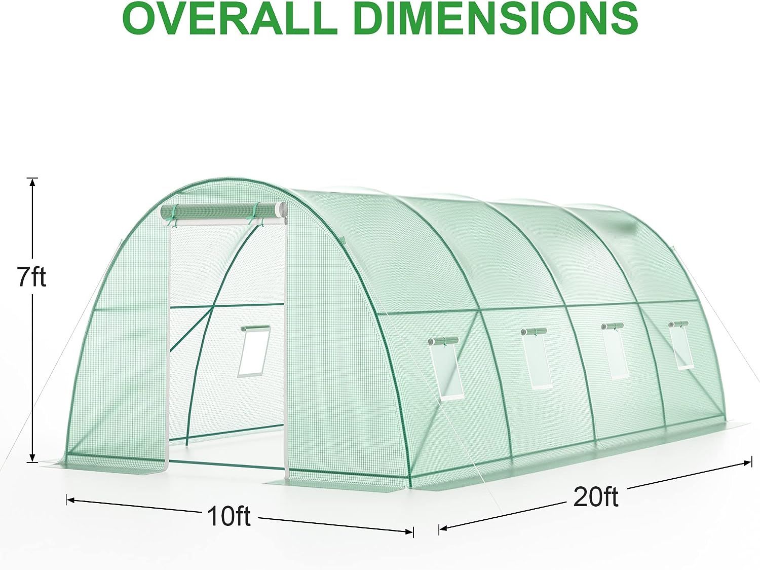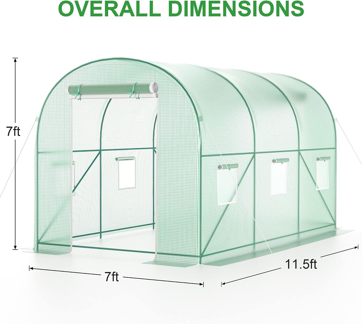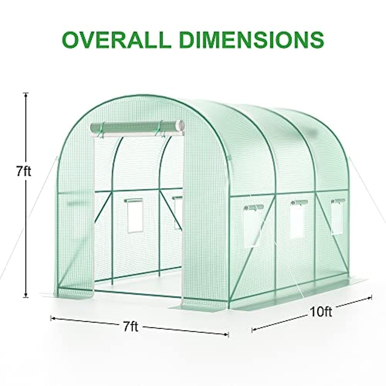 Greone Walk-in Greenhouse 10x7x7 FT Upgraded Green House with Dual Zippered Screen Doors amp 6 Screen Windows Heavy Duty Plastic Plant Warm House with