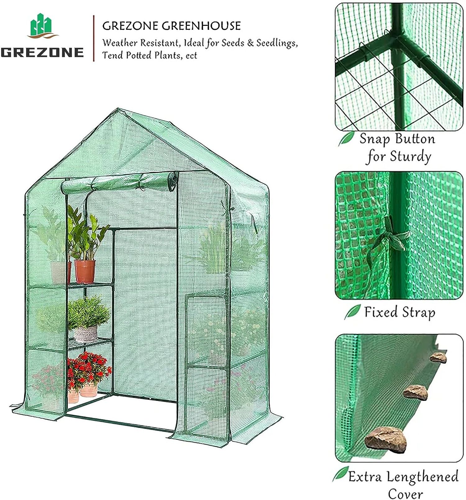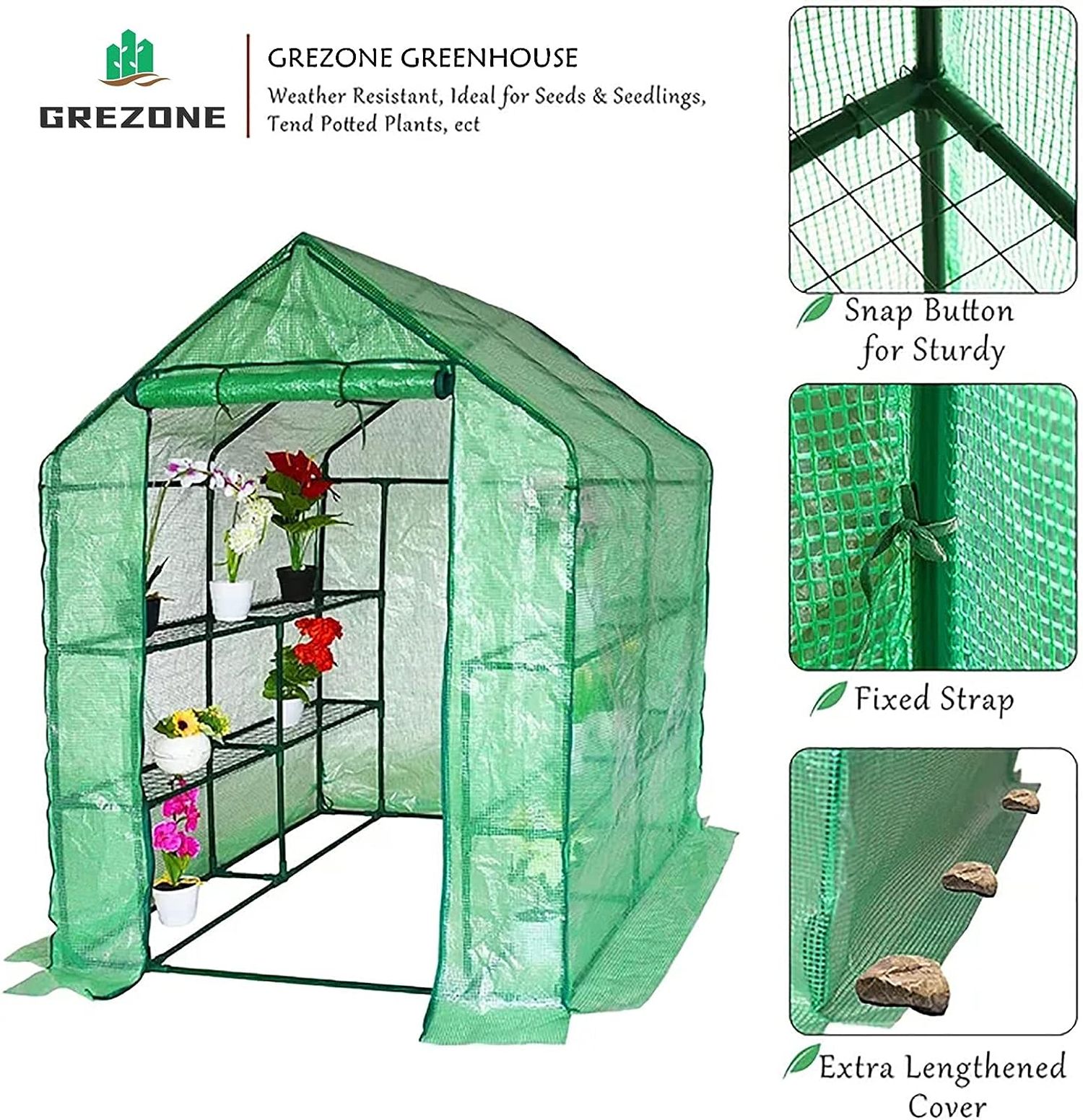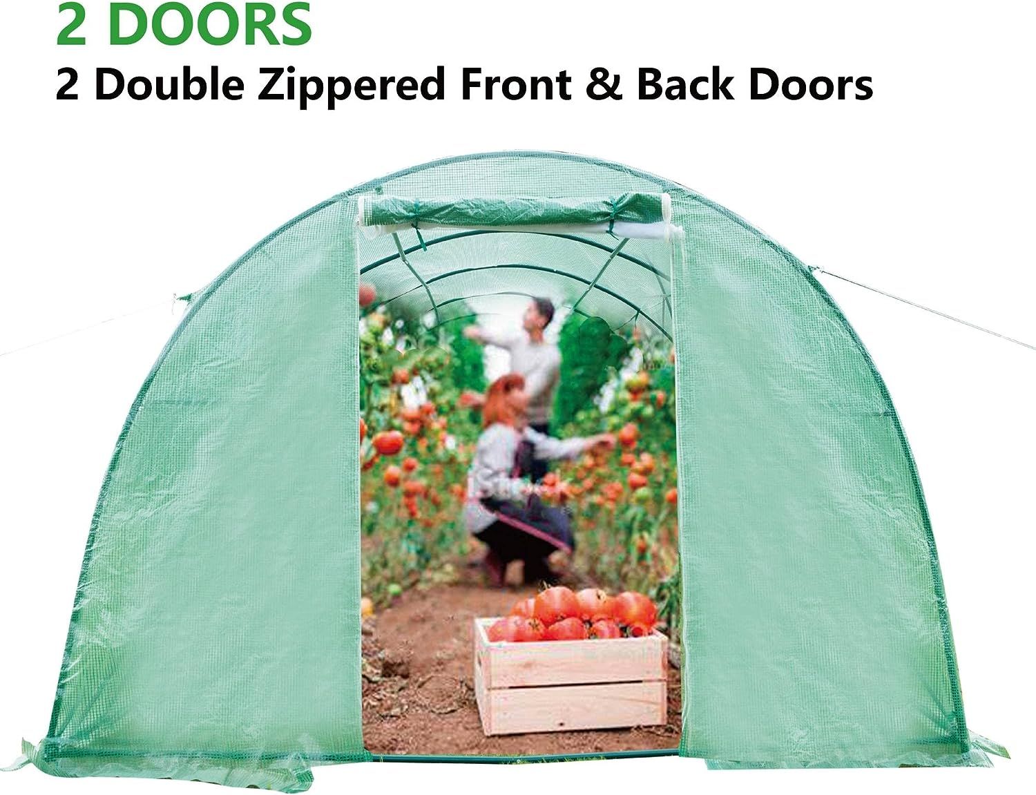 Greone Walk-in Greenhouse 10x7x7 FT Upgraded Green House with Dual Zippered Screen Doors amp 6 Screen Windows Heavy Duty Plastic Plant Warm House with