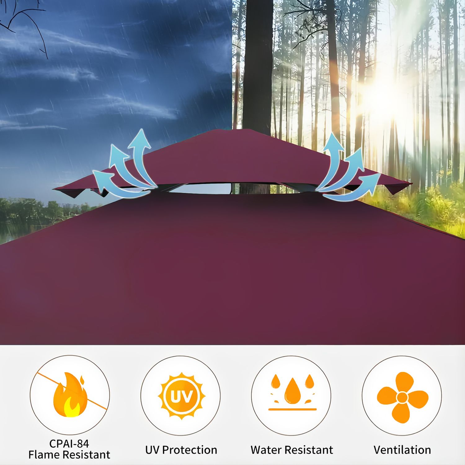 Grezjxc Grill Gazebo 8 x 5 Double Tiered Outdoor BBQ Grill Patio Canopy, Backyard Barbeque Tent with Extra Shelves