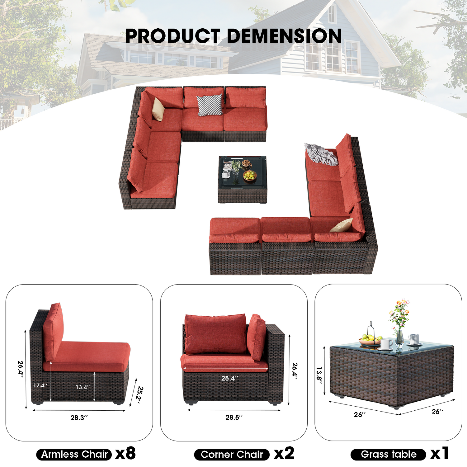 Grezone 11 Pieces Outdoor Sectional Patio Furniture Set, PE Rattan Outdoor Furniture Patio Conversation Set
