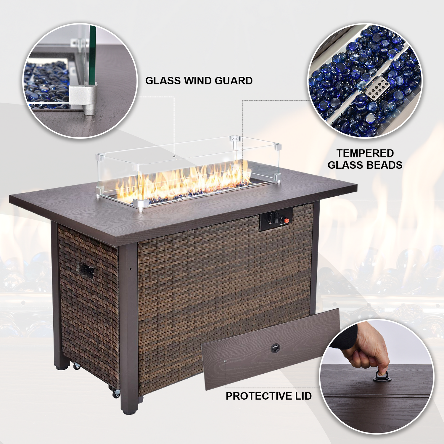 Grezone 42'' Propane Gas Fire Pit Table 50,000 BTU Auto-Lgnition Gas Firepit