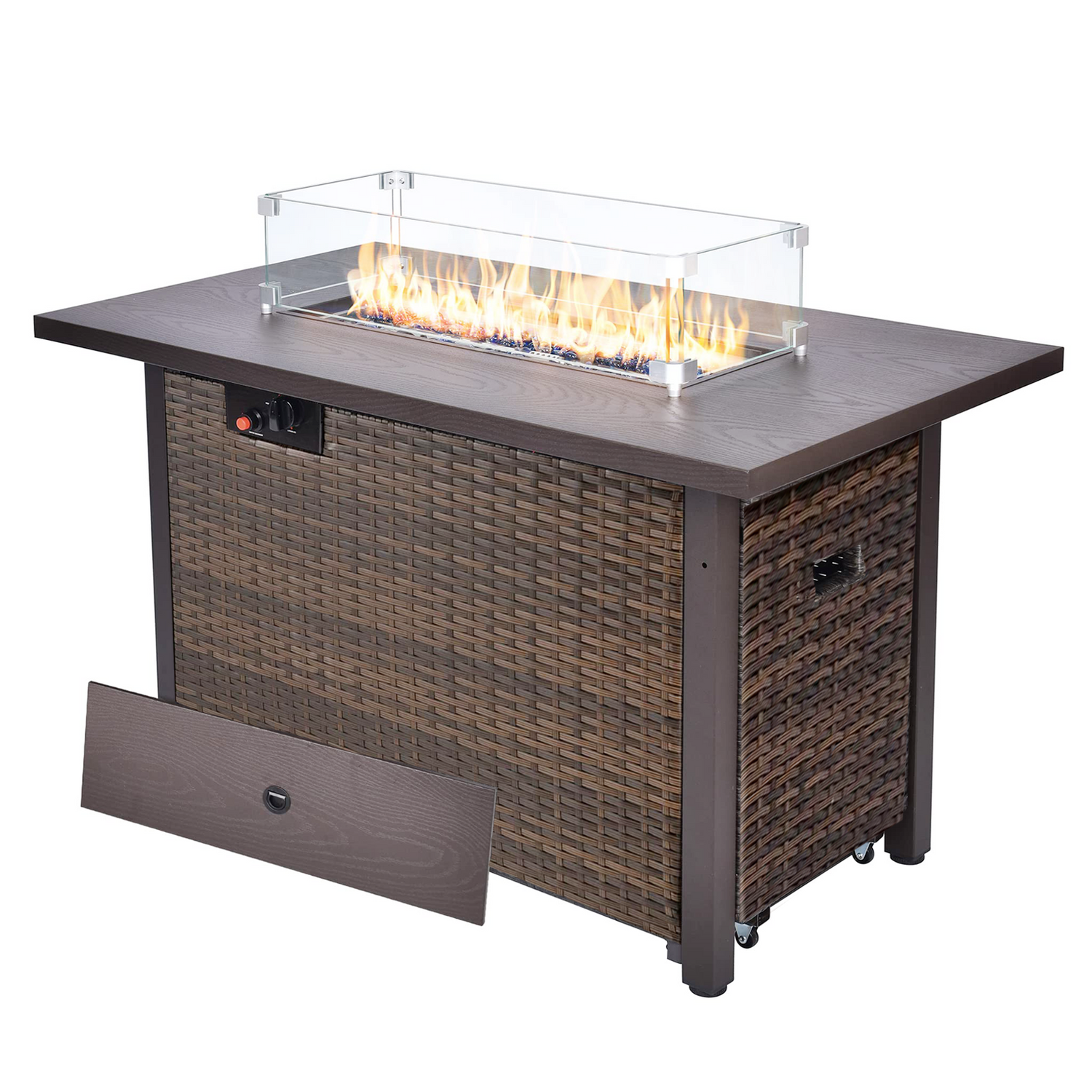 GOJOOASIS 45" Propane Fire Pit Table 50,000 BTU Steel Gas Fire Pit with Lid and Lava Rock Rectangular