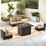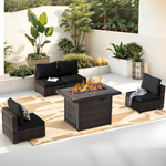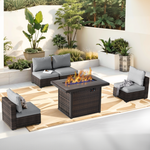 Grezone 5 PCS Outdoor Patio Furniture Set with Fire Pit Table, Wicker Patio Conversation Set, Red